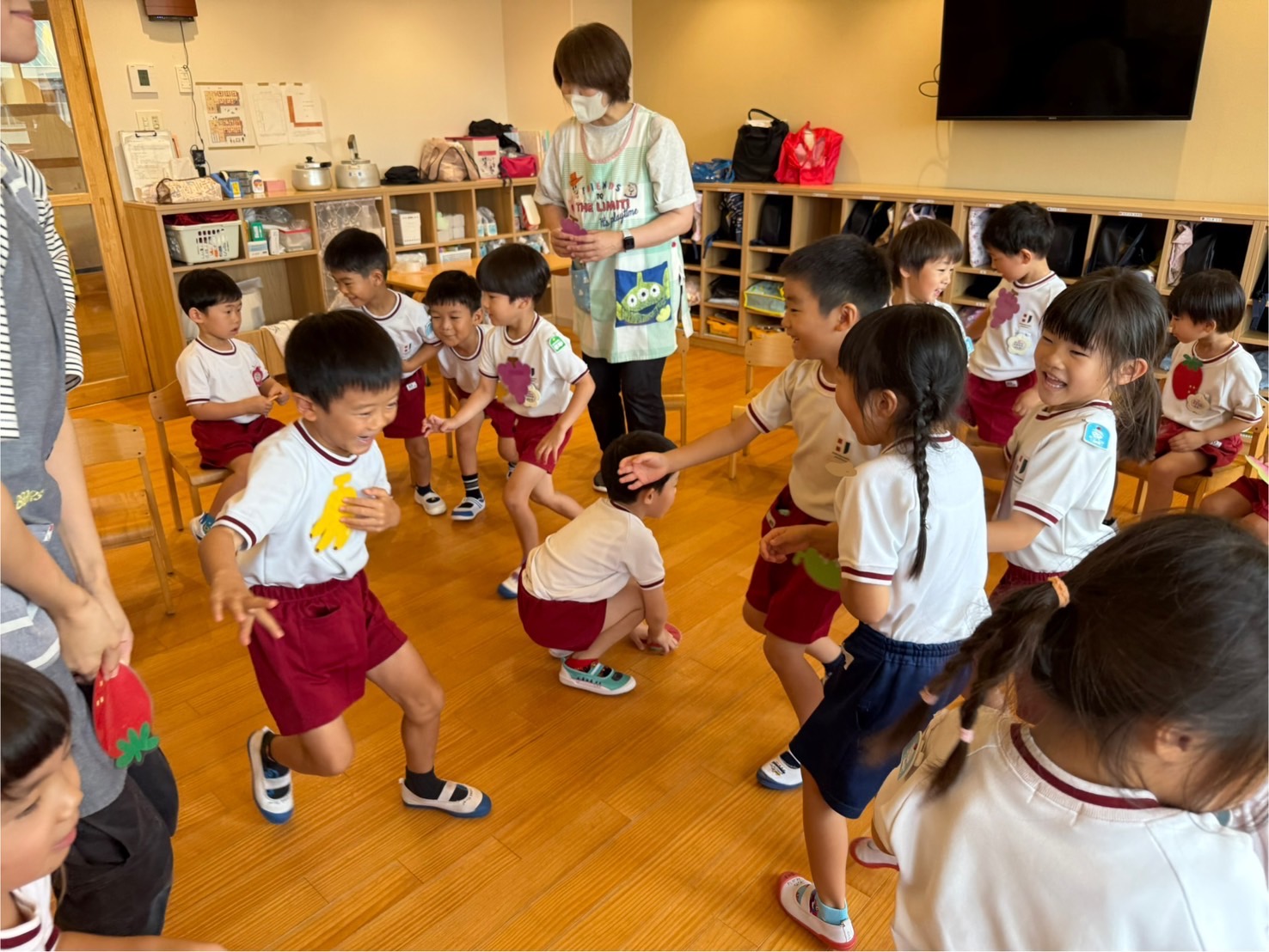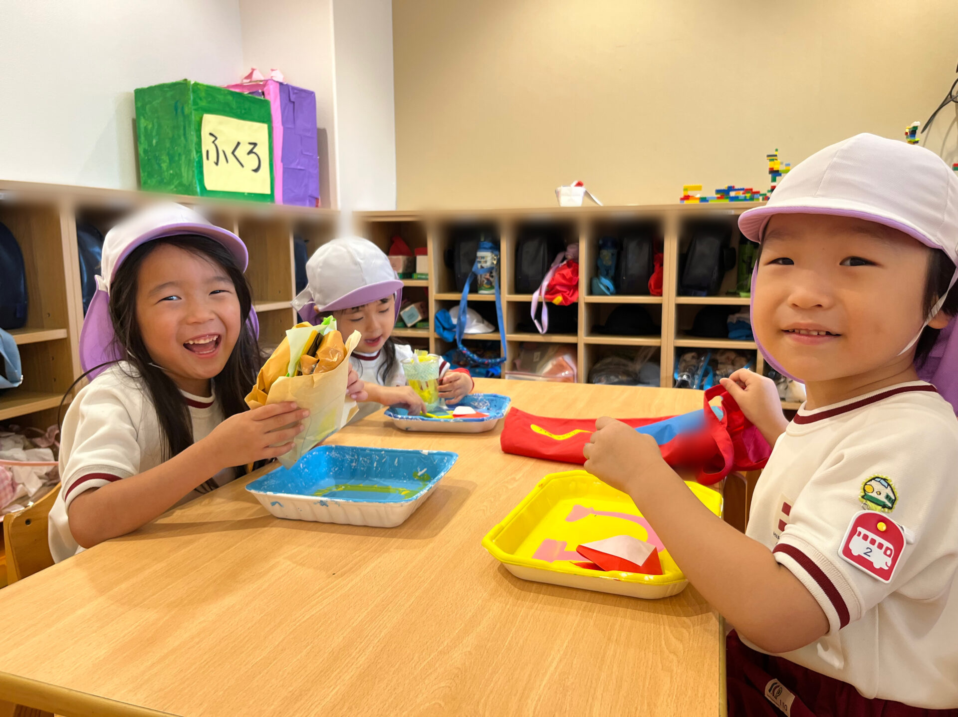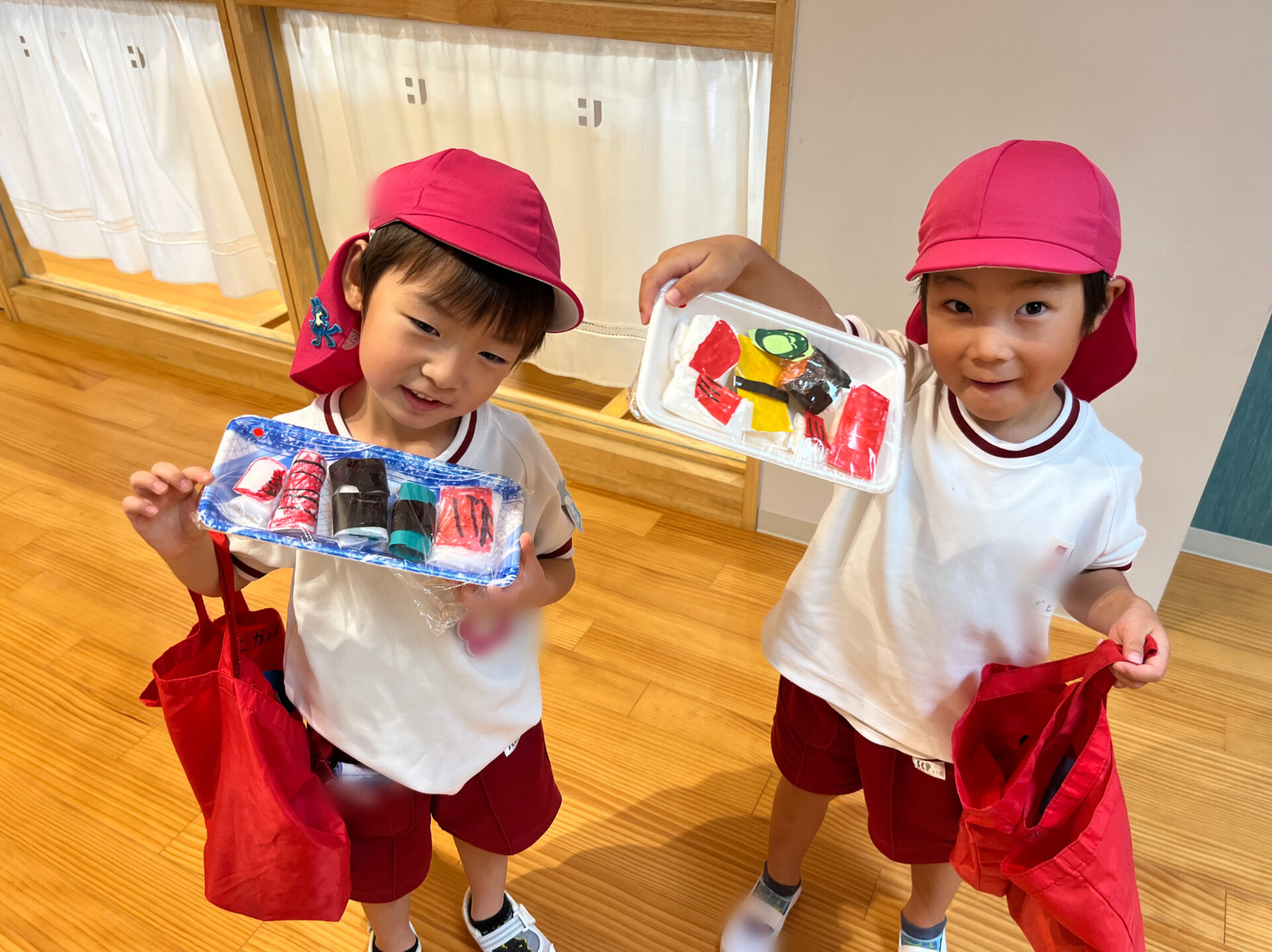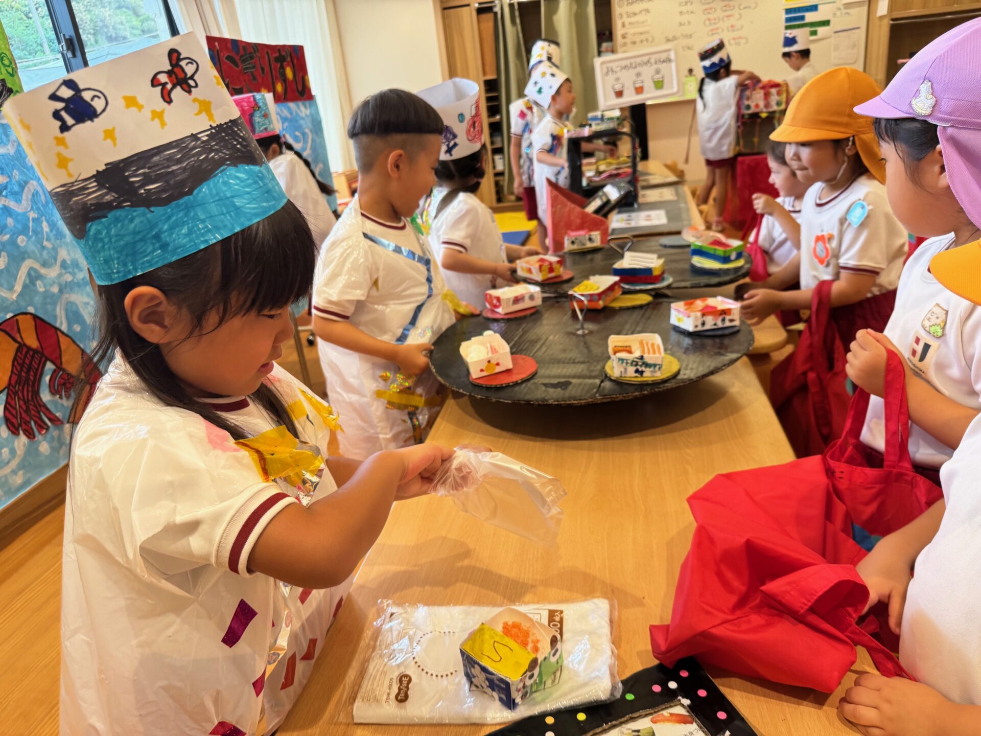 summer day campで各クラスが開店したお店屋さん。とっても大盛況でしたね。こんな楽しい時間、一回で終わりたくない!、、、といういきさつで年中組さんを招待して再びお店屋さん、開店です!