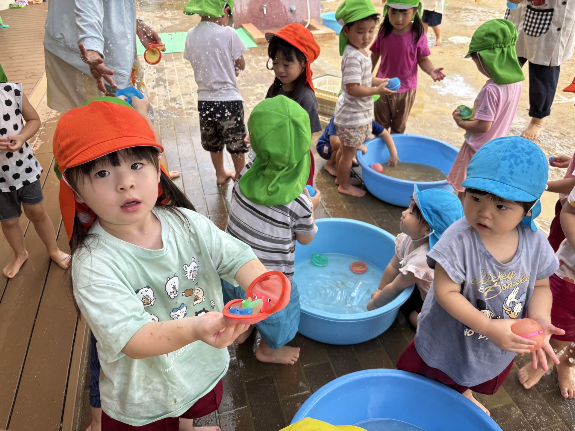 「つめた〜い!」「おさかな いた!」と、目をキラキラさせながら氷を触って、溶けていく様子にも興味津々。