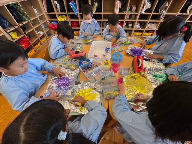 みんなで三つ編みアクセサリーを作ったり、廃材で王冠や宝石を作ったりとワイワイ楽しく製作しました。