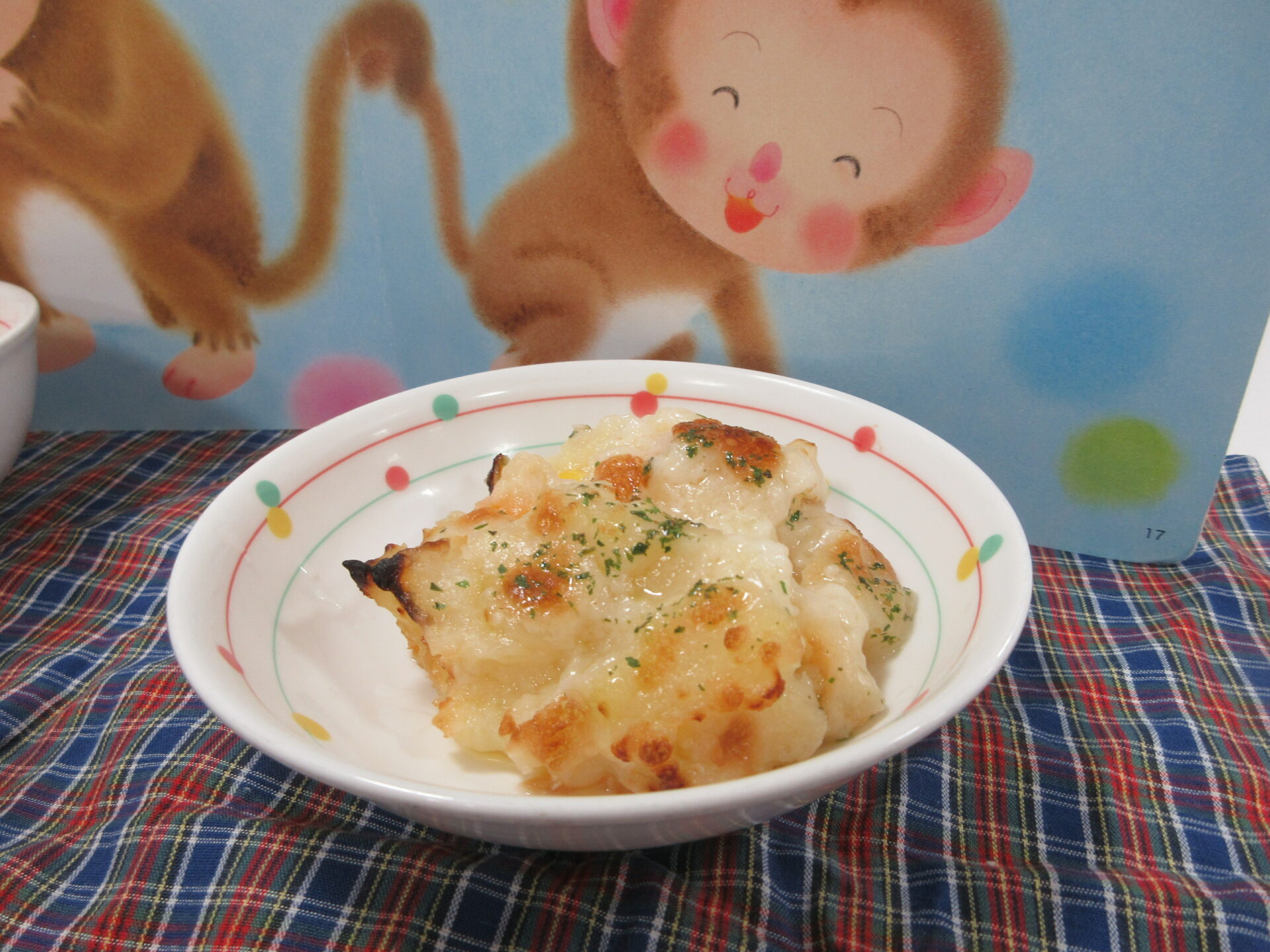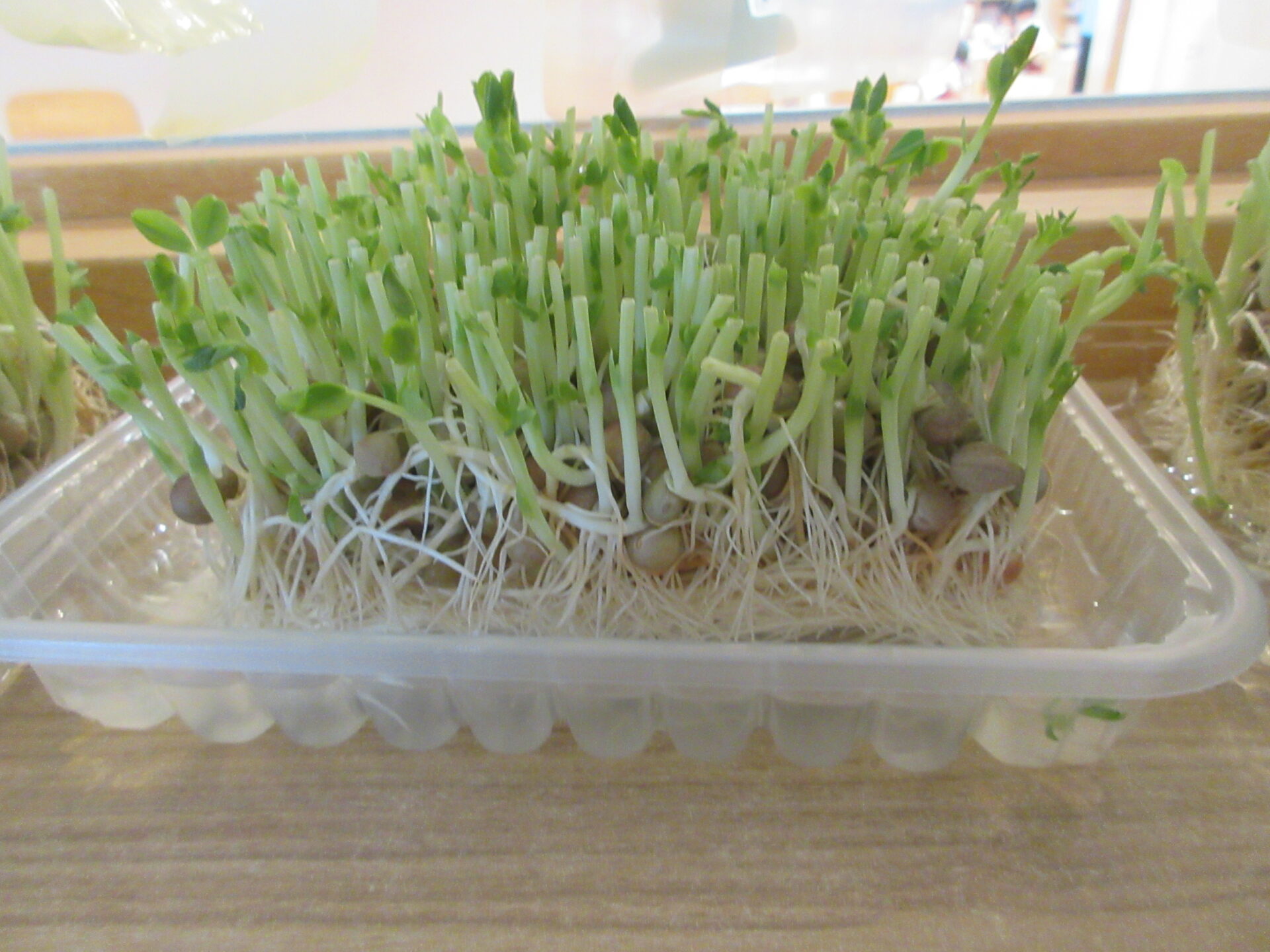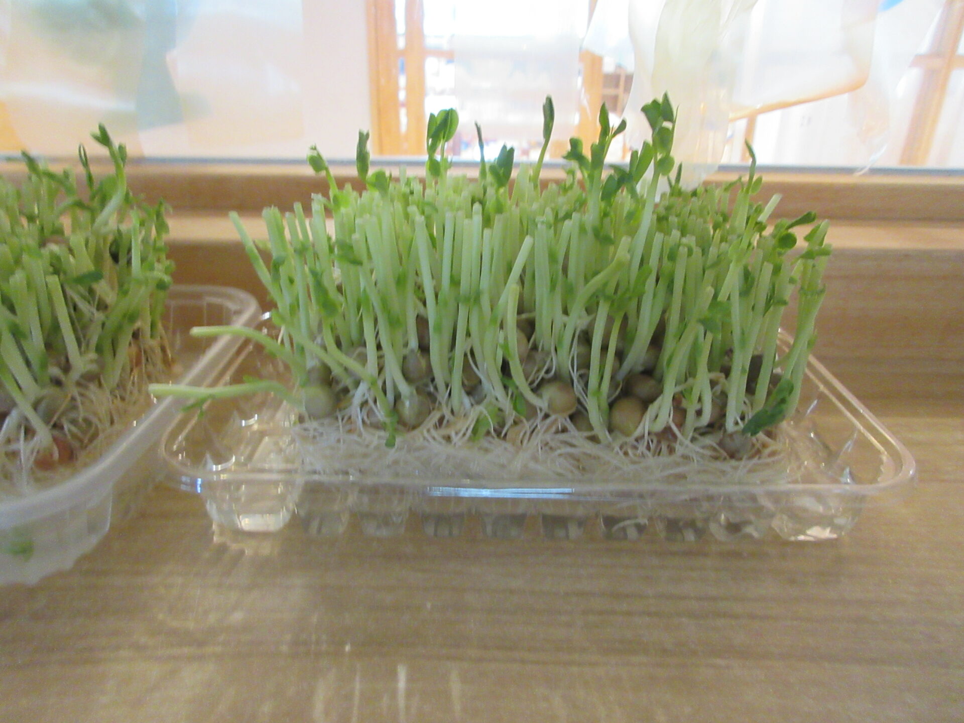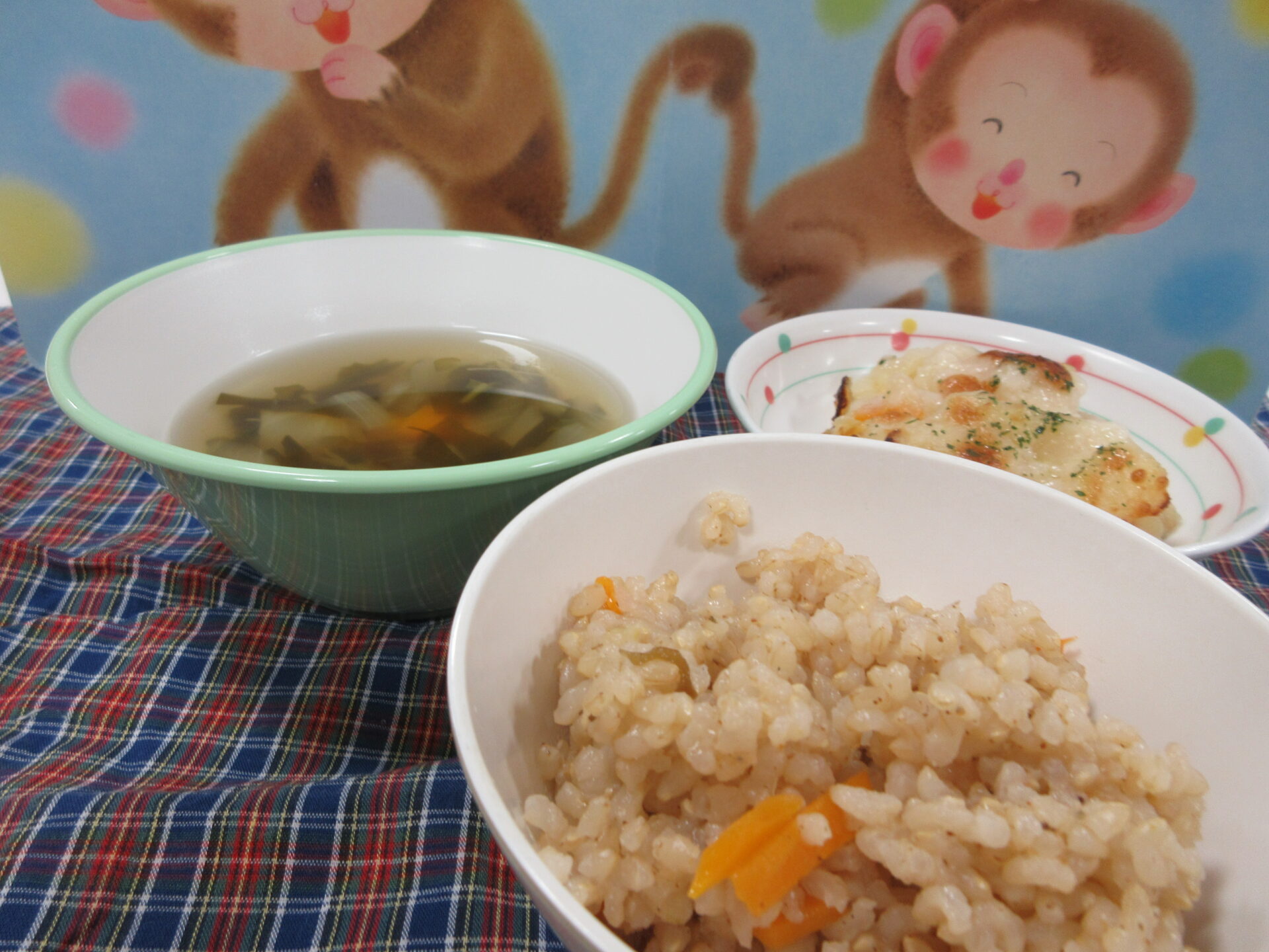 見た目👓炊きこみご飯のようなきれいめ🥕人参ご飯でした。グラタン風のポテトとスープが最高でした。本日の豆苗は根っこの部分を各クラスで水耕栽培します。再収穫が楽しみです。