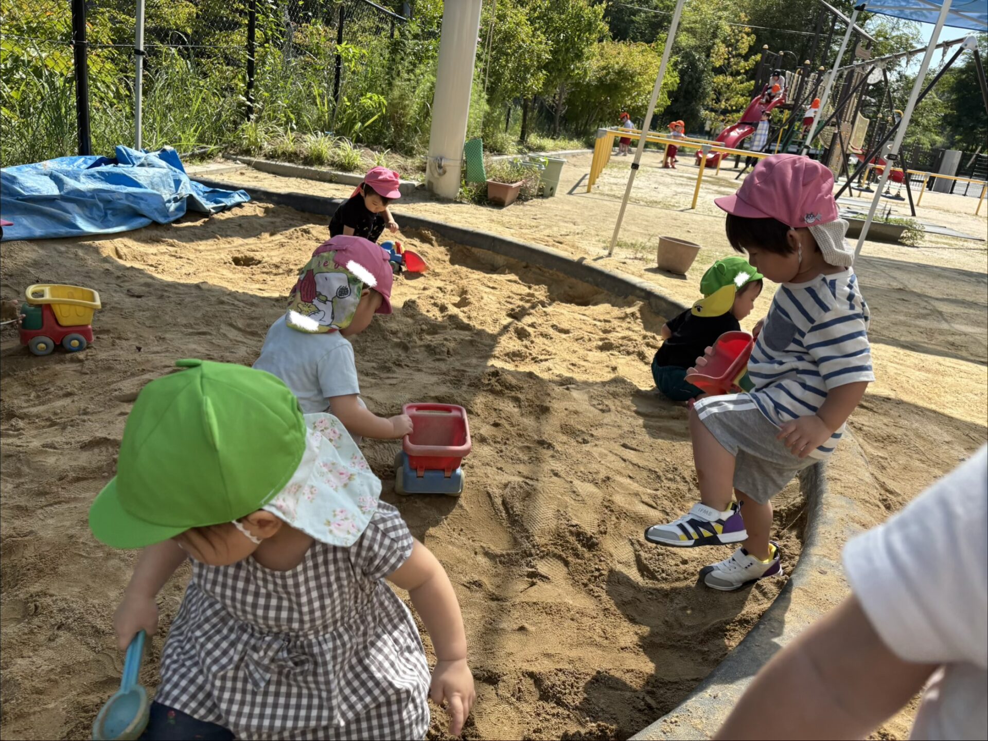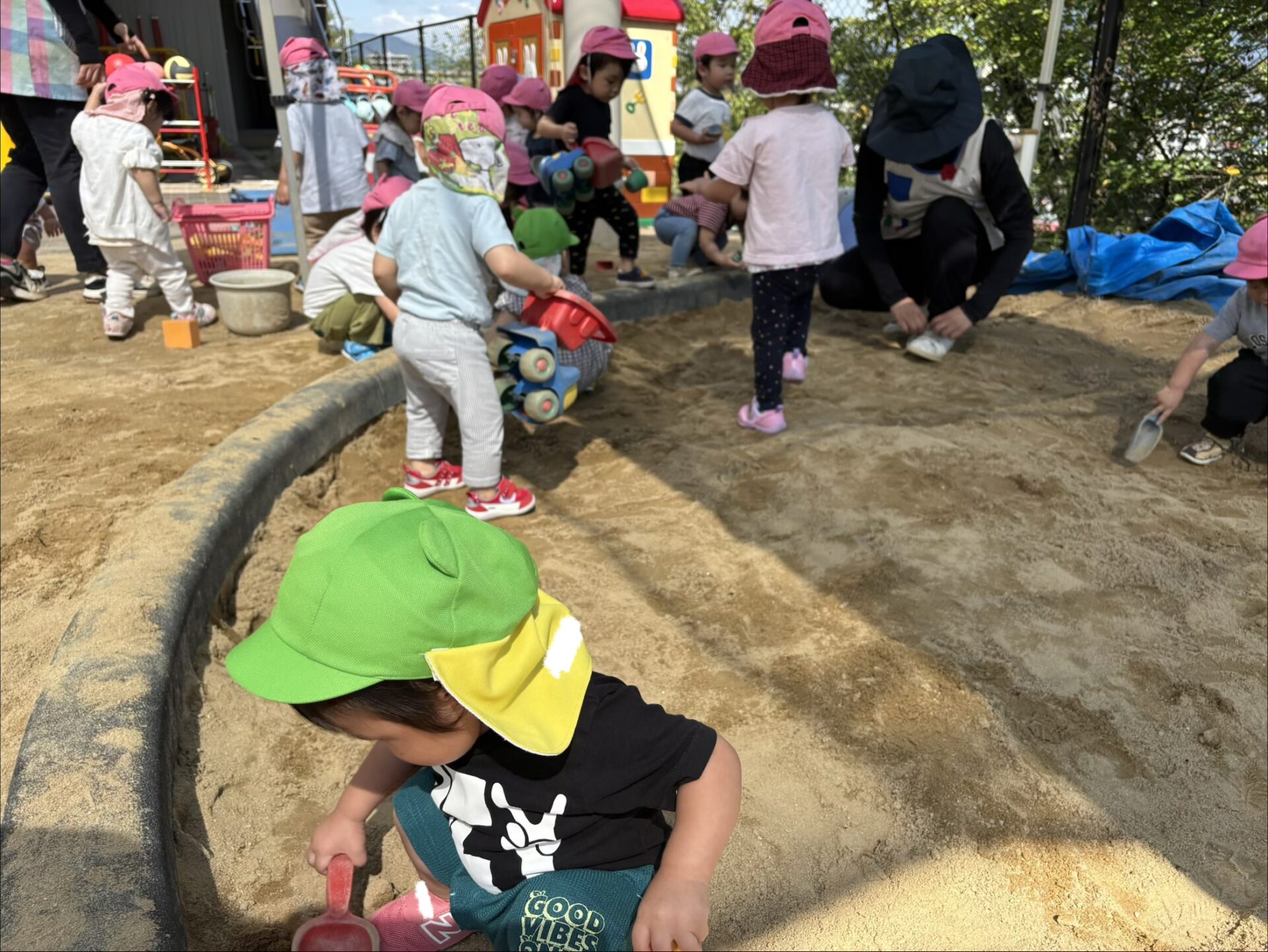 真剣な表情でスコップを使って砂をすくい、容器の中に何度も入れて見せてくれました☺