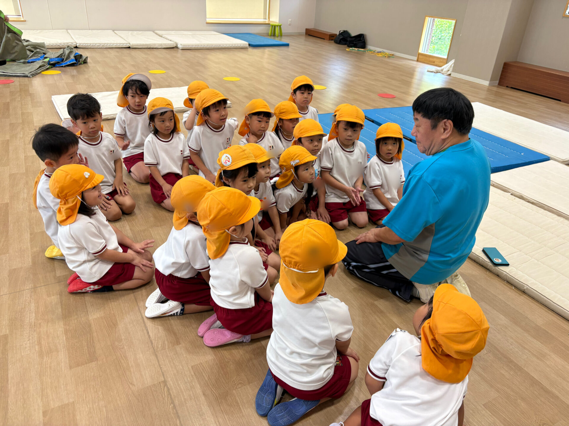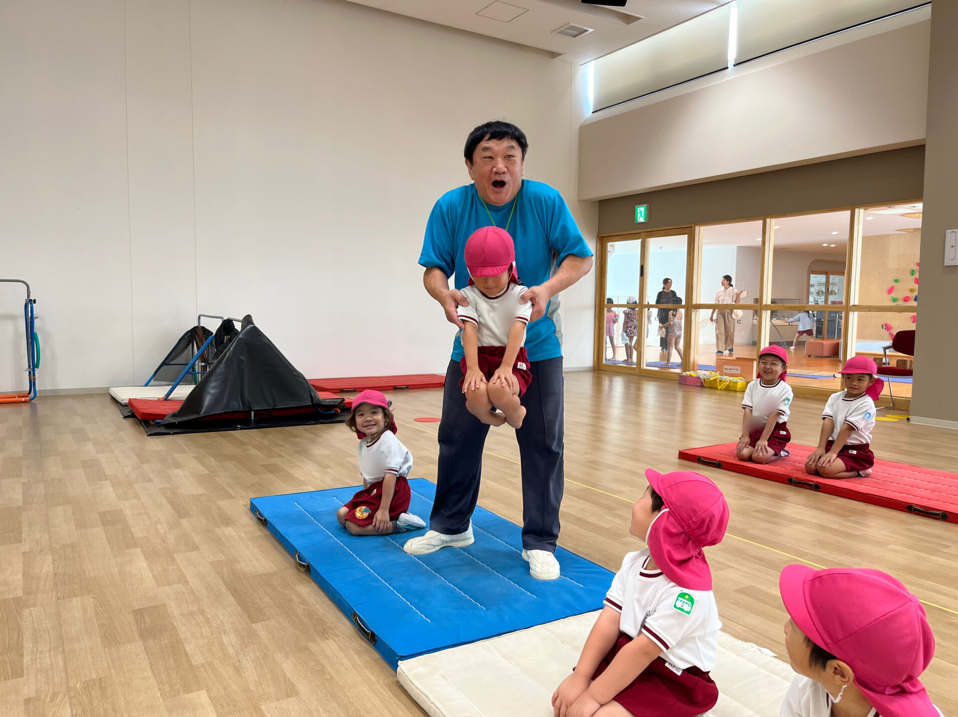 今日はこうちゃん先生とあやみ先生と一緒に、みんなで元気に思いきり体を動かしました。