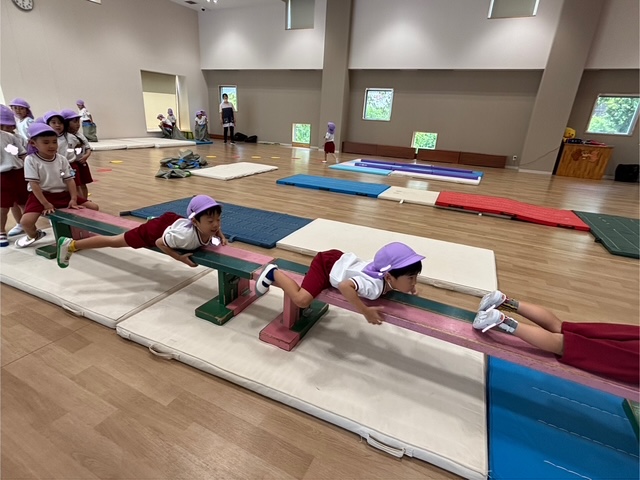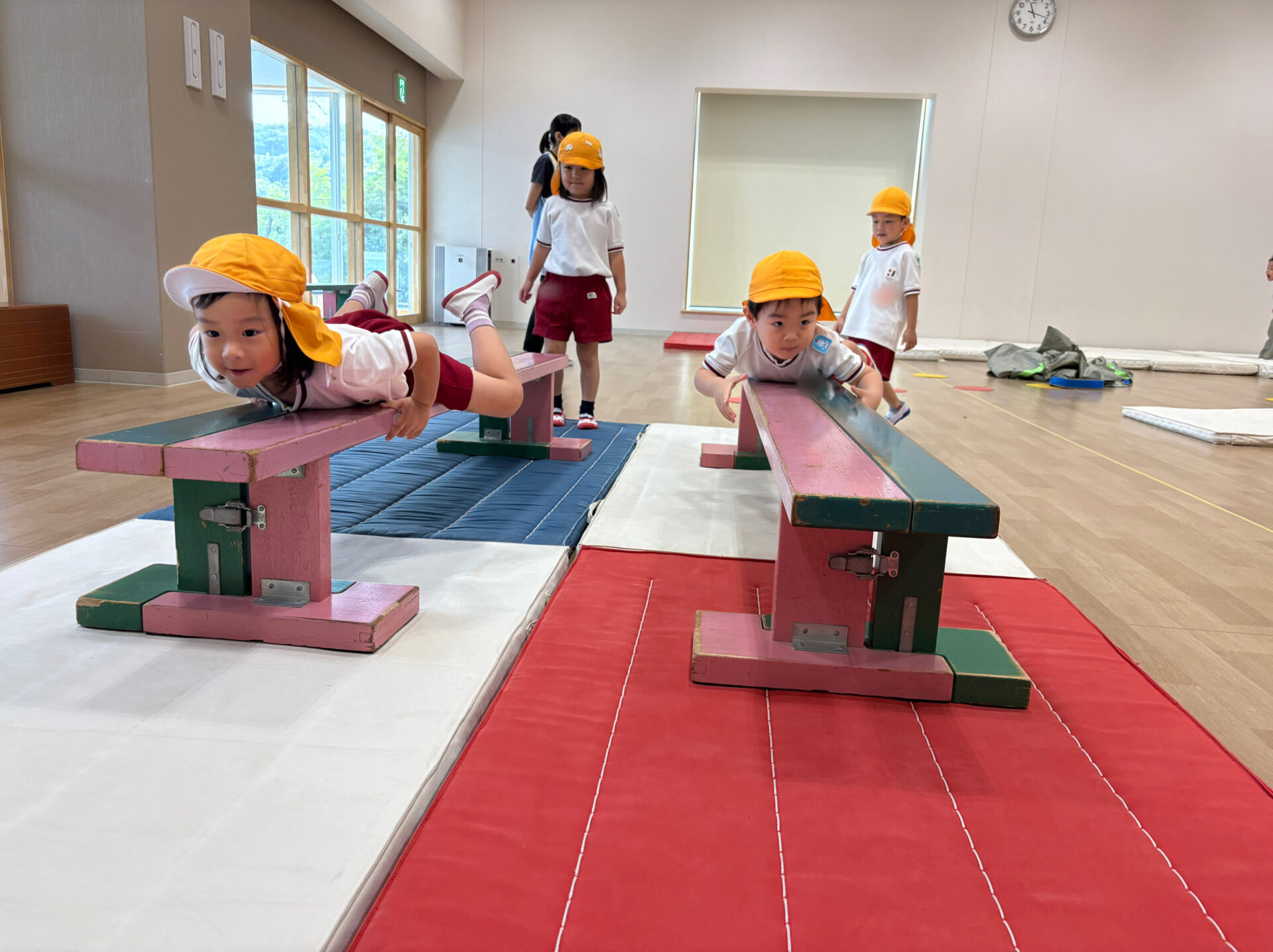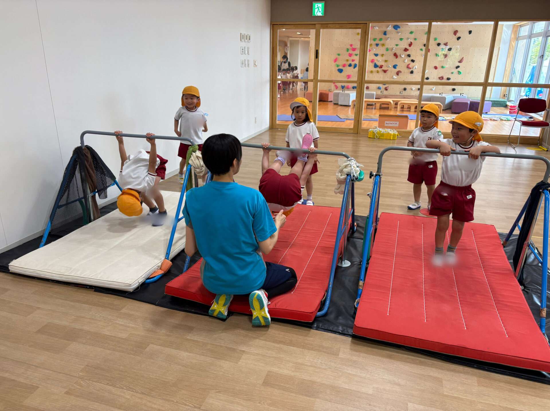 サーキット遊びでは、体のいろいろな部分を使いながら楽しみました。