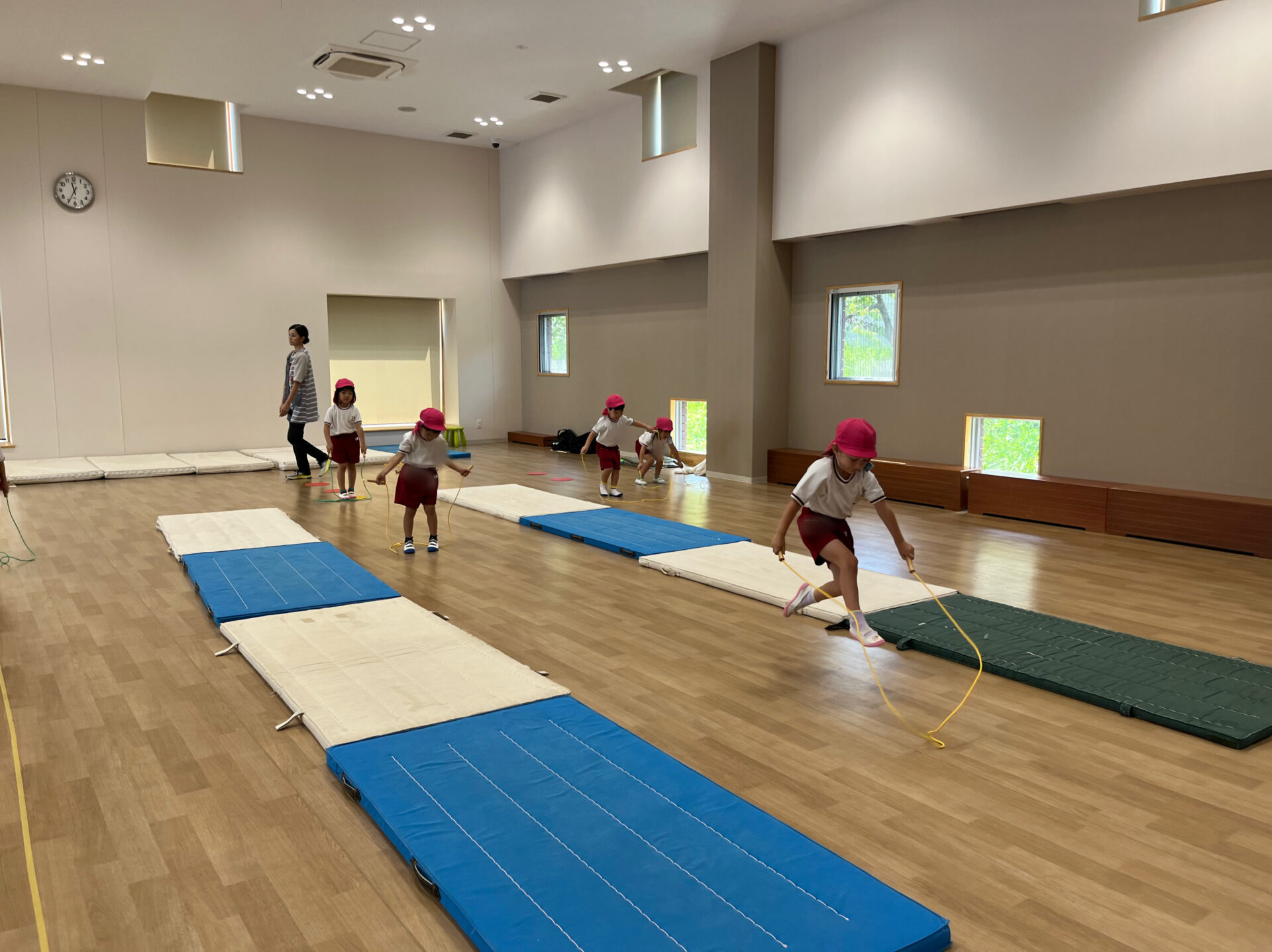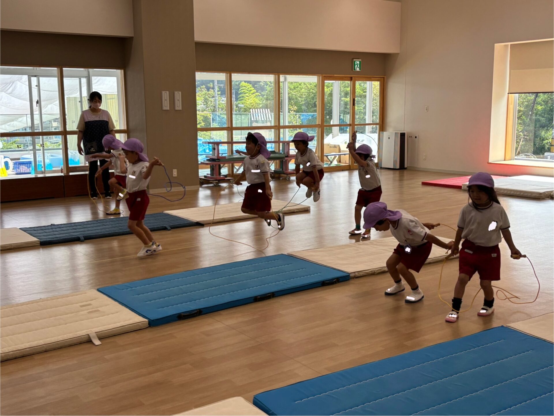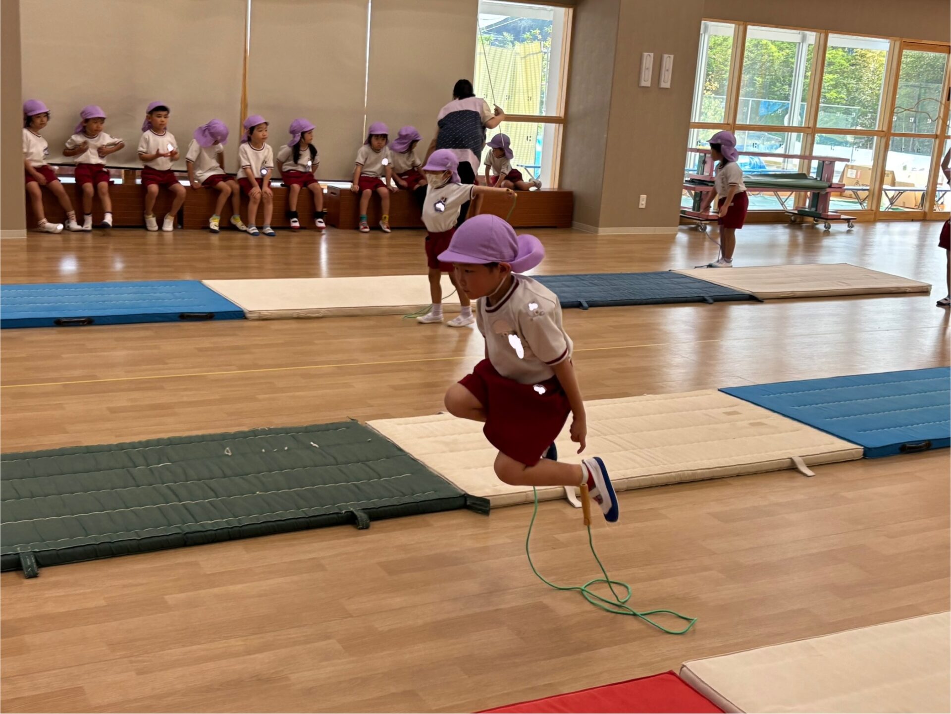なわとびでは、自分のリズムで跳ぶことが少しずつ上手になってきています。