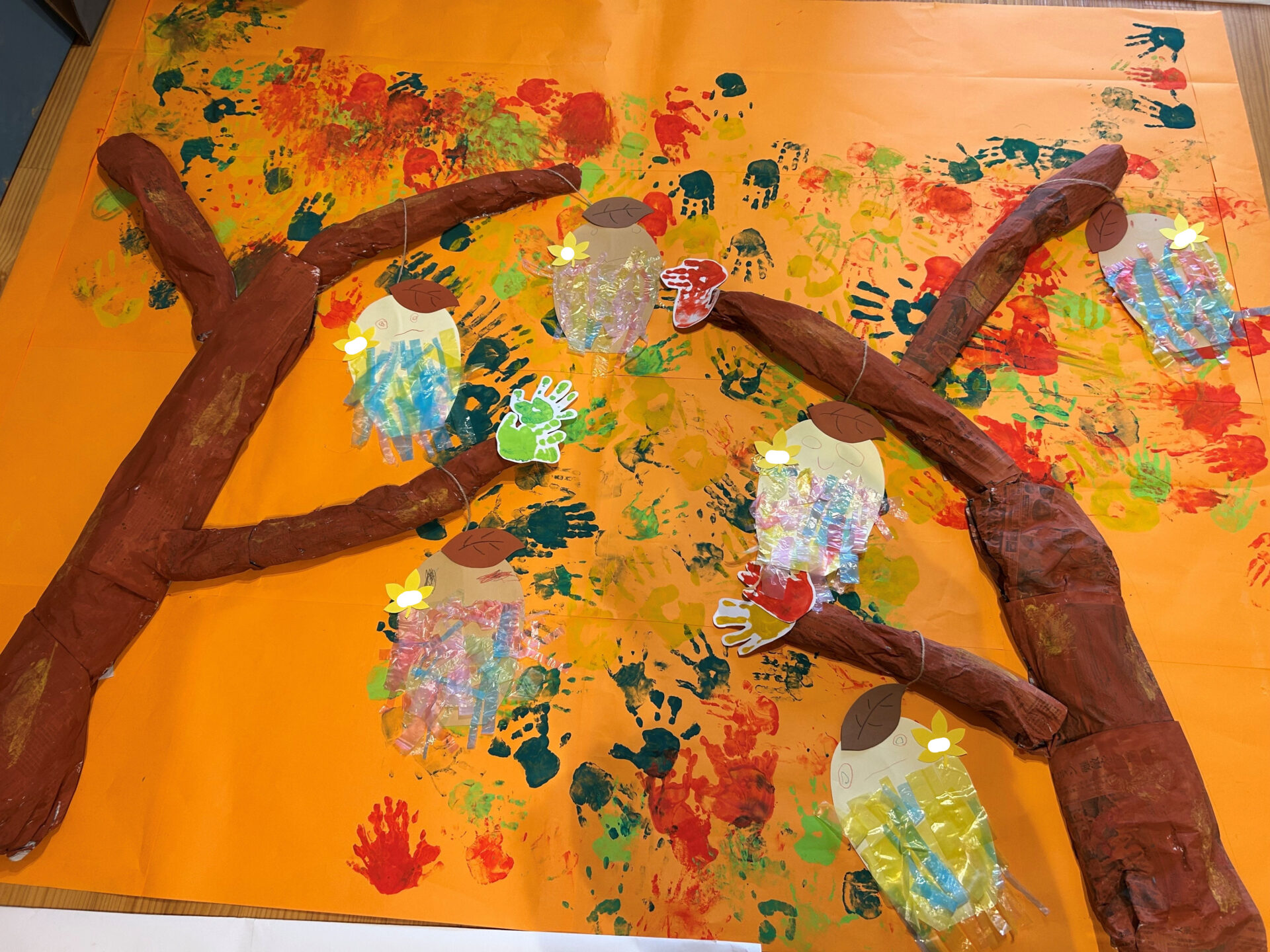 秋をイメージし、紅葉した木を手形で製作しました。🌳