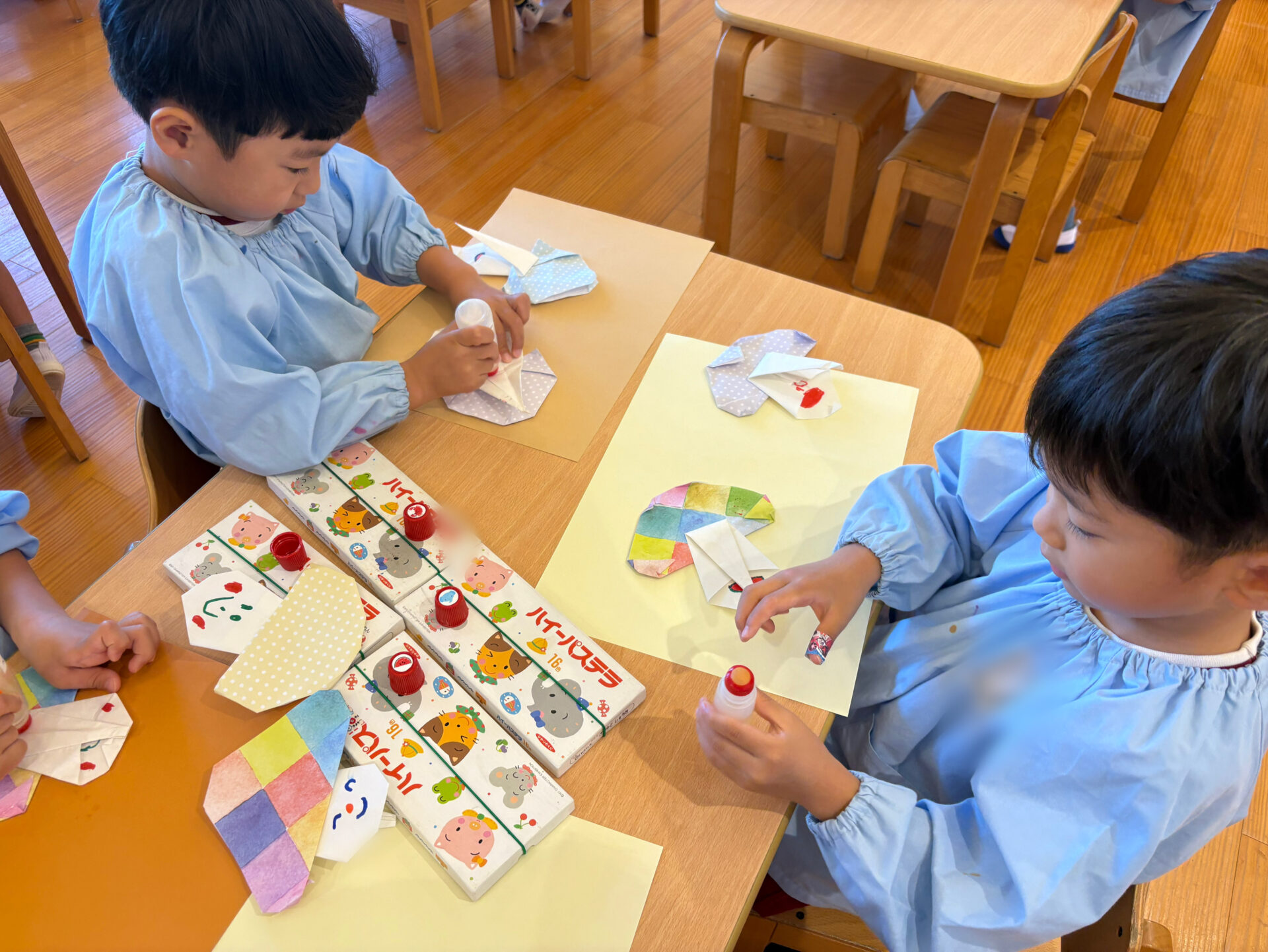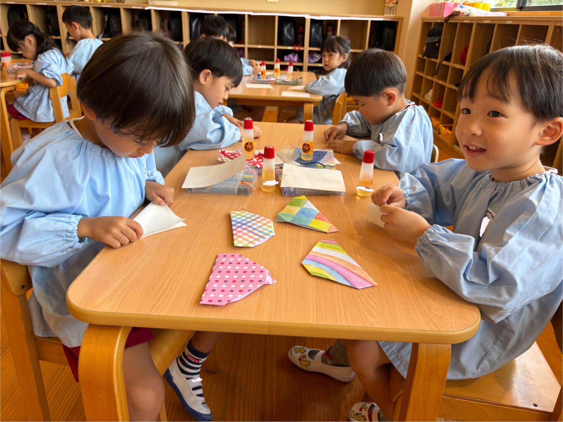 折り紙を折る楽しさ、描く楽しさに加え、季節や食べ物への興味や関心が育まれた時間にもなりました✨