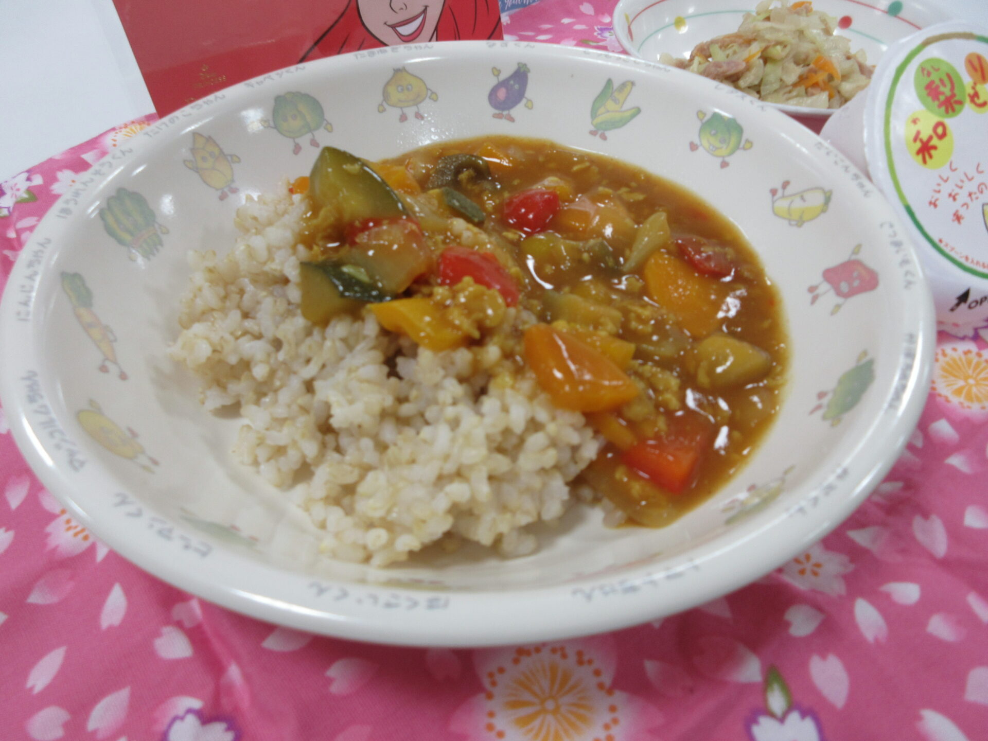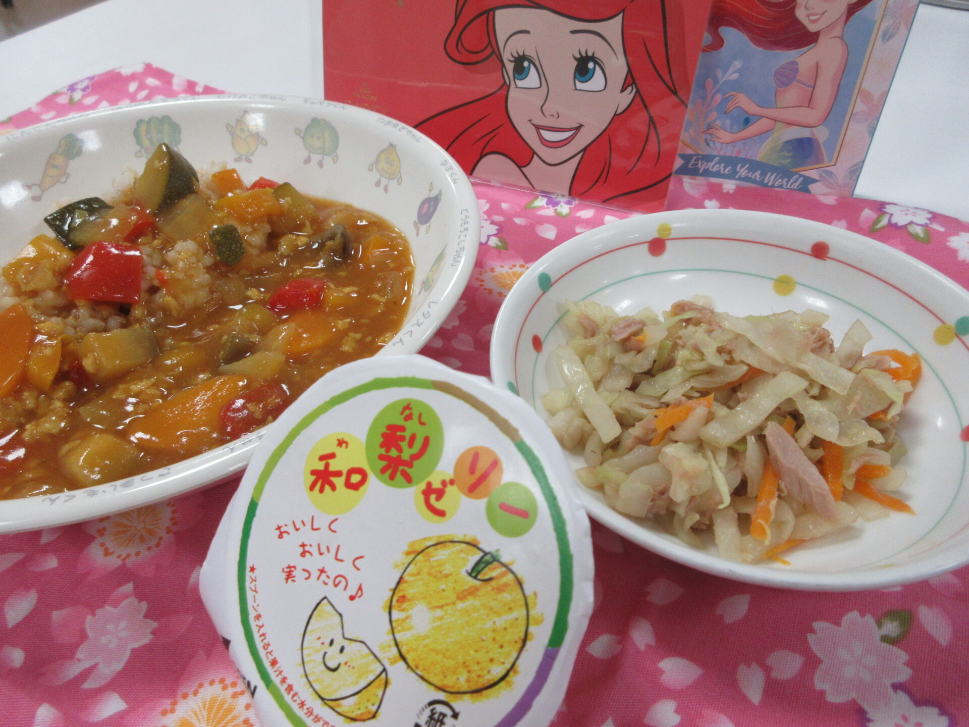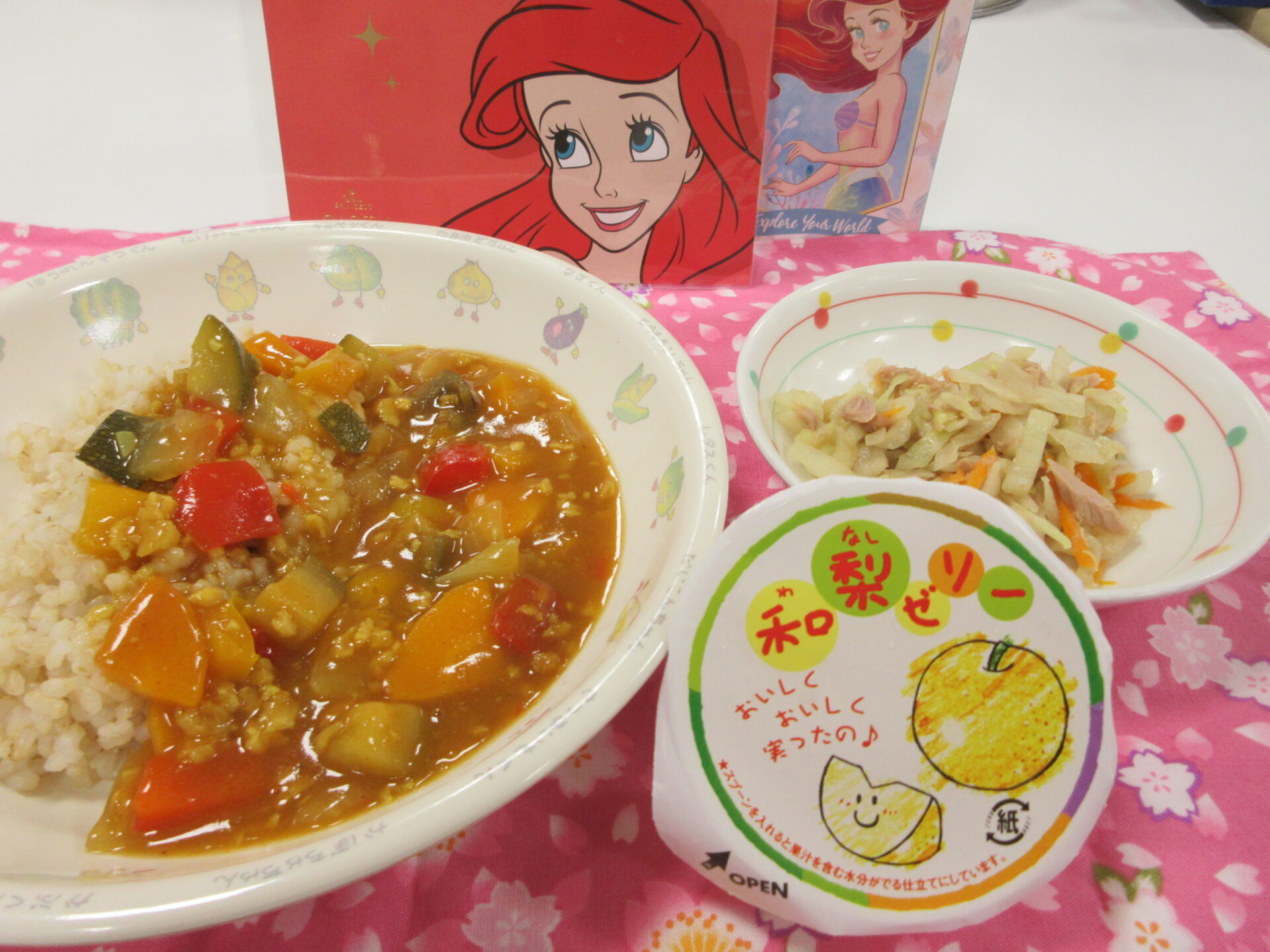 【発芽玄米ご飯 夏野菜カレー キャベツとツナサラダ 🍐梨ゼリー 食べる煮干し】