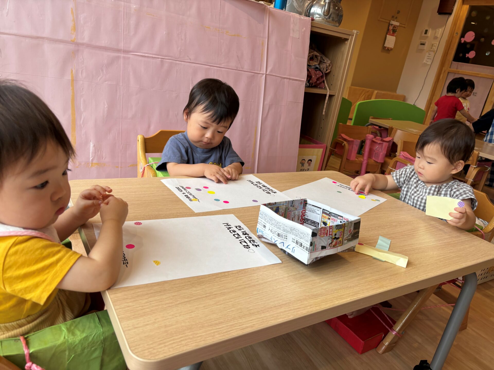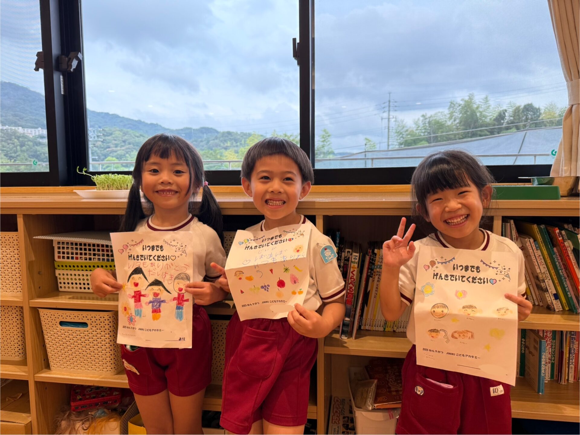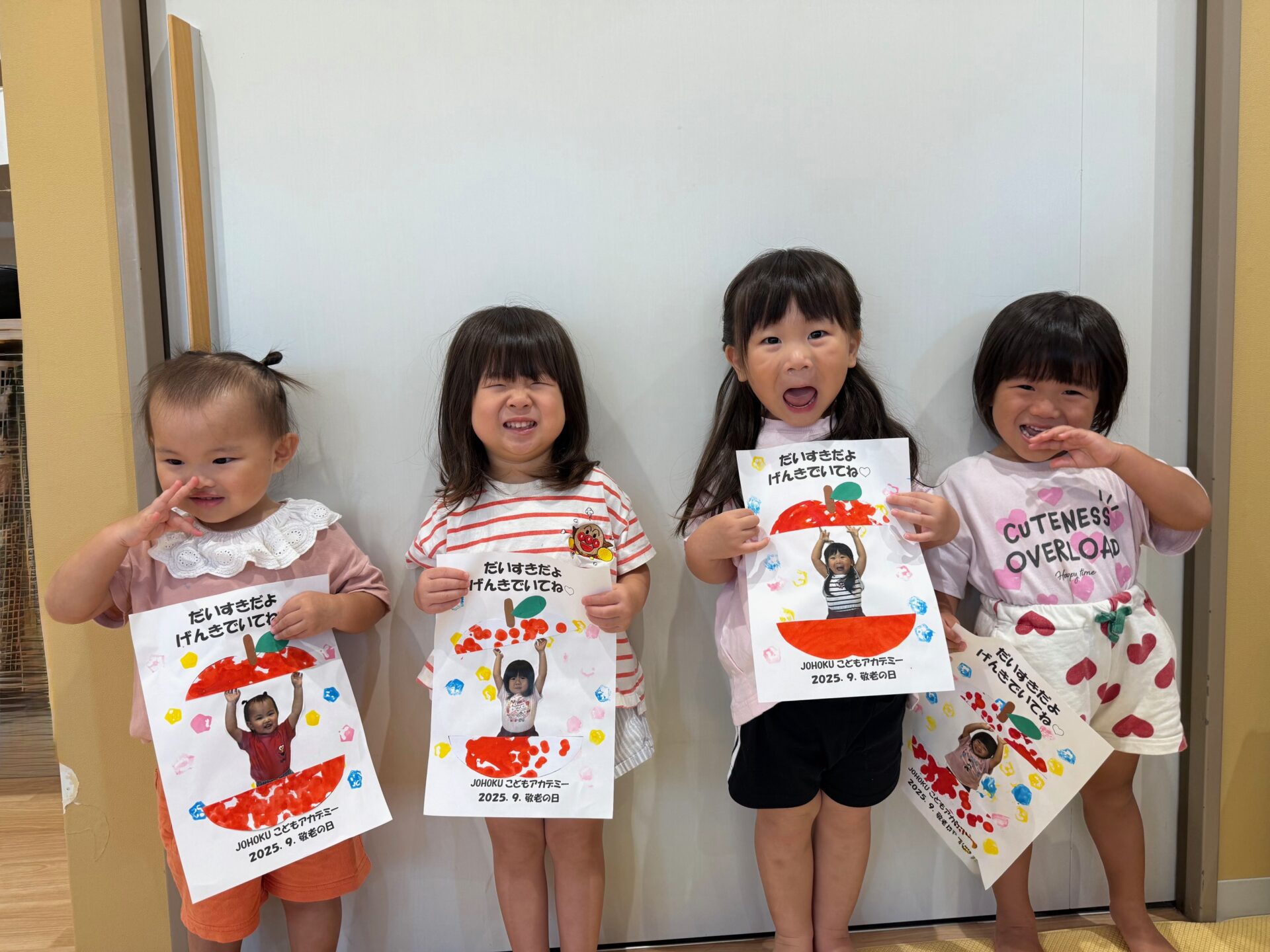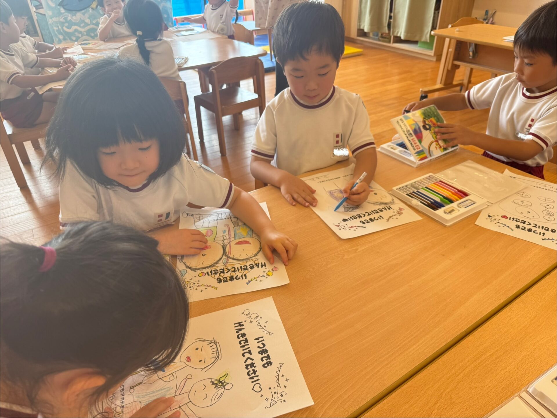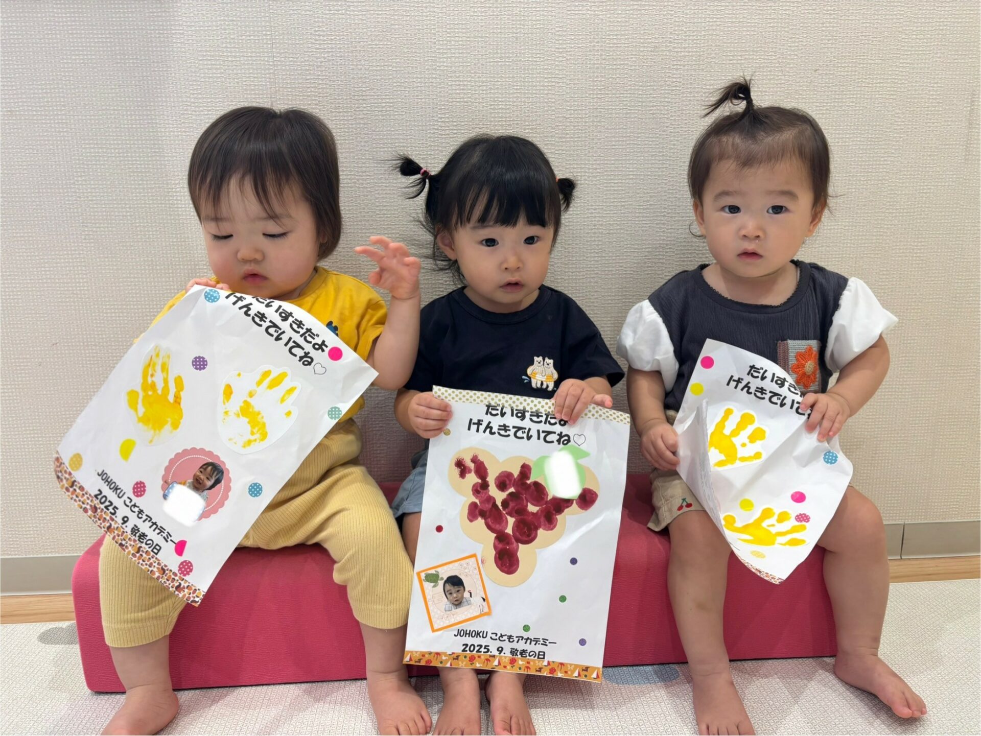敬老の日を前に、各学年でこの日の意味を保育教諭から聞いたり園児同士で話し合ったりして、大好きなおじいちゃん・おばあちゃんにプレゼント作りをしました。心をこめて作ったプレゼント🎁・・・ご家庭で園児の気持ちと一緒に手渡しをしていただけると嬉しいです。よろしくお願いいたします😊。