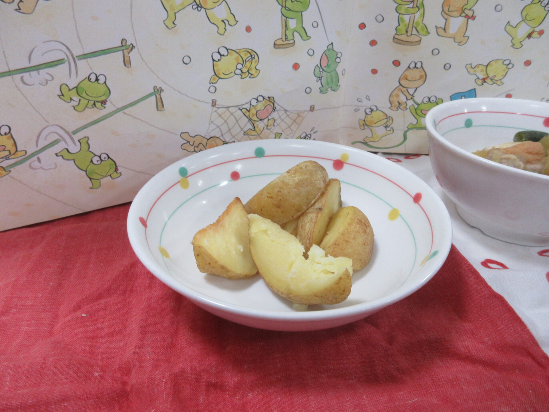 【わかめご飯(白) 厚揚げ五目煮 フライドポテト 味噌汁】