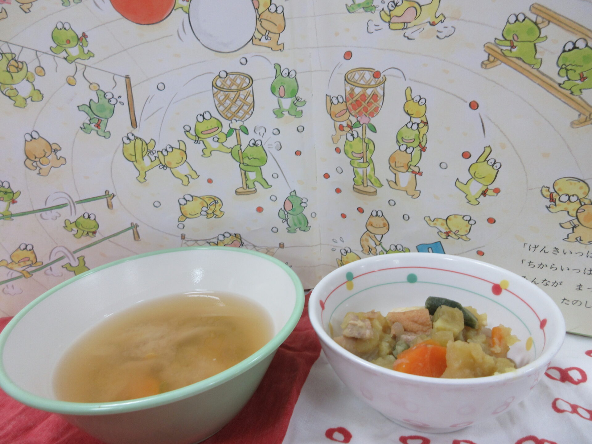 白米わかめご飯は、大好きでたくさん食べました。厚揚げ五目煮には鶏肉や厚揚げ、さつま芋が入っていて甘くてとても美味しかったです。