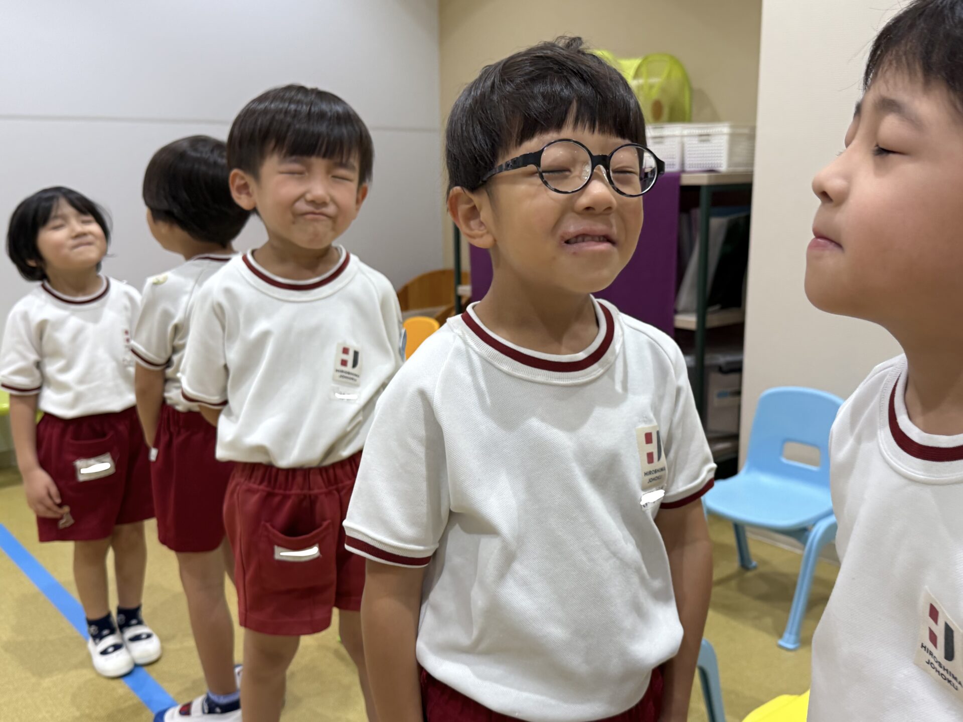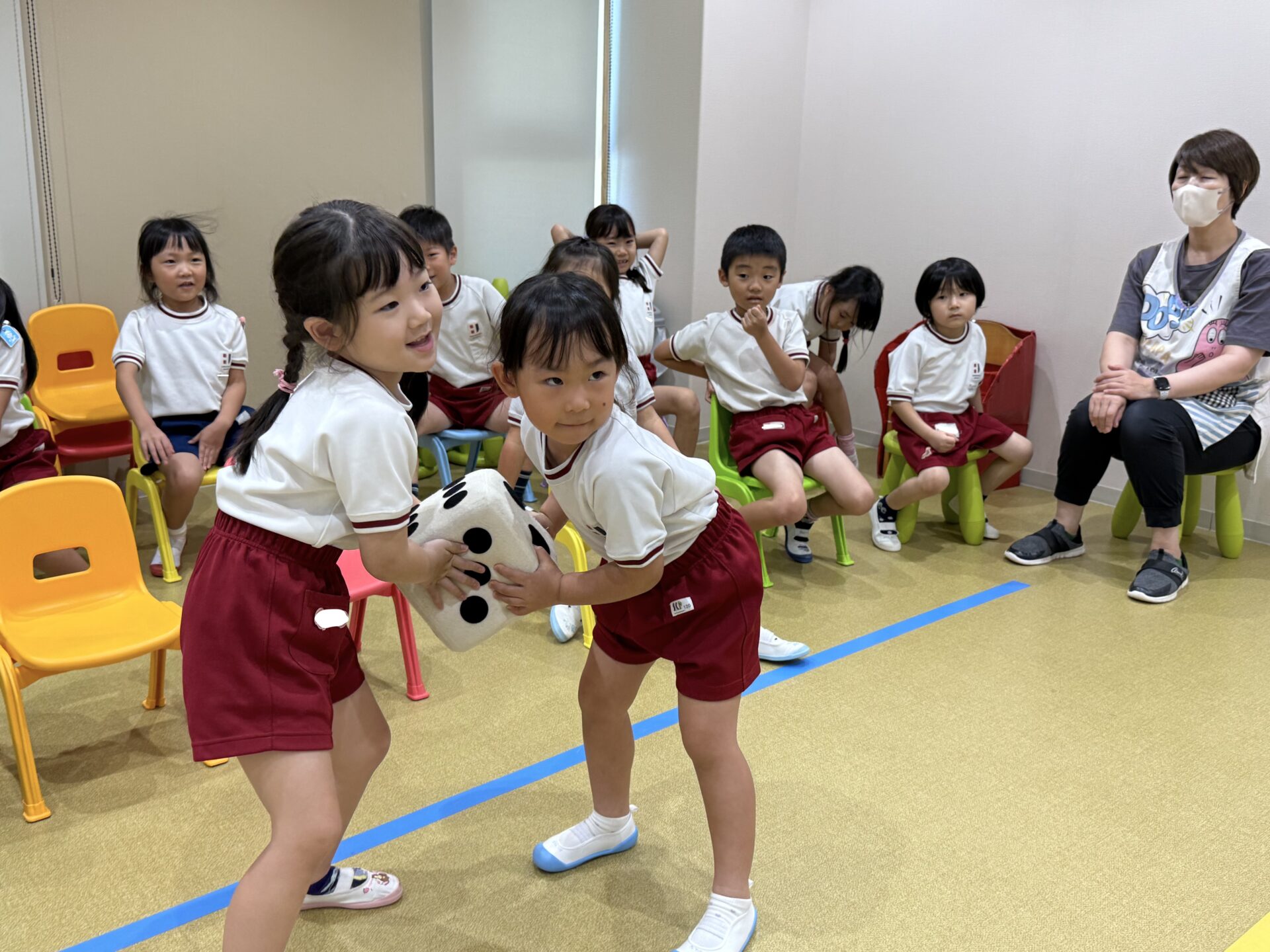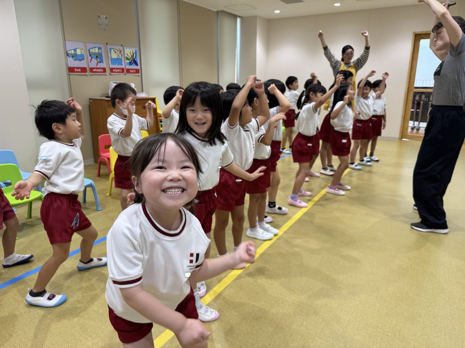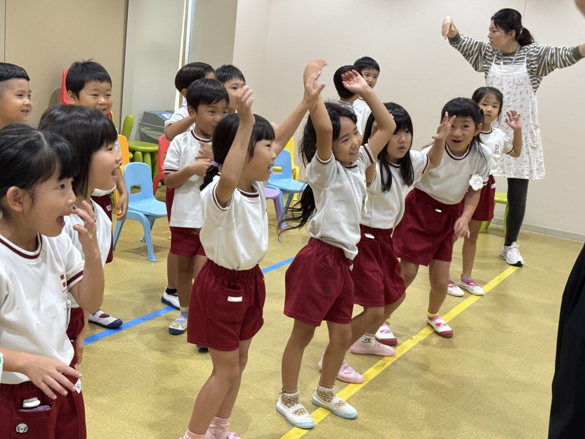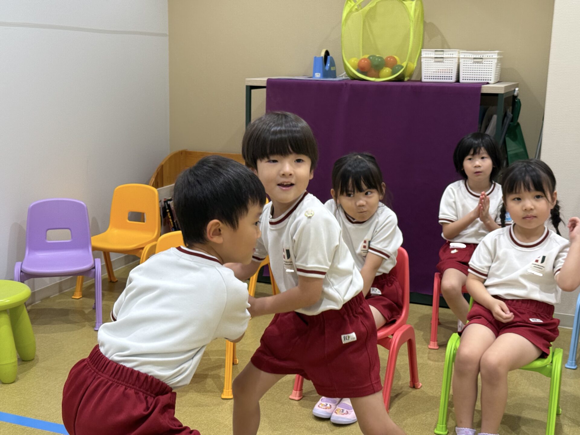 年長組は、ホットポテトとかくれんぼポケモン🫣をして、いろいろな街の場所を覚える練習をしました。年長組の発音は特にスーパーマーケットと駅の発音が上手で、もちろんみんなピザレストランを覚えています。まずはマンスリーの歌「左と右」を楽しみ、アリサ先生の言葉に合わせて目を閉じて左か右を向くミニゲームをしました。それで、このテーマの最後の英語遊びでは、レースゲームをしました🎉 2つのチームがゴールラインを目指して競争し、着地した場所を叫びました。ただし、滑り台🛝に着地すると、車がさらに後ろの場所に滑り落ちてしまうというルールがありました!クラスによってはとても接戦で、何度も滑り台に着地するチームもありました。興奮したり😆、悲しんだり😭、そしていつものように英語の楽しさがありました🤩!