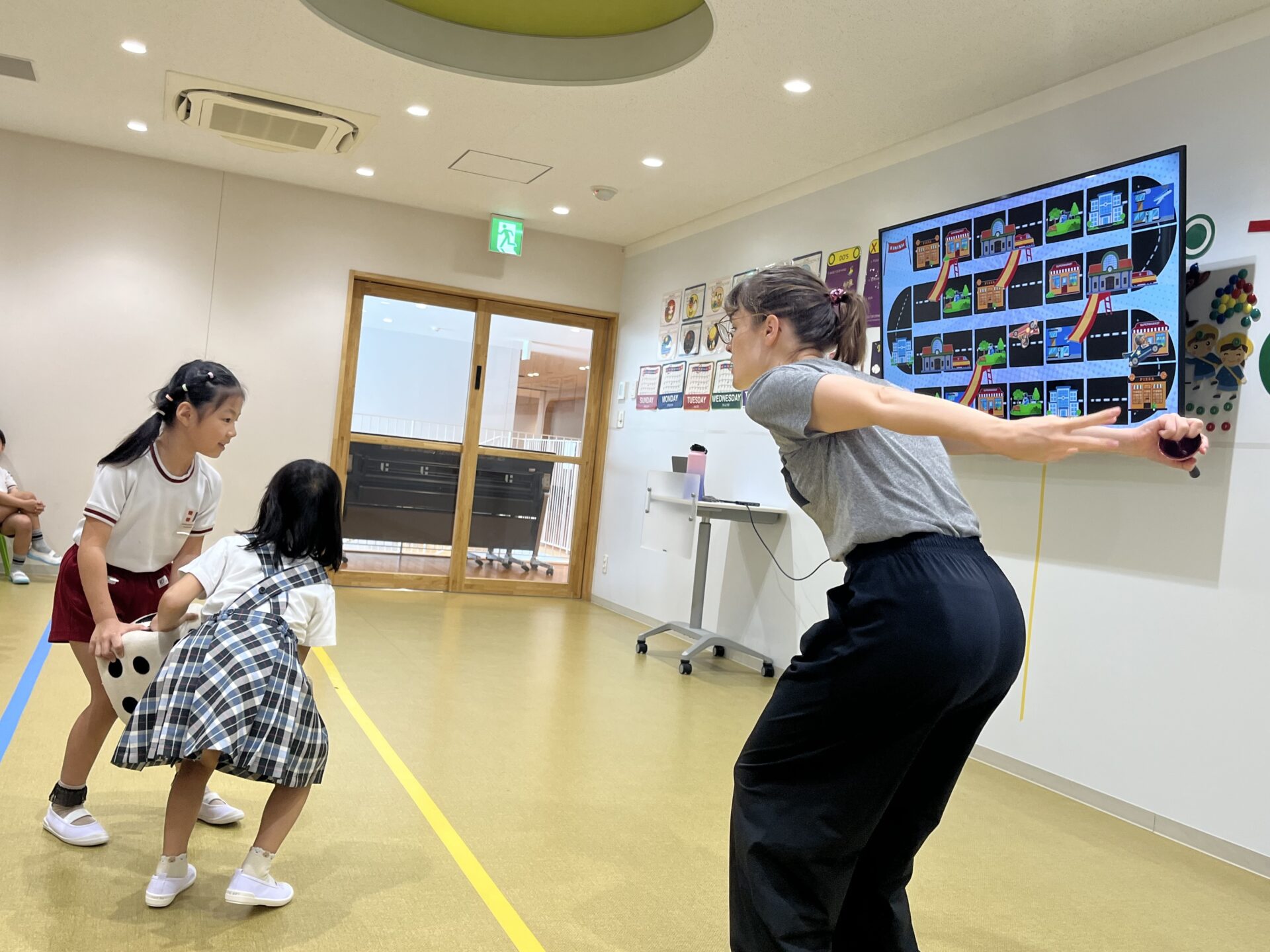 Nenchou has played Hot Potato🥔 and Hide and Seek Pokemon🫣 to practice learning different city places. Nenchou’s pronunciation is particularly good with supermarket and train station; and of course everyone remembers the pizza restaurant🍕 To start we enjoyed the monthly song “Left and Right” and played a mini game where everyone closed their eyes and turned either left or right depending on what Alyssa-sensei said. Then, we played a race game for the last Englihs play of this theme🎉 Two different teams raced to the finish line as they called out what place they landed on. One catch: if they landed on a slide🛝 their car slid down to a place further back! It was a really close game for some classes some teams landed on a slide multiple times. There was excitement😆, there was sadness😭, and as always there was English fun🤩!