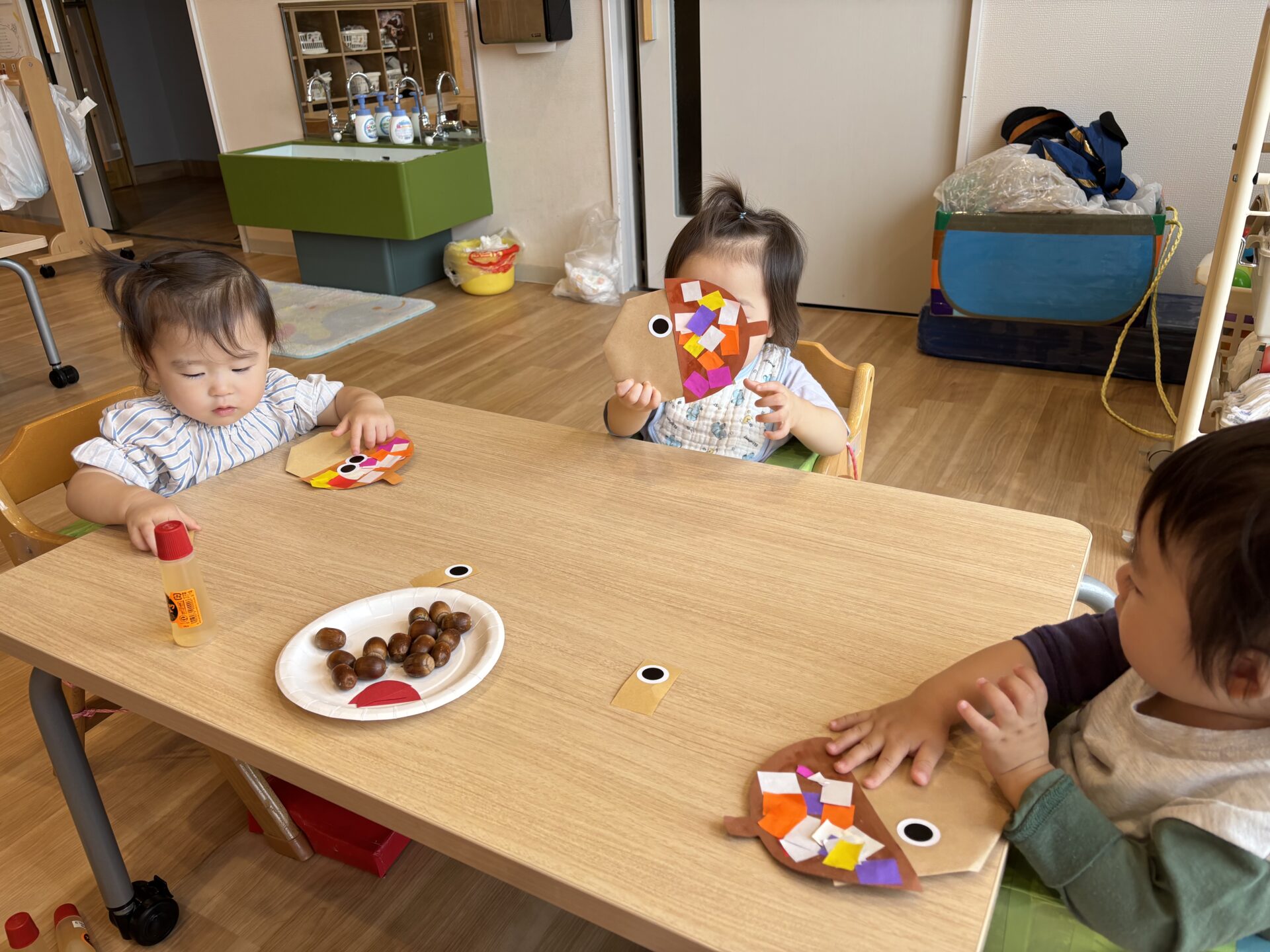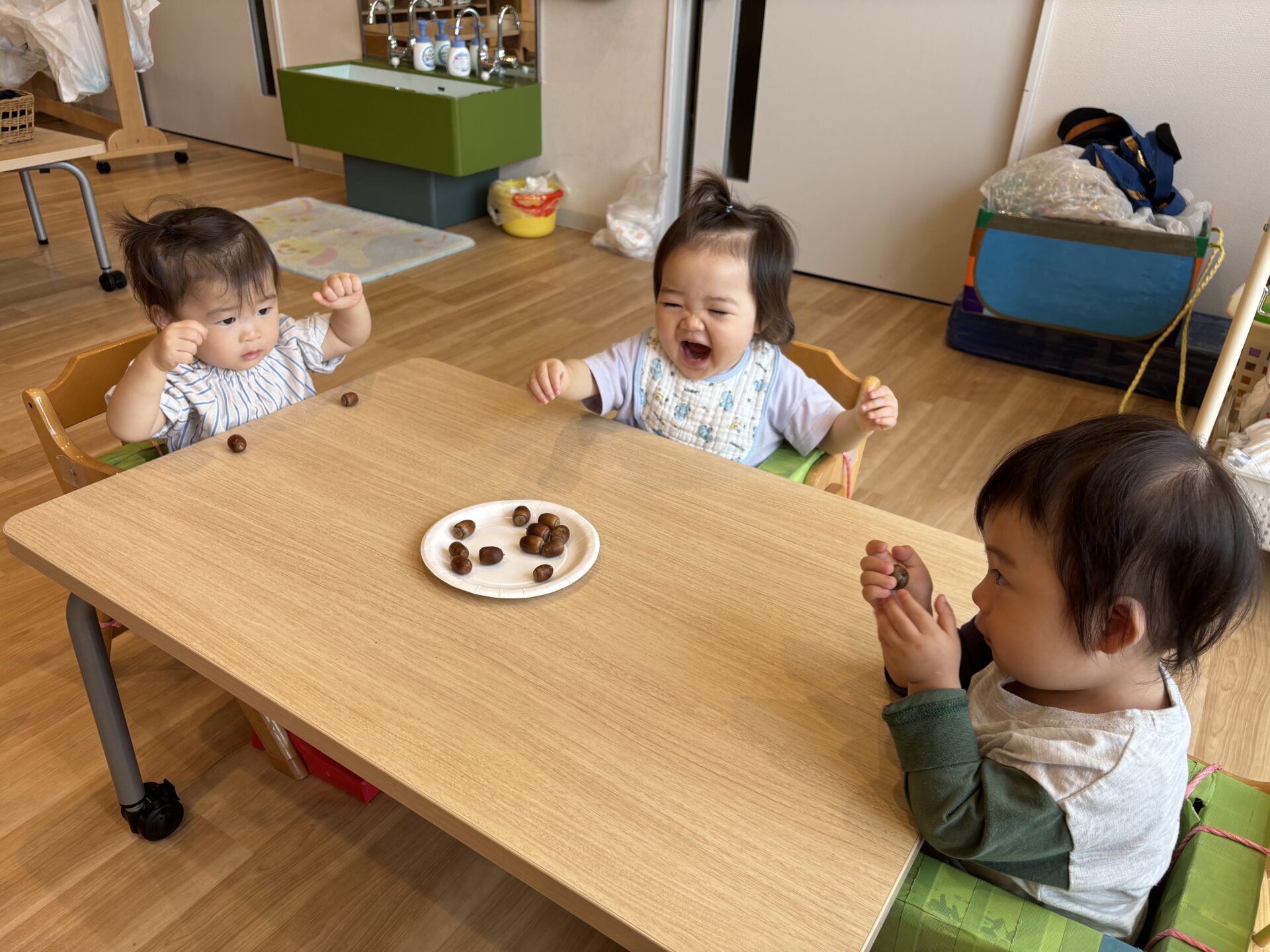 友達が持っているどんぐりと交換して、”どうぞ”のやりとりも楽しんでいました☺
