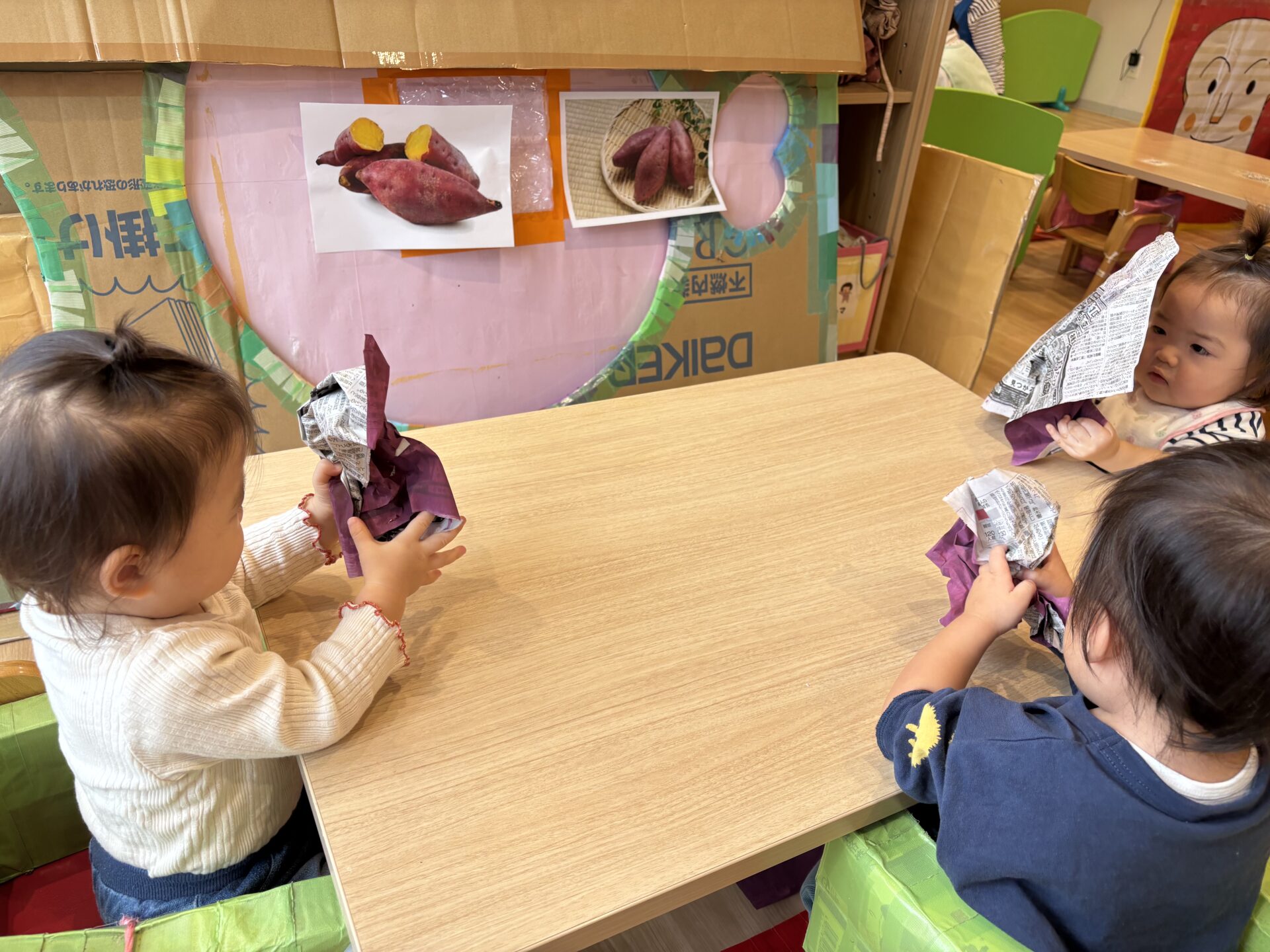 さつまいもの絵本や写真を見ながら、「うんとこしょ!どっこいしょ!」と保育教諭の真似っこをしました🍠