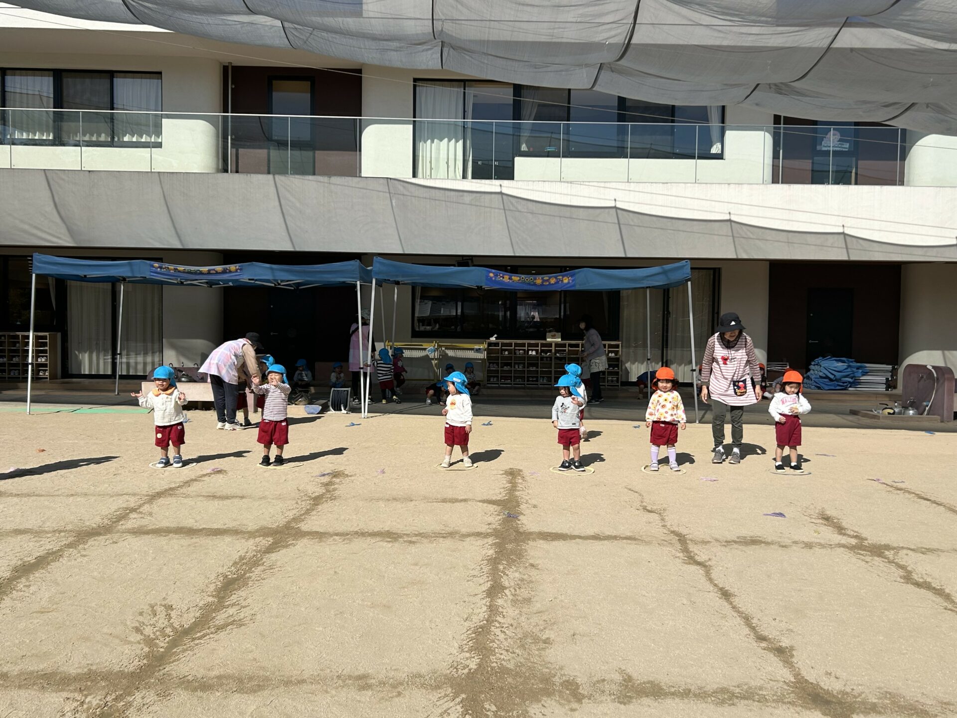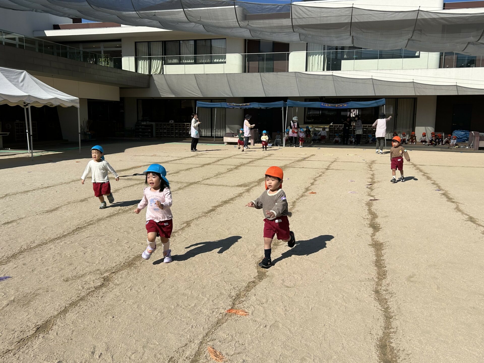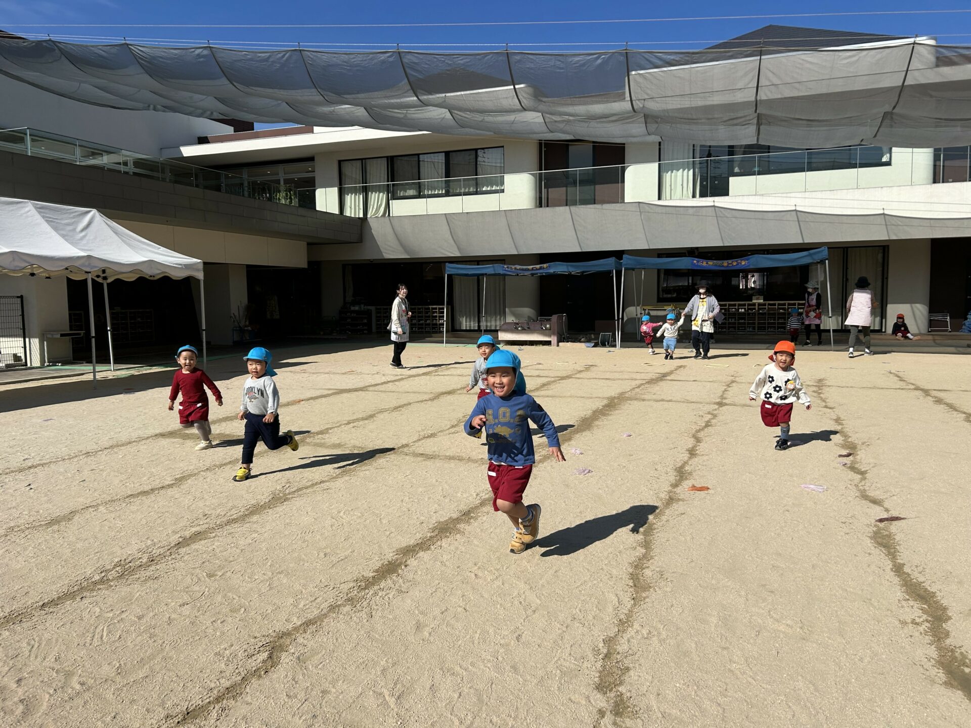 外では元気いっぱいにかけっこをしたり、「よーいどん!」の合図に合わせて笑顔で走り出したりする姿が見られました。