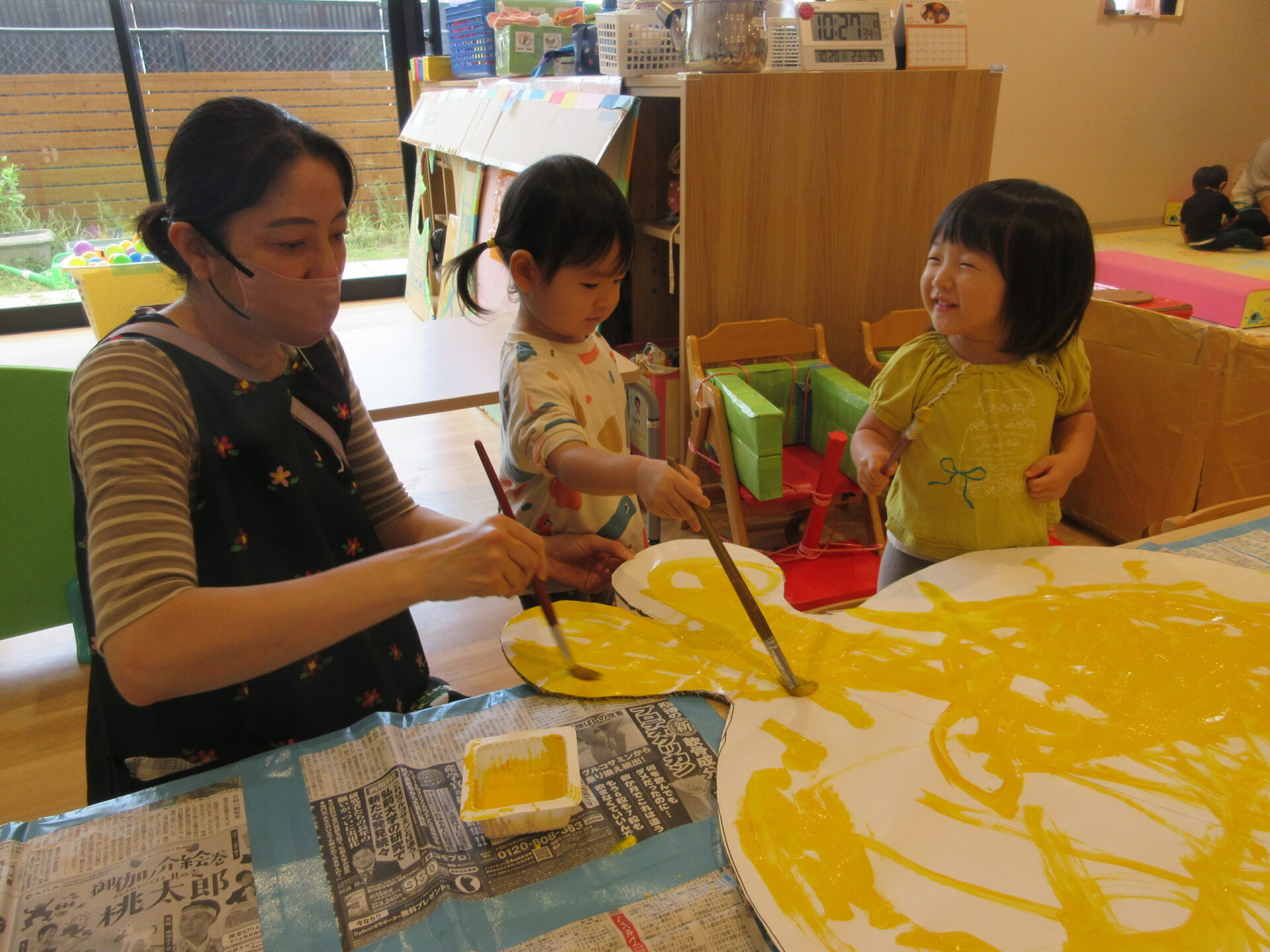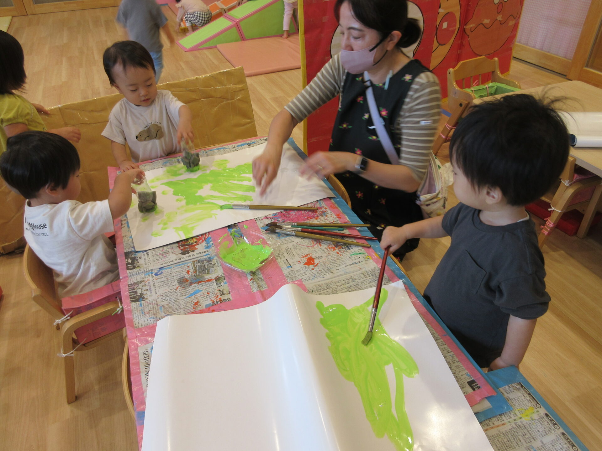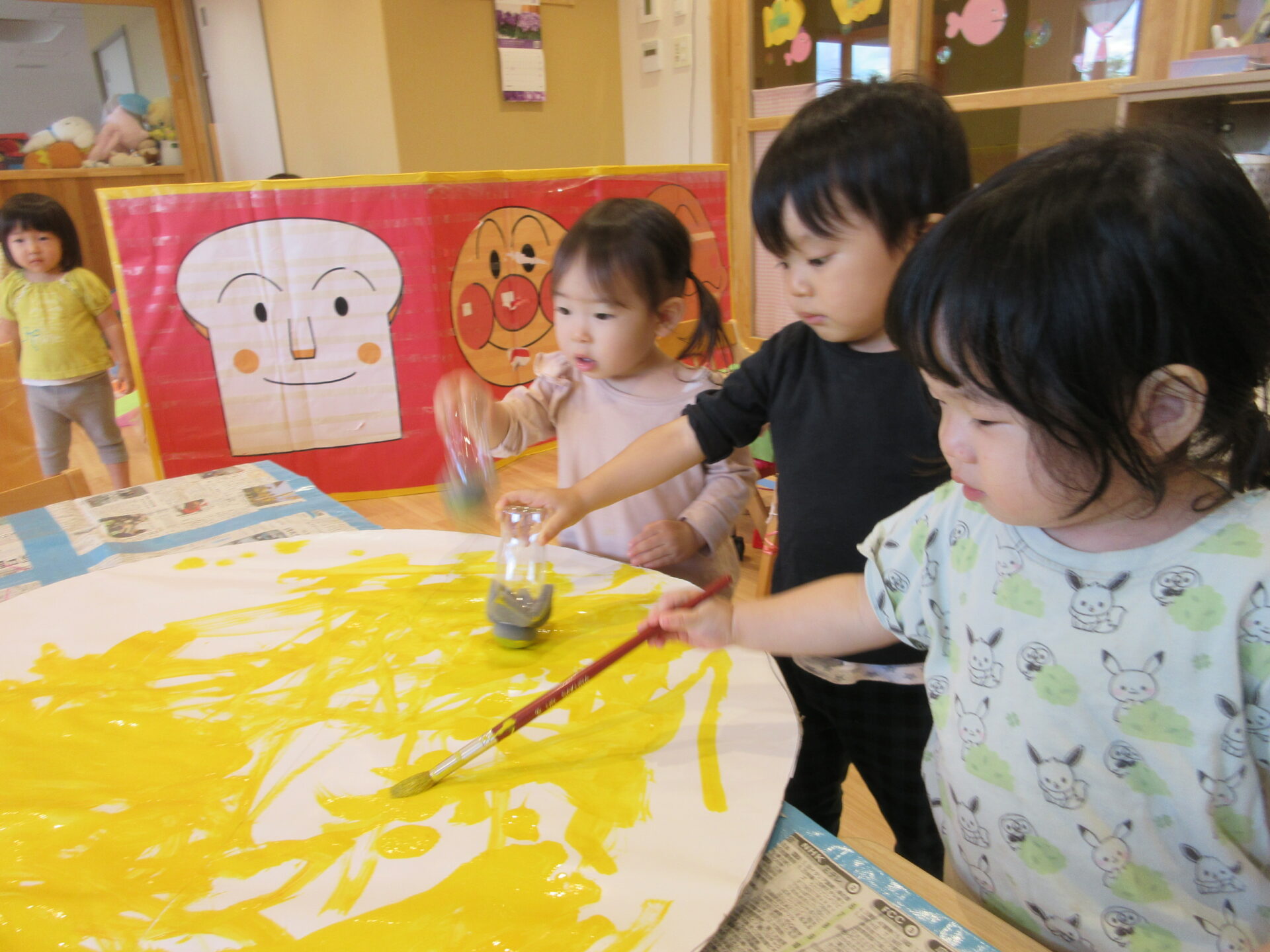 久しぶりに…絵の具の感触も楽しかったようです!この金魚一体…何に変身するのか楽しみにしておいてくださいね♪
