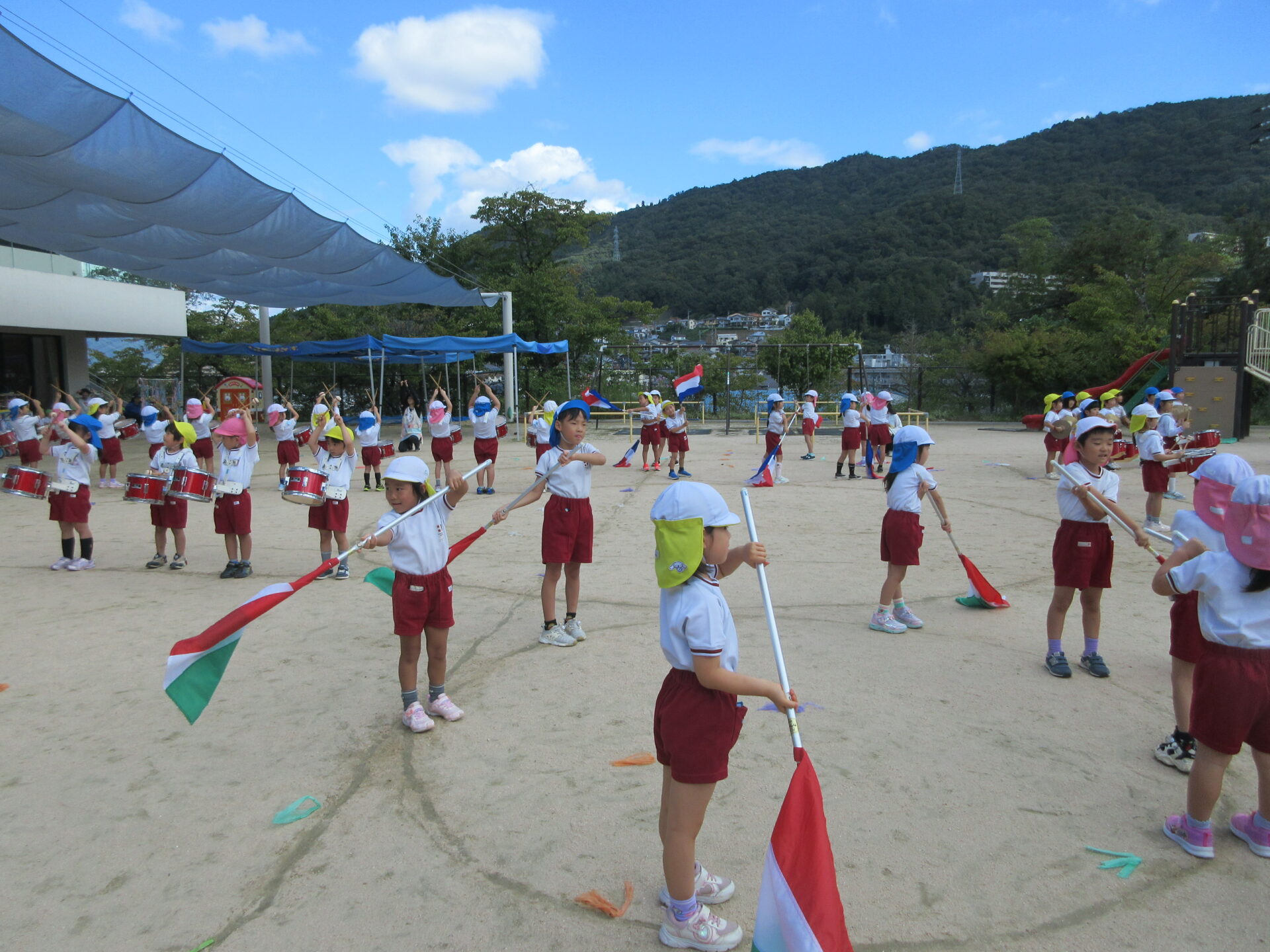運動会の予行演習を行いました。天気にも恵まれ、園児は朝からワクワク!!😊