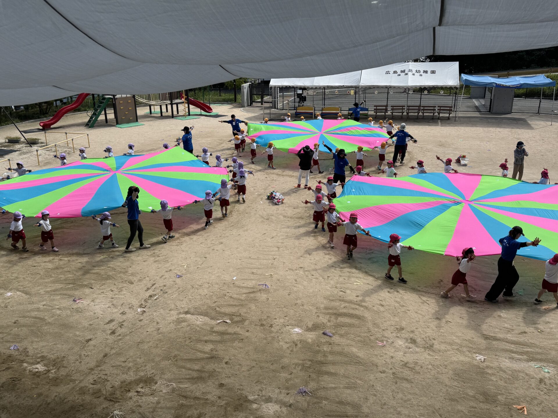 パラバルーンでは息を合わせて、バルーンを大きく膨らませることができました🎈たくさんの技が登場します😊