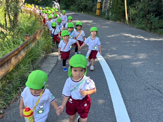 「なんだか遠足みたいだね!」「動物さん見つけたいからにお散歩に行こう🌟」「何がいるかな??」と年少組さん!