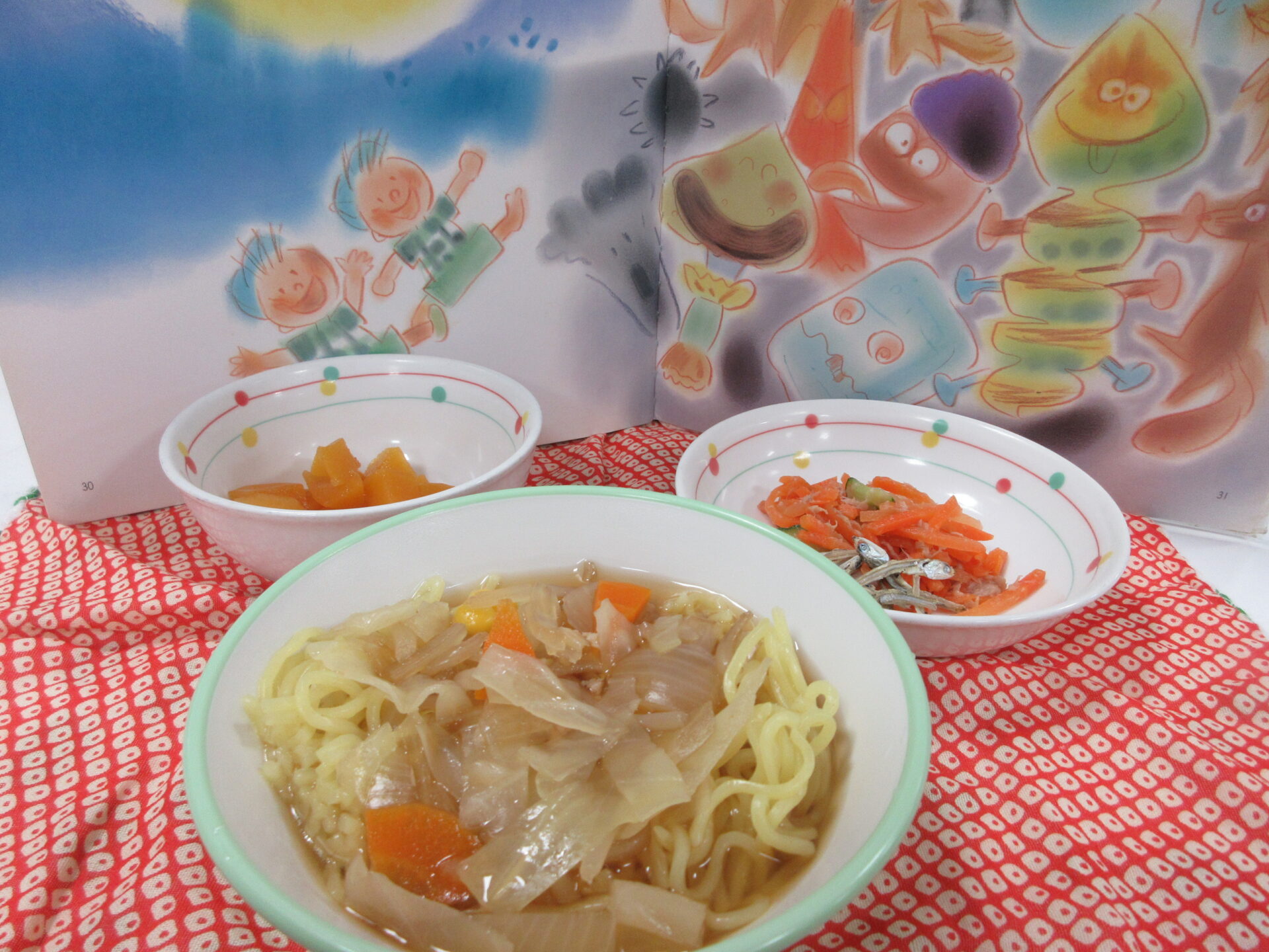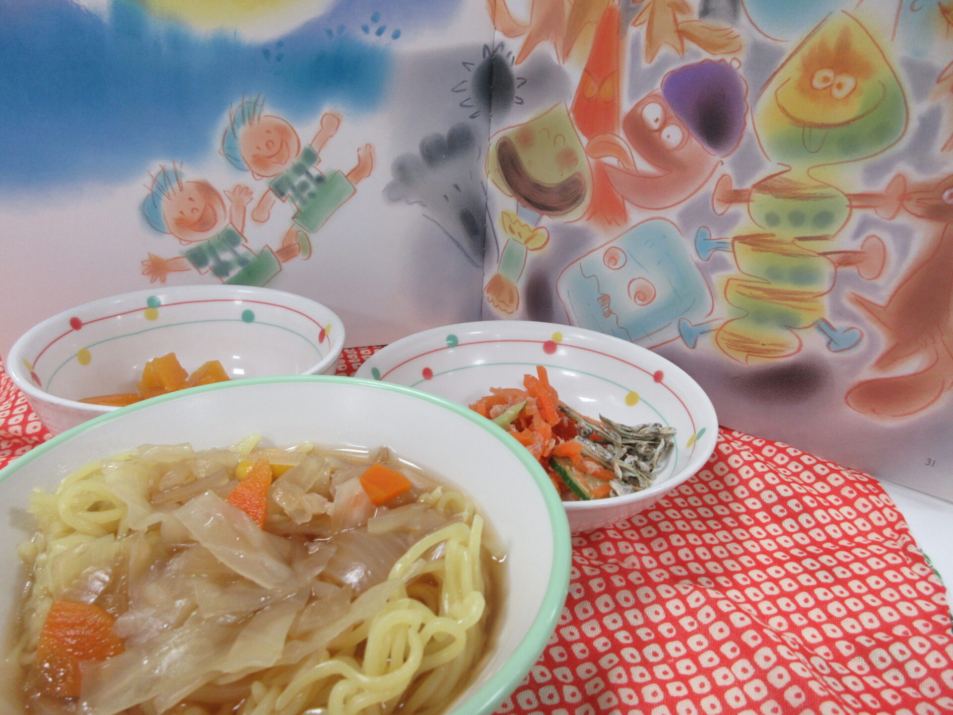ラーメンが大好きな園児🍜今日は大喜びで食べました。🥕人参シリシリは甘酸っぱく、ツナが入って美味しかったです。