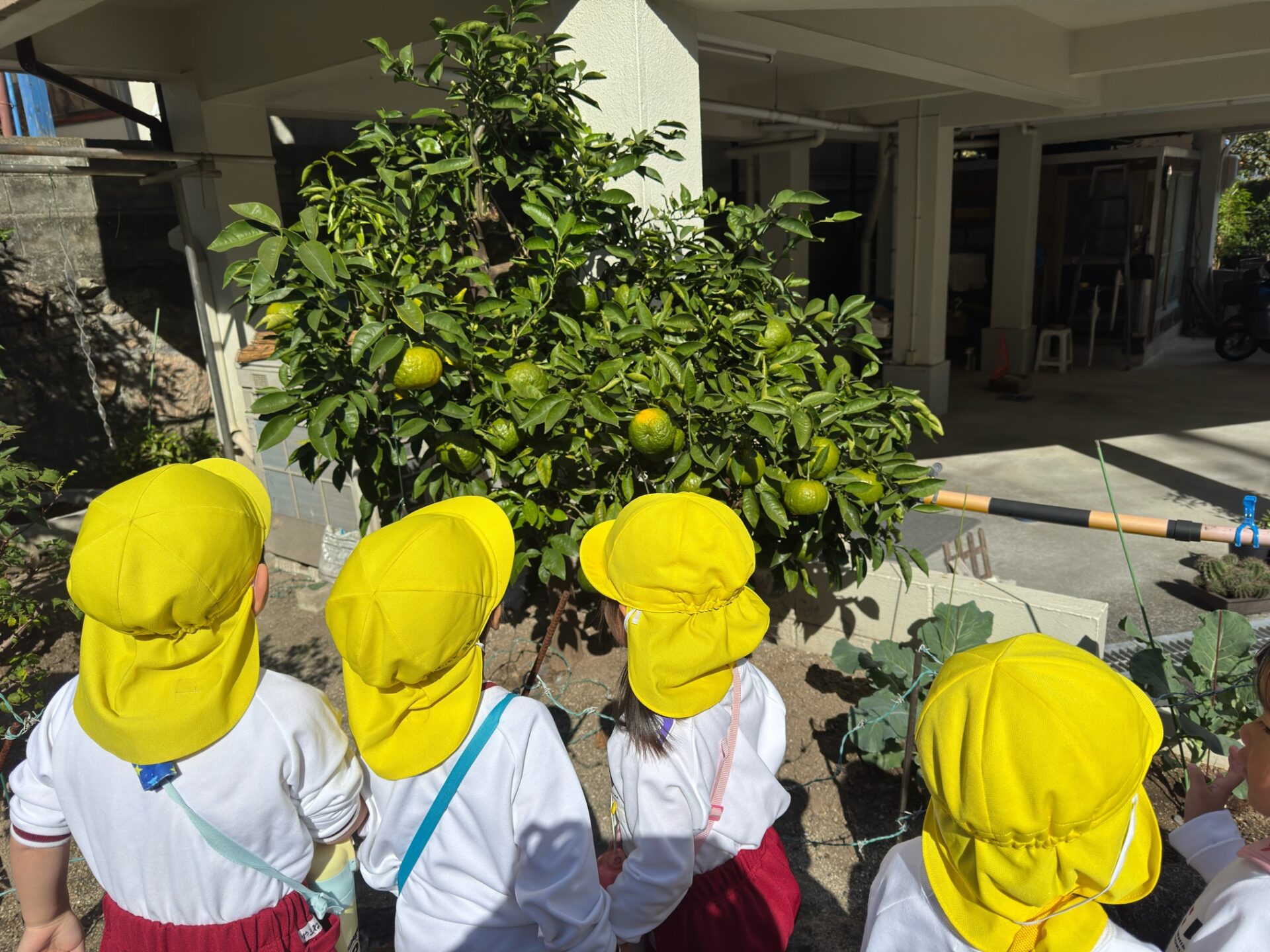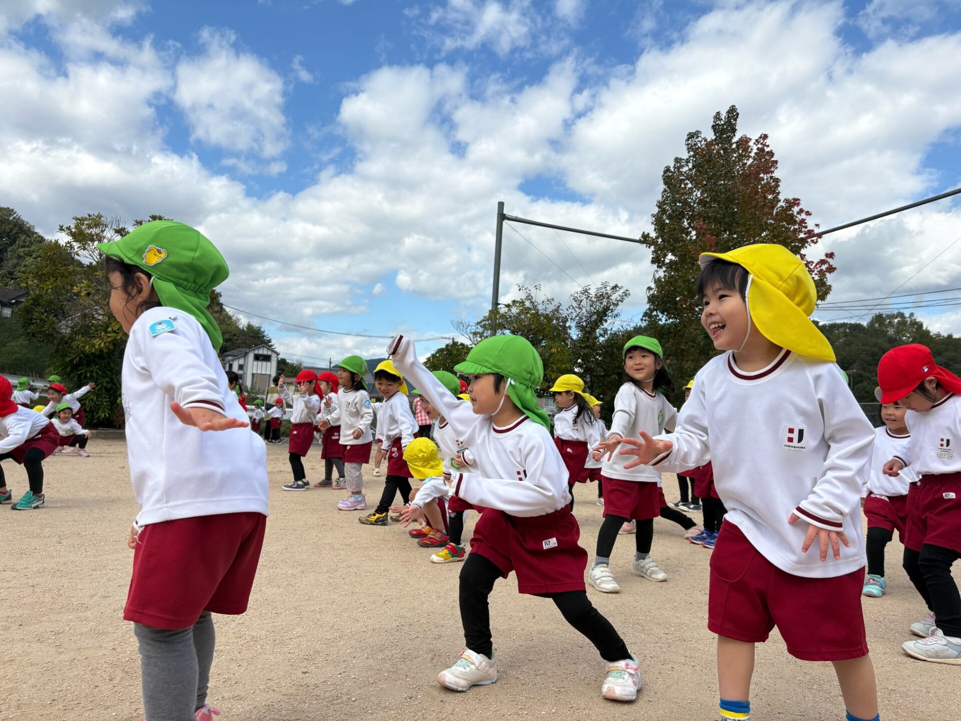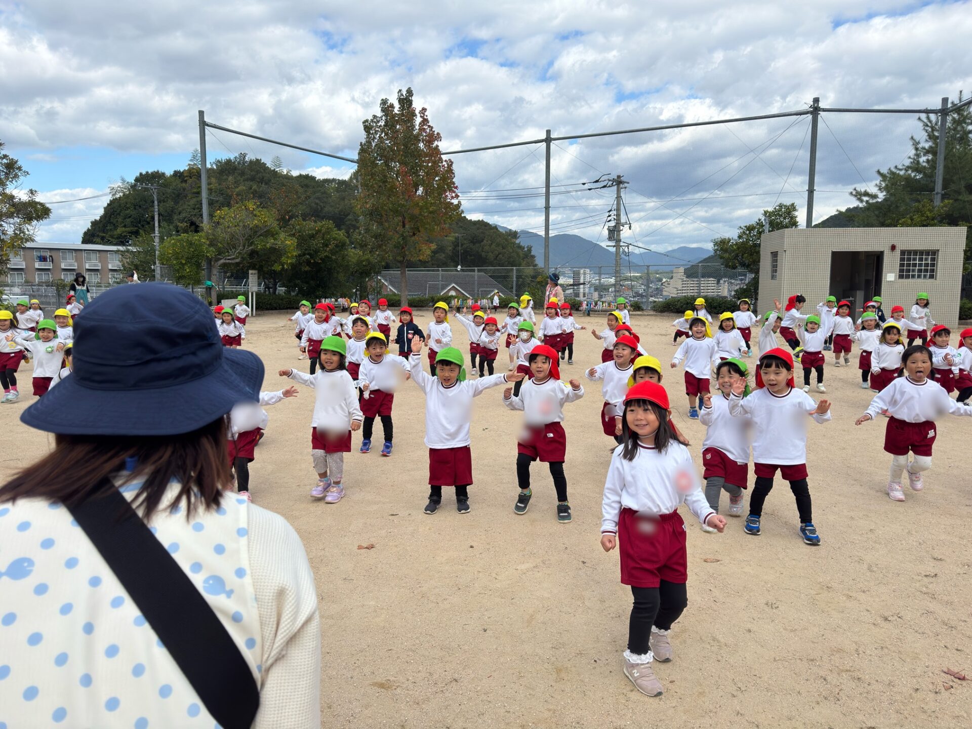 秋らしく涼しい気候になってきたので年少組は散歩へ行きました😊元気よく「行ってきます」と挨拶をしてさっそく出発です!友達と手を繋いで歩きます。歩いていると…木の実を発見したり、地域の方が声をかけてくださったりしました💖公園に行くには長い階段を上らないといけませんが手すりをもって上手にあがることができました!