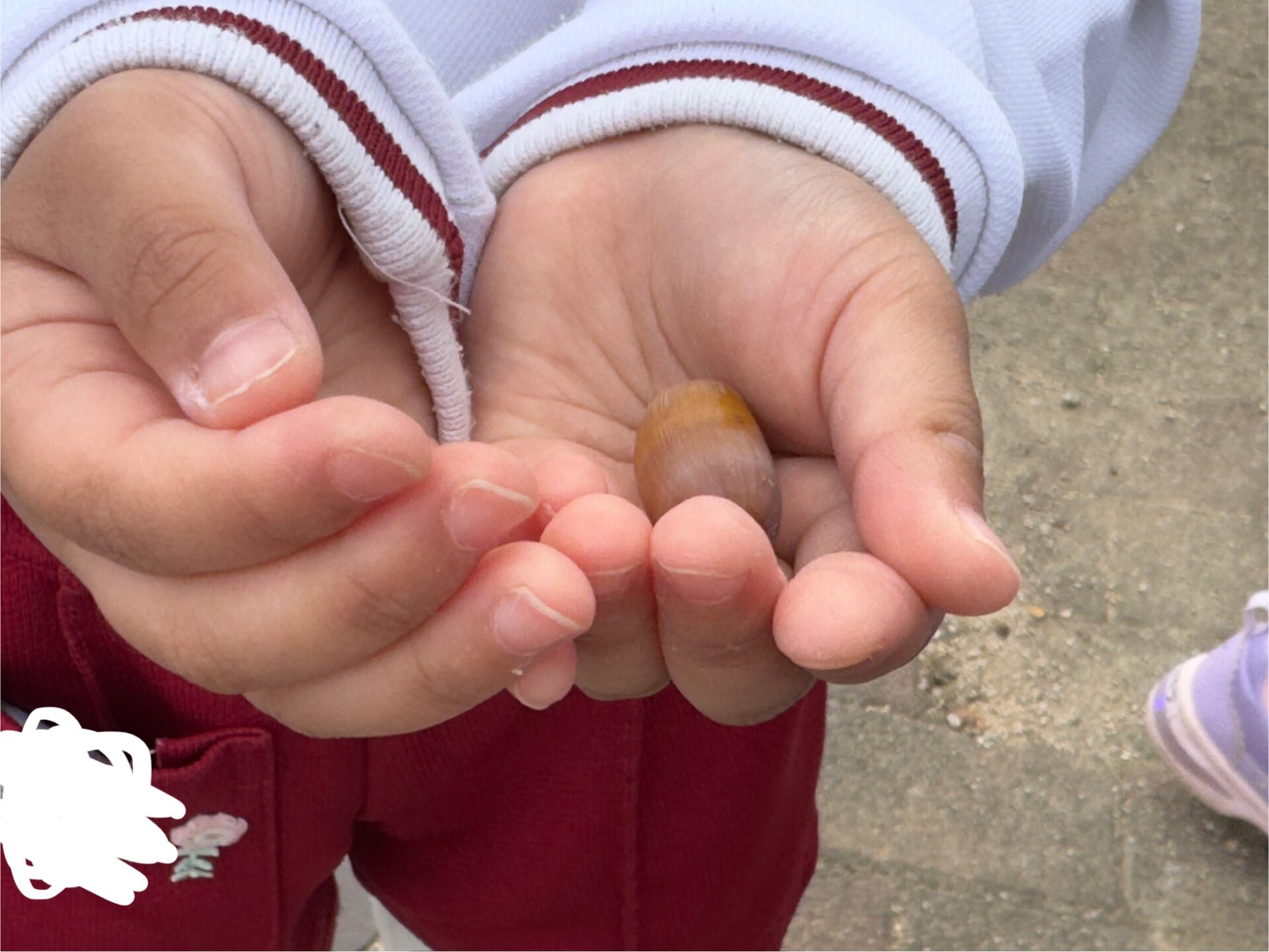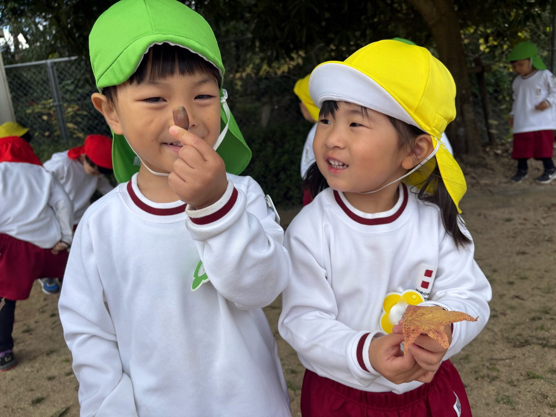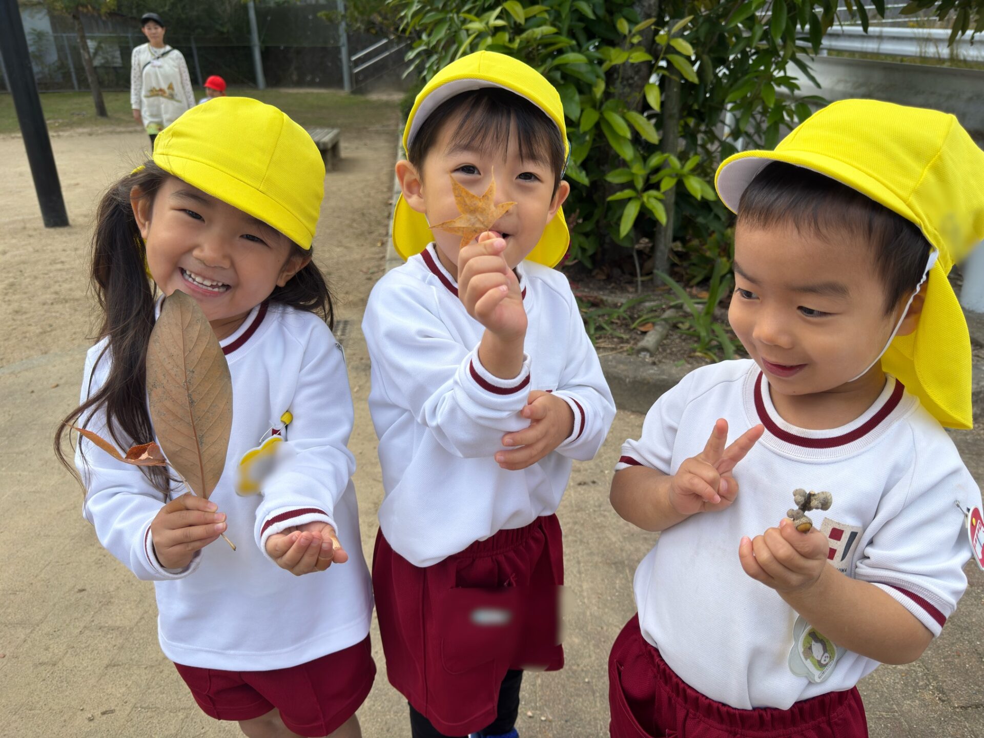 「どんぐりみつけたー!」「葉っぱもあったよ💖」