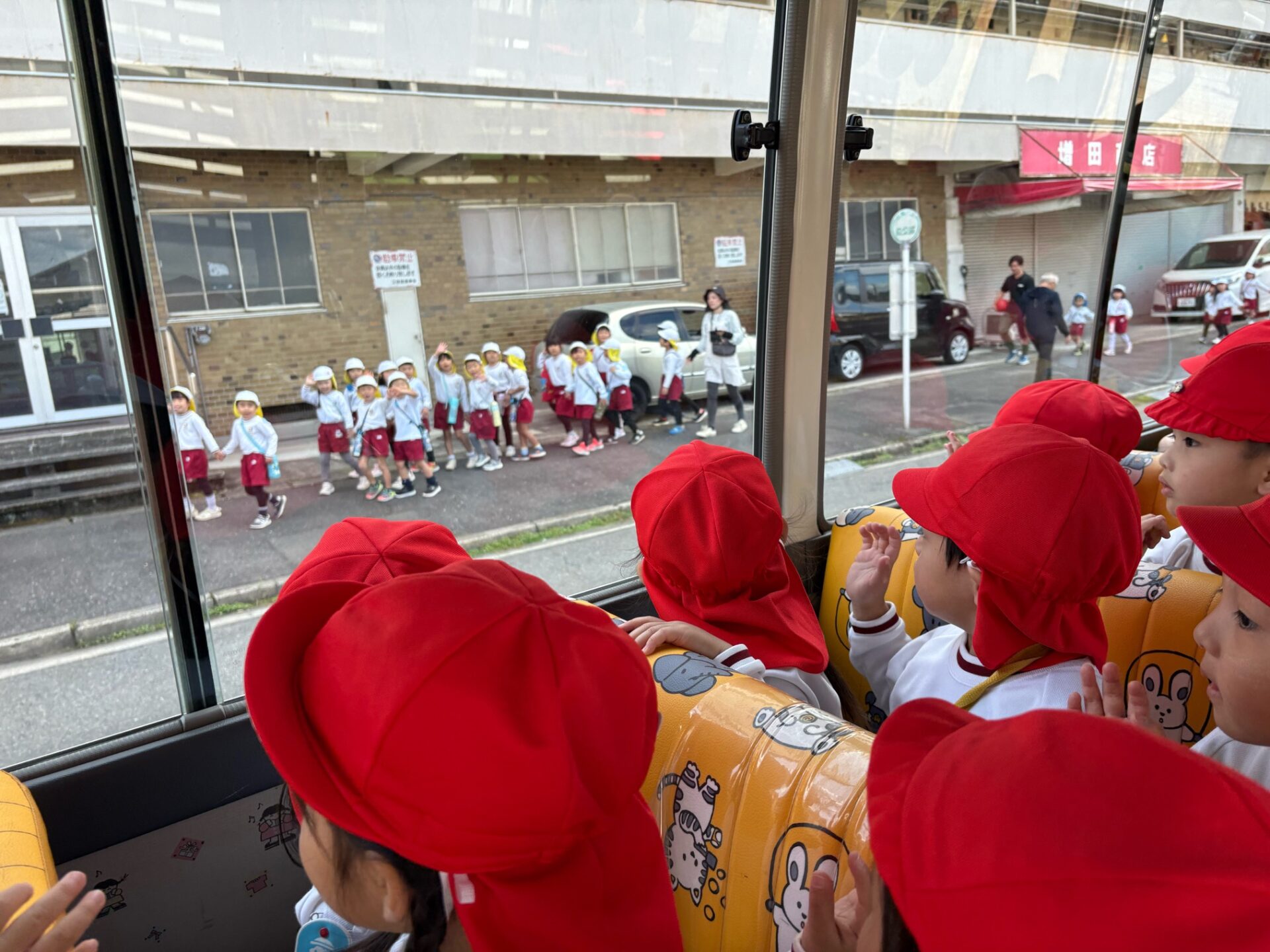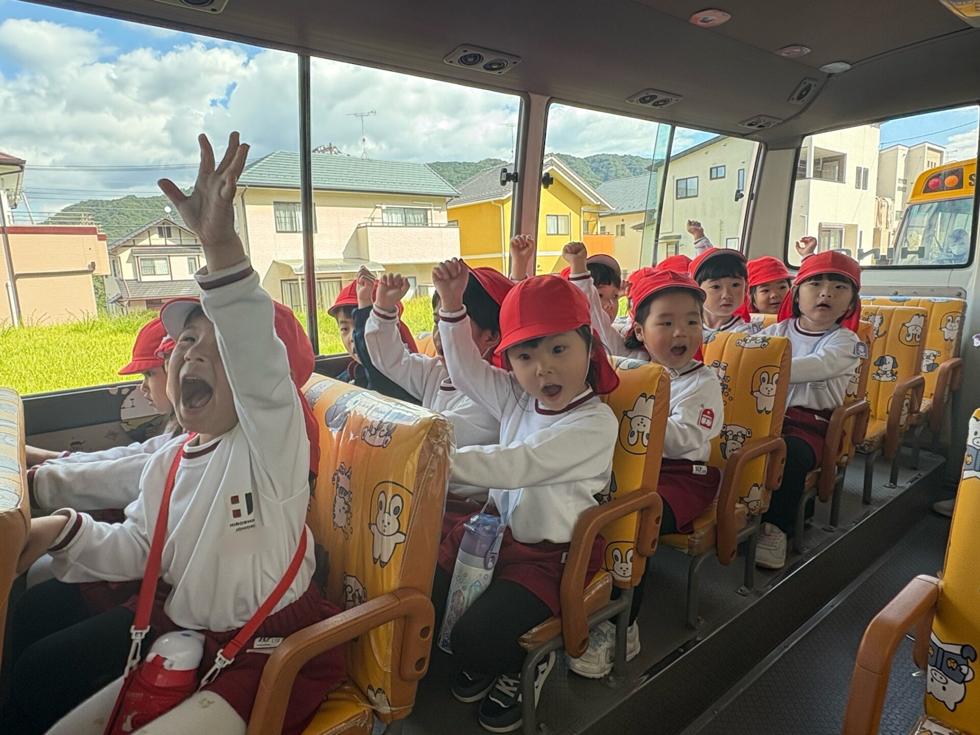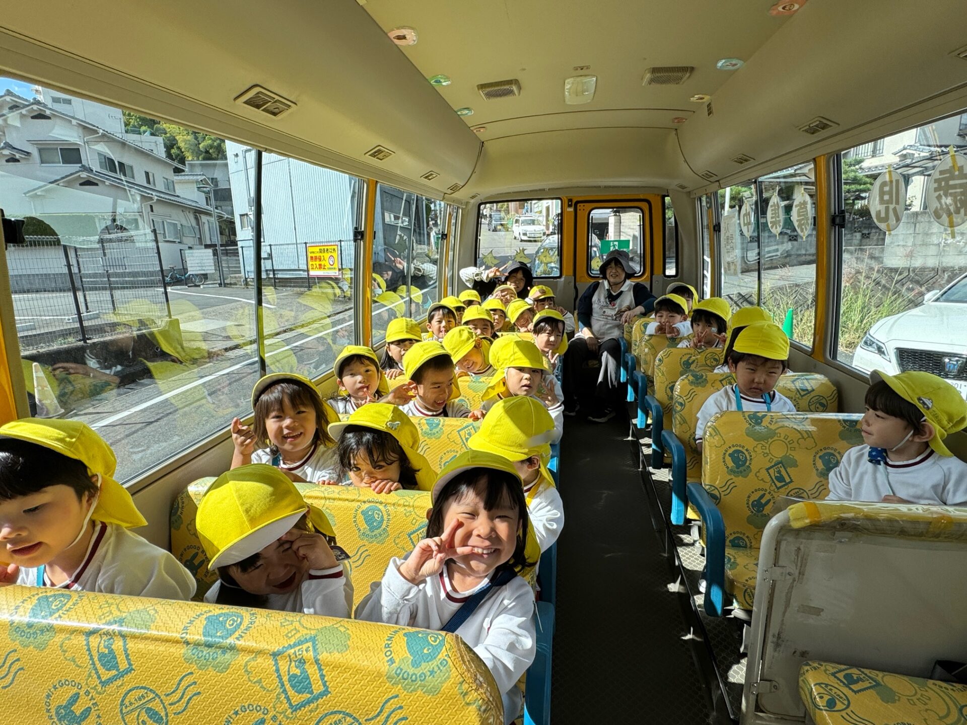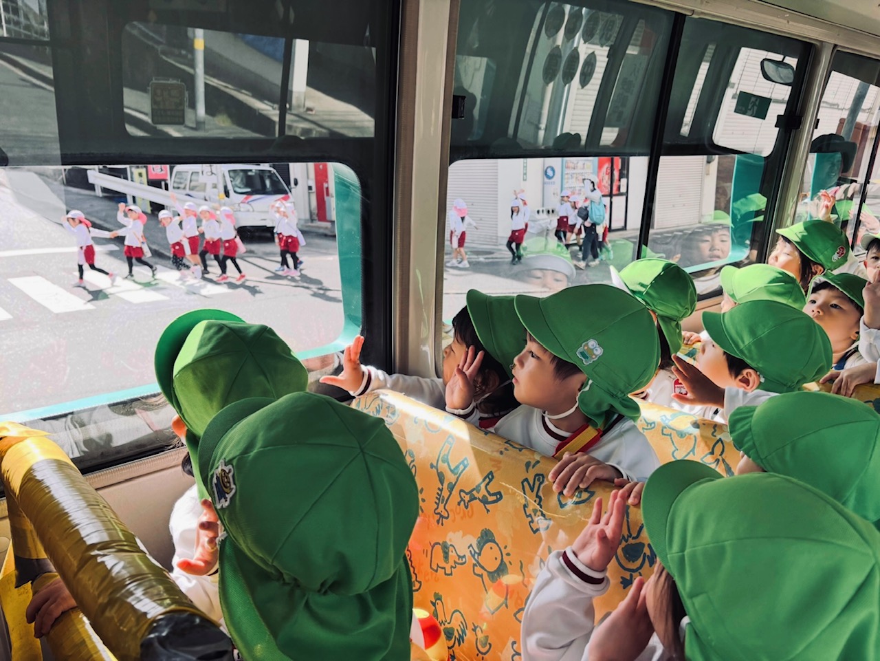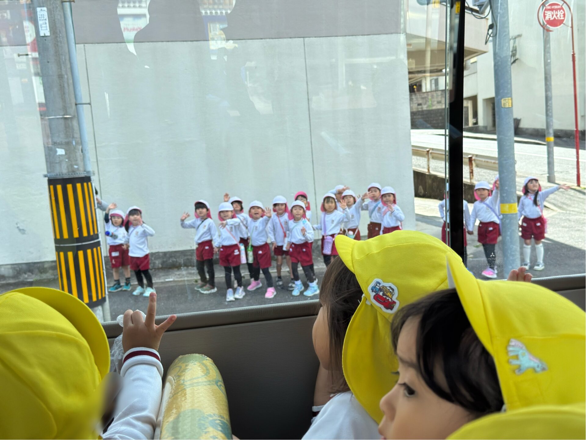 バスの窓から桜が丘公園に散歩に行っていた年長組さんの姿が見えました😲「後で会おうね~💖」と声をかけ手を振る微笑ましい場面も見られました♪
