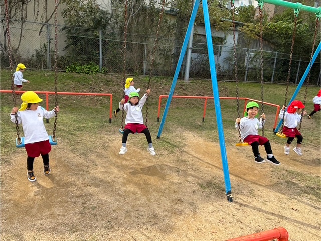 「ブランコたのしいね!」「いーち、にー、さーん・・・ぽーっとなったらかわりましょう♪かーわって」数を数えて交代します。