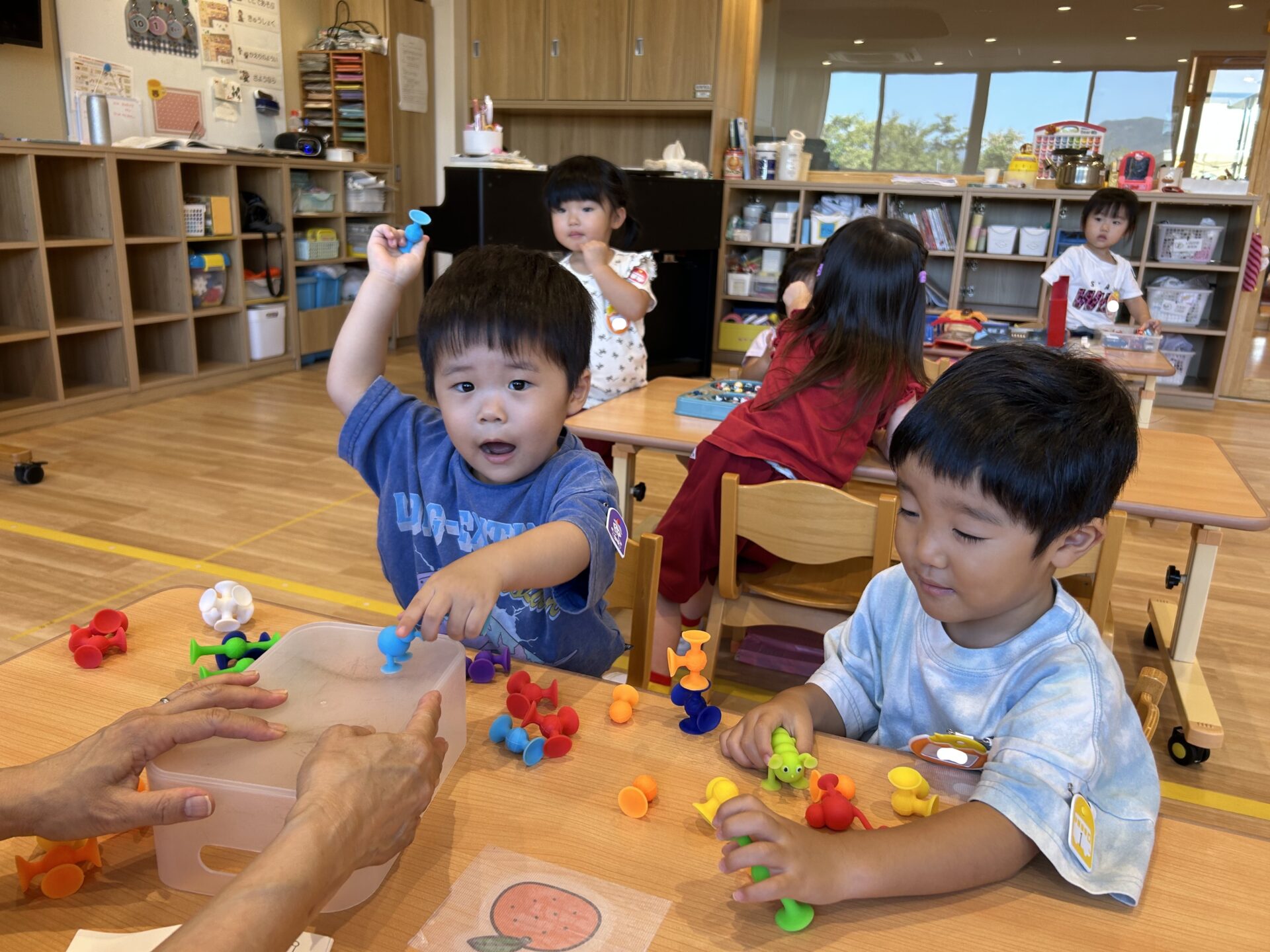 入園おめでとう会の後は、クラスにあるおもちゃで友達と一緒に楽しみました。