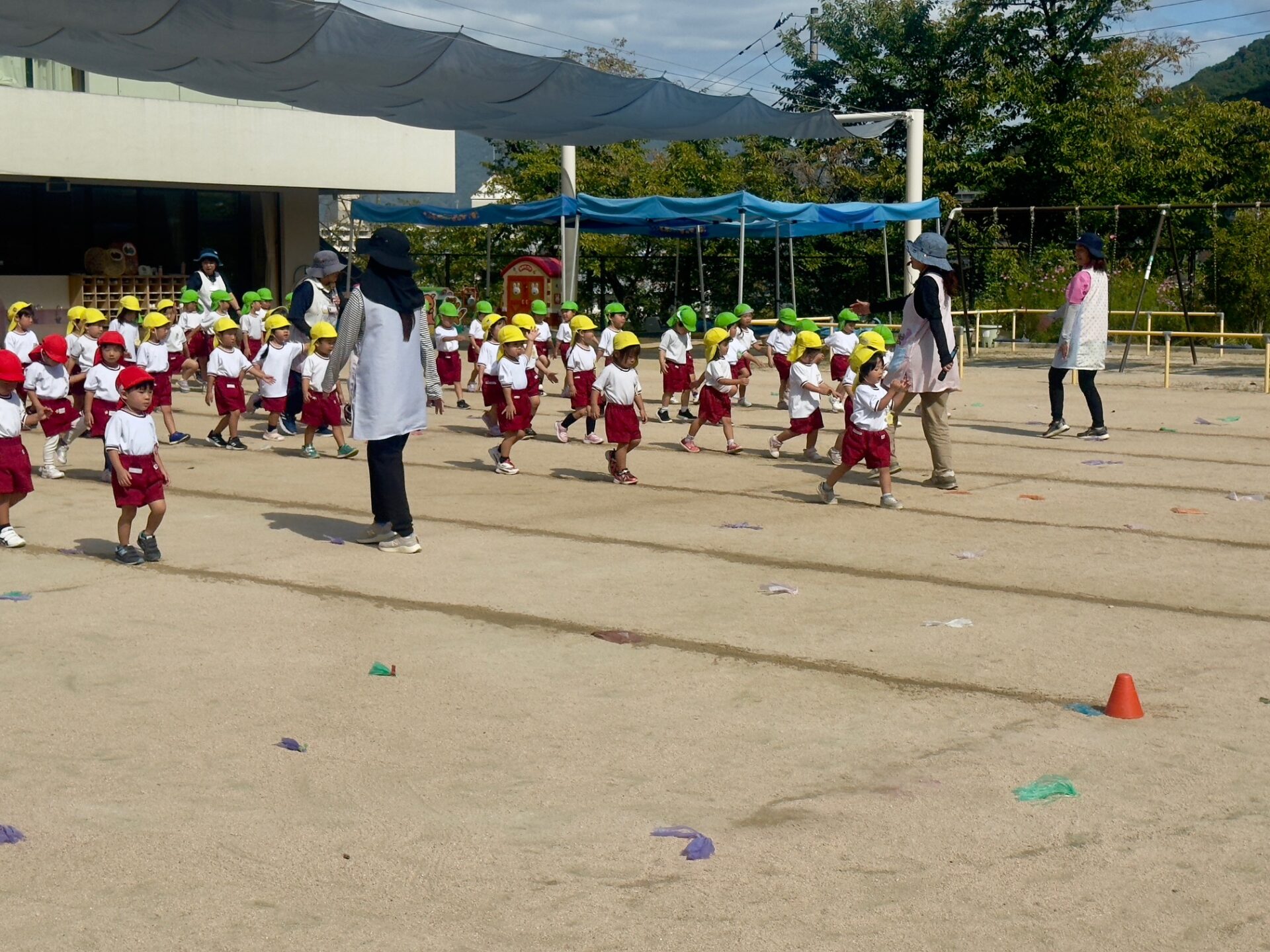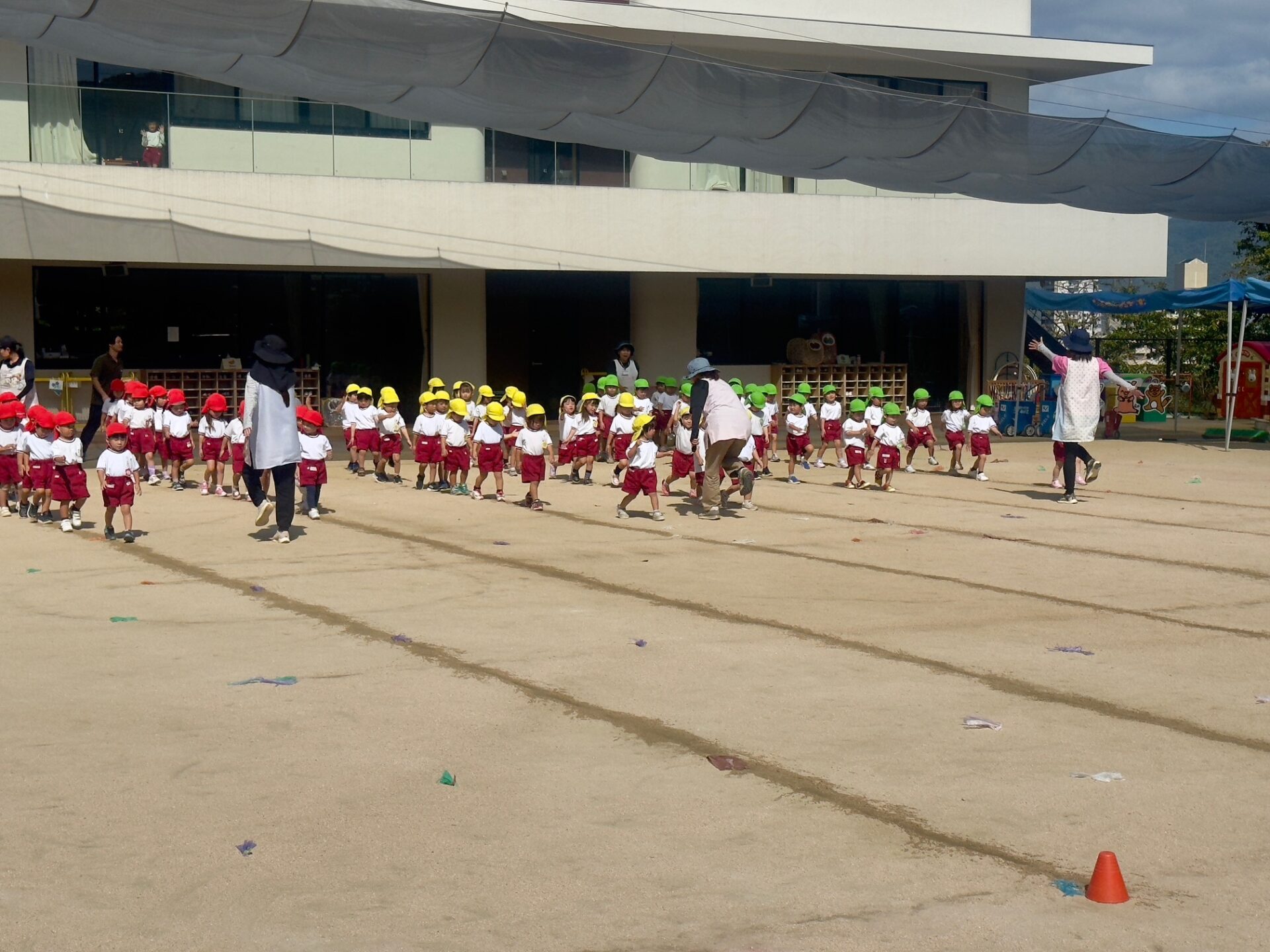 すべての種目をやり終えてみんな汗びっしょり!がんばりました。本番ではおうちの方々に楽しくがんばる姿を見てもらいたいと意欲がさらに高まっている年少組さんです!どうぞお楽しみに♡