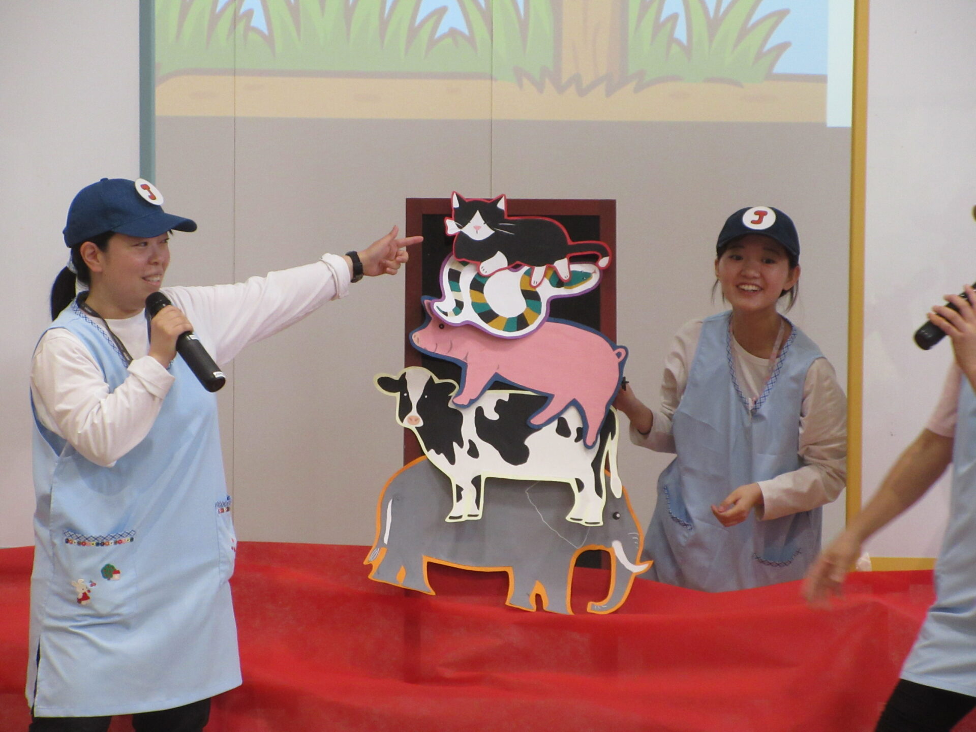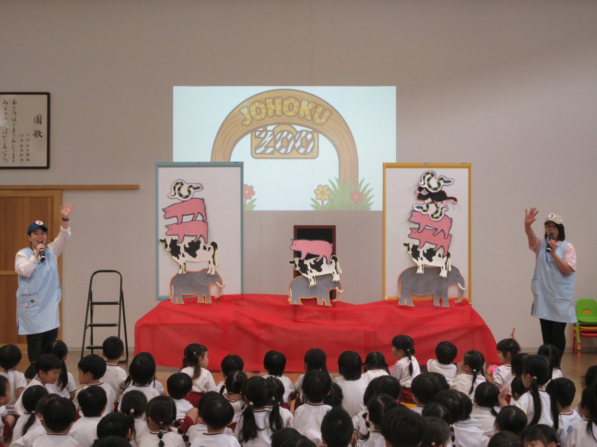 先生たちからのプレゼントの出し物は『へび ねこ ぶた うし ぞう』。