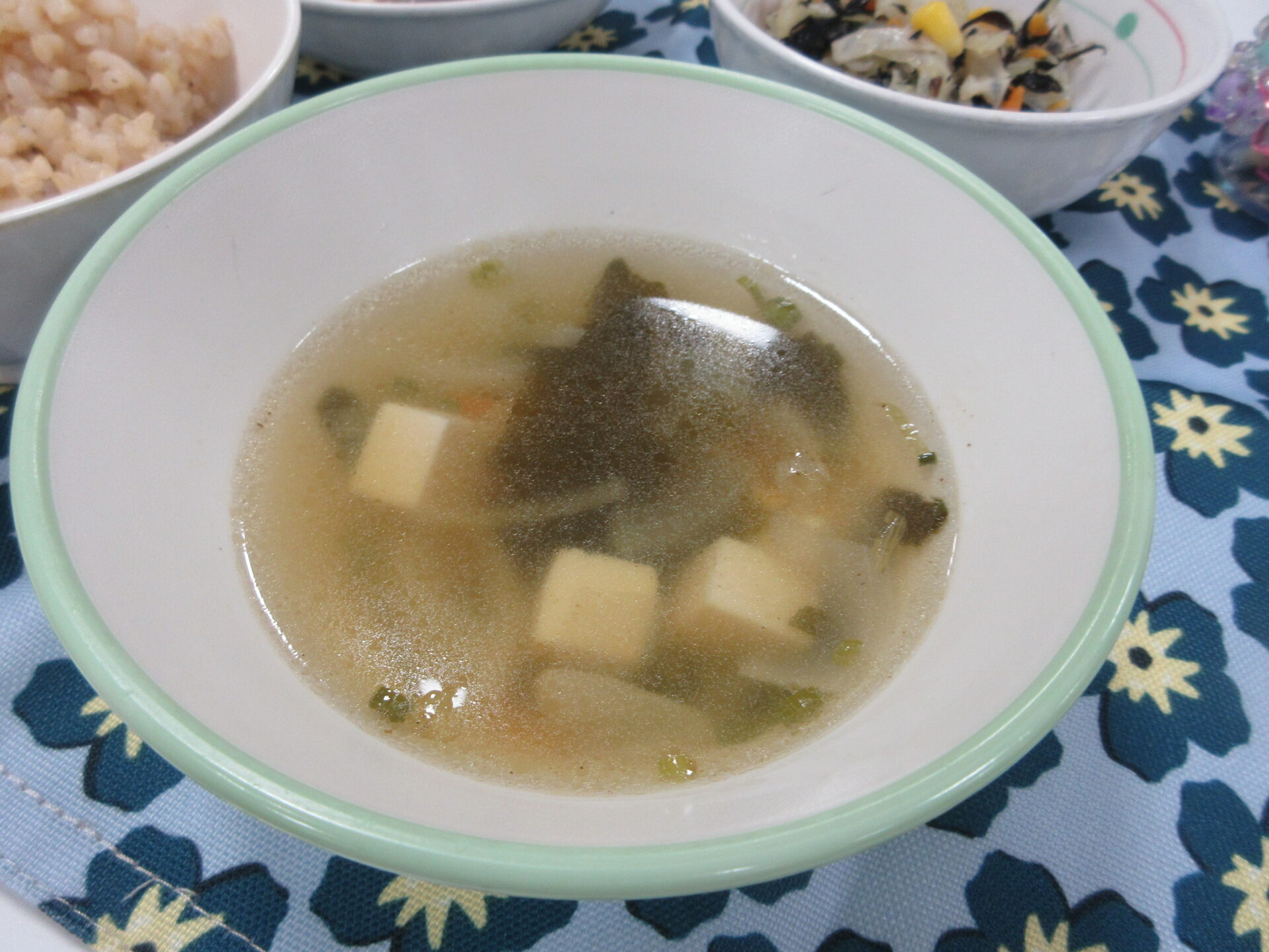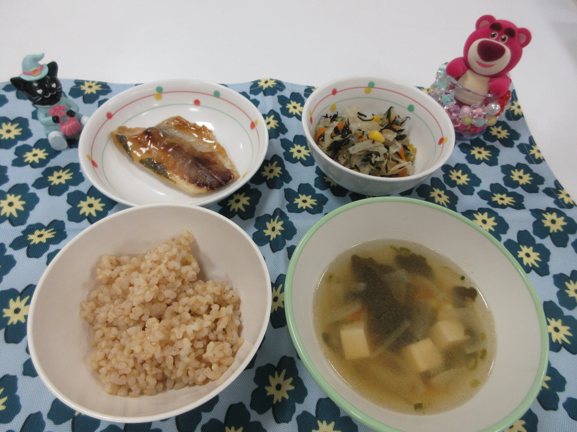 ふっくらと炊けた玄米ご飯と骨なしあじの生姜醤油は良くあいました。海の栄養(ひじきサラダ)と豆腐スープで和食の献立でした。明日の試食会に参加の方よろしくお願いします。