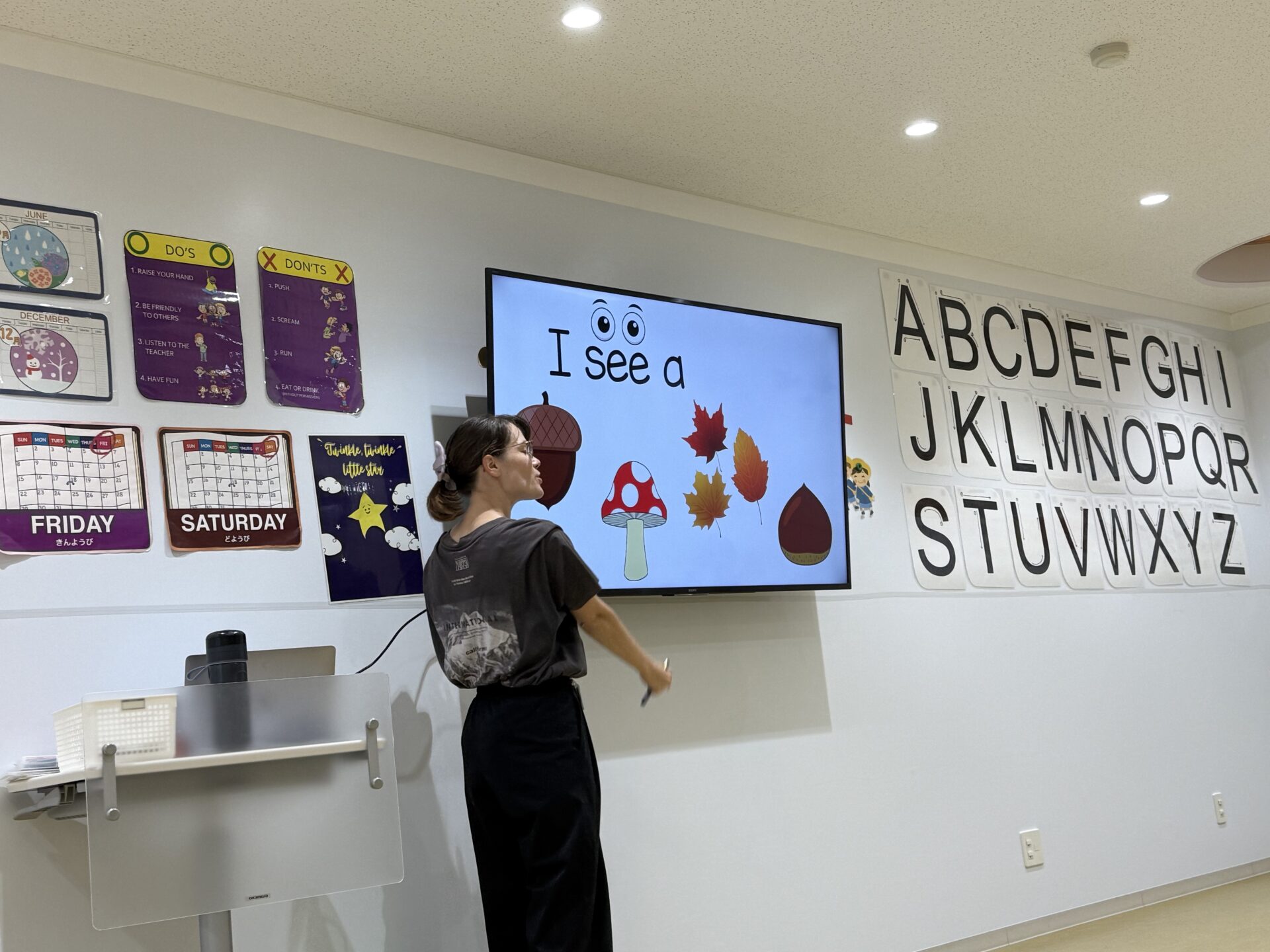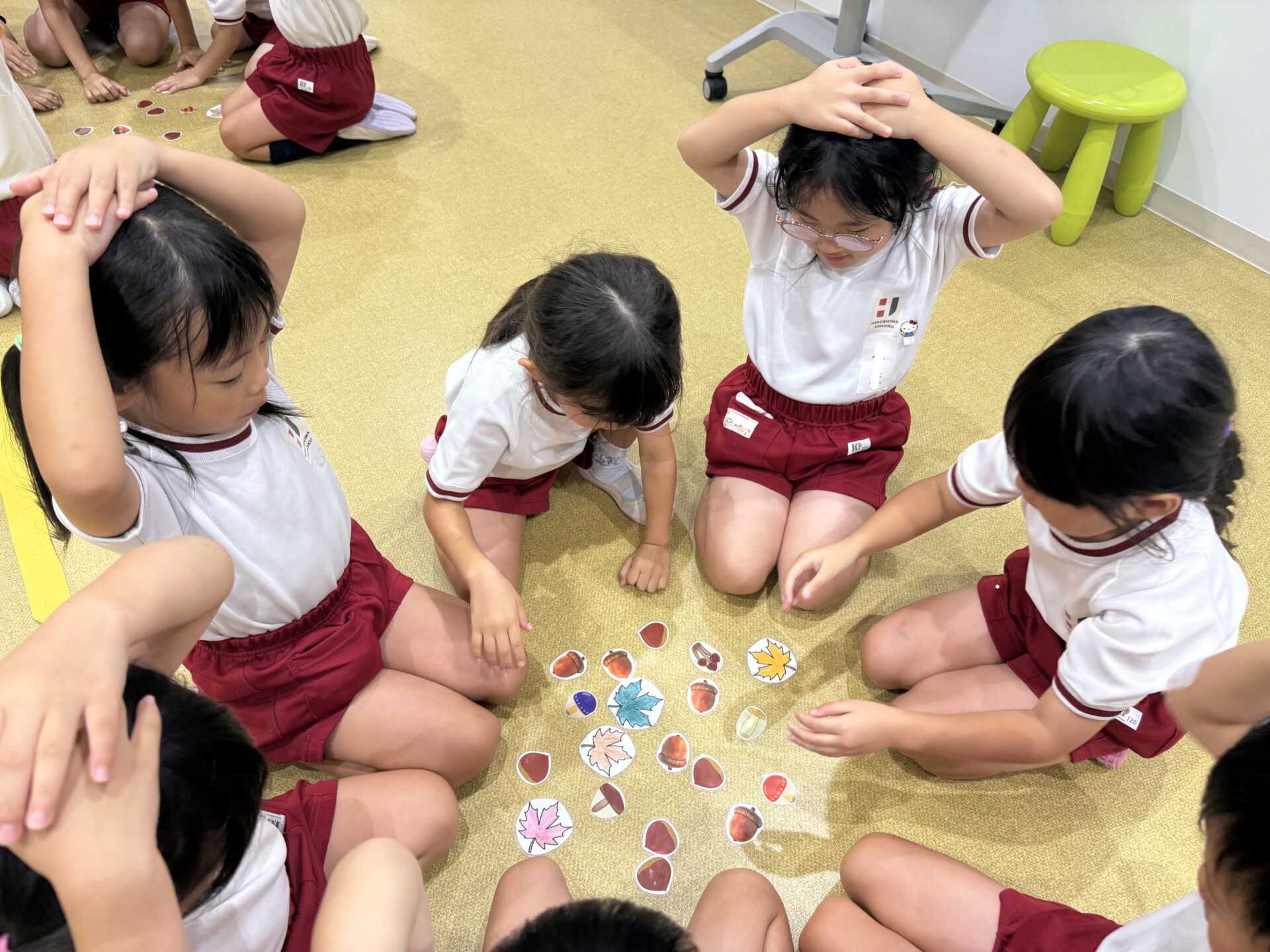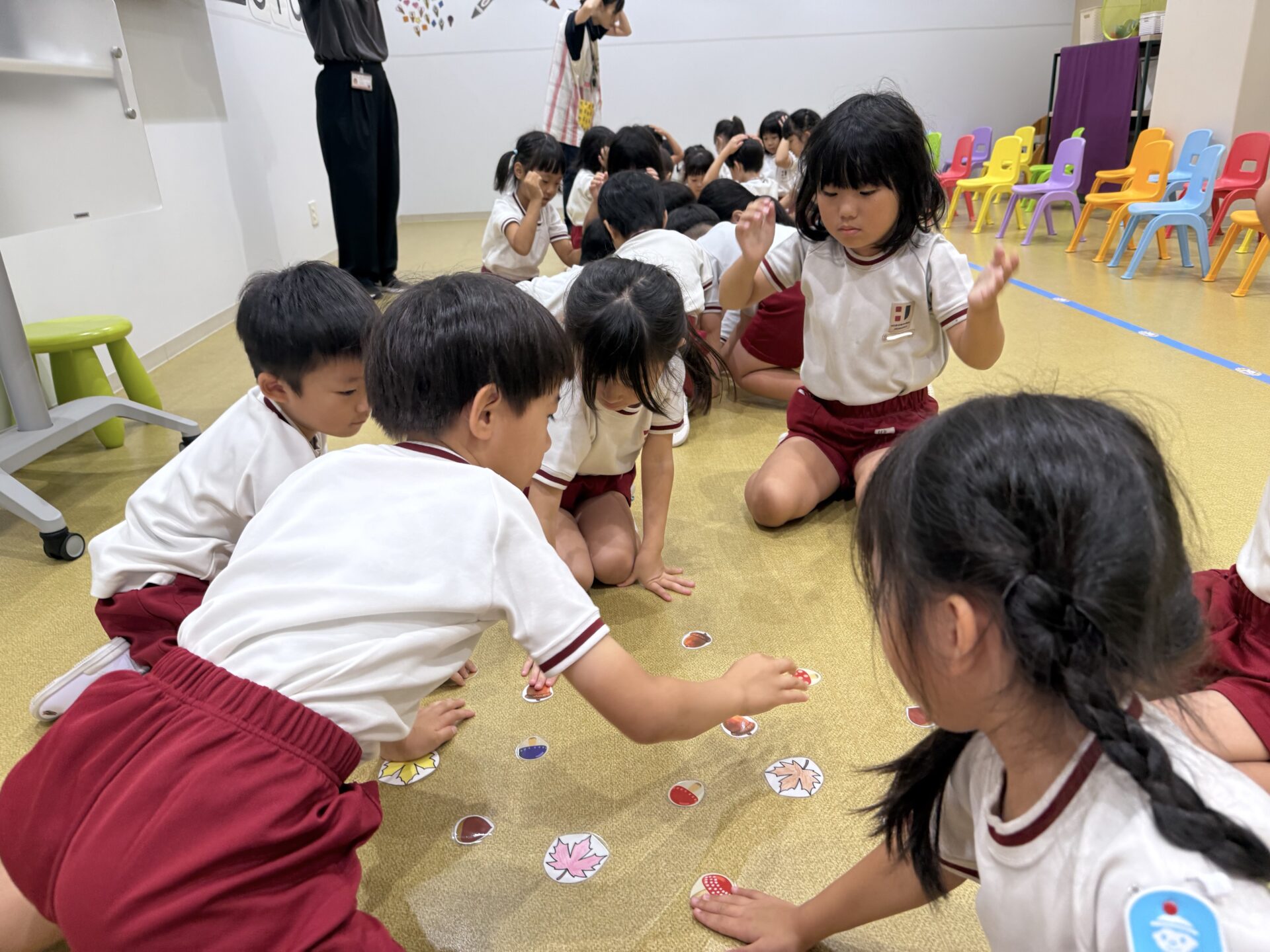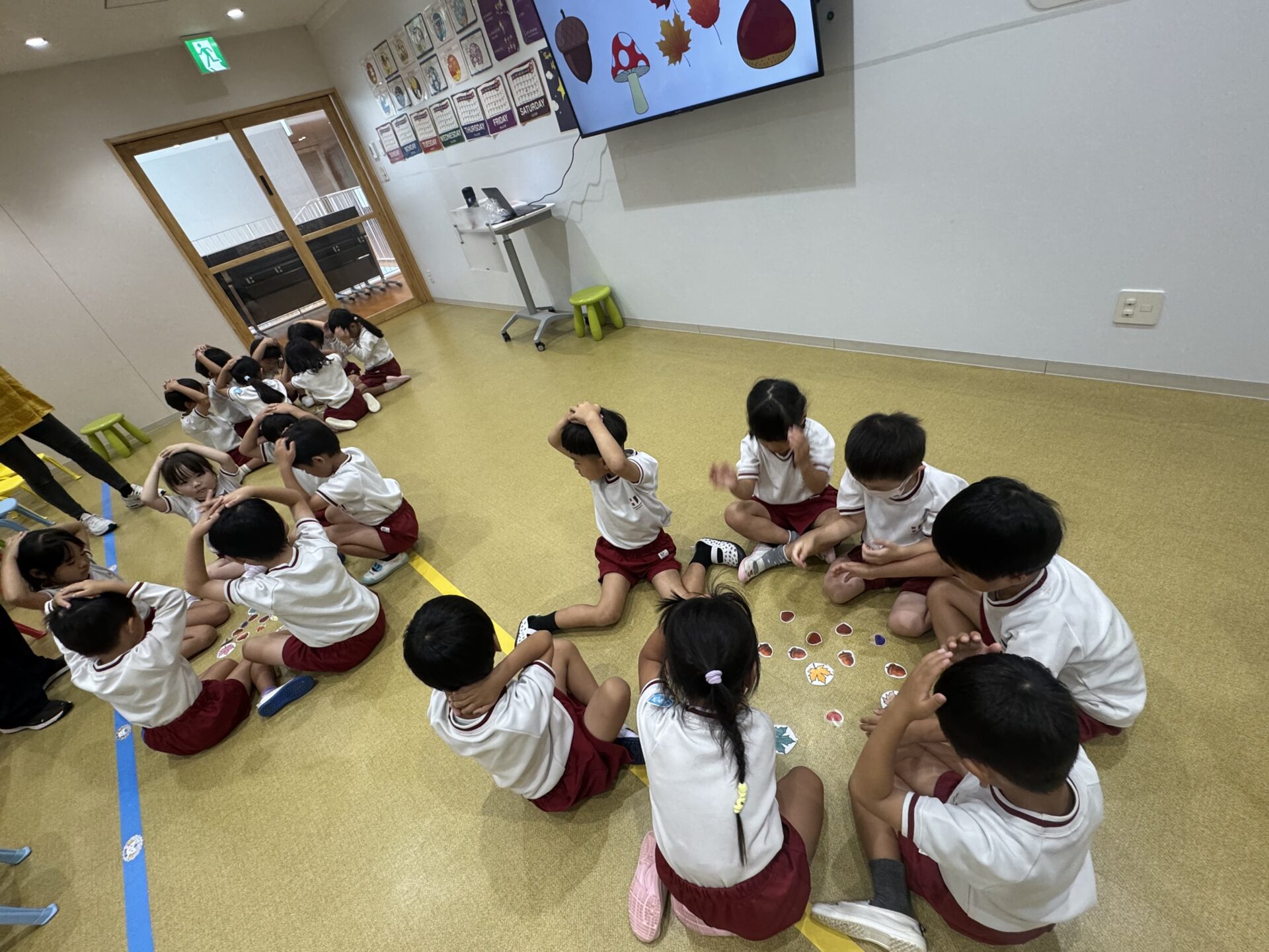 🎃10月になったので、英語遊びでハロウィンのいろいろなアイテムを学んでいますが、今日は年長組さんが「秋さがし」に出かけました!まず「I see a…👀(~が見えるよ)」というフレーズを使って、お部屋の中でいろいろなものを見つけました。そのあと、森に行って、きのこ🍄、はっぱ🍁、どんぐり、くり🌰などを発見しました!秋さがしのあとは、グループに分かれて「秋のかるた」で遊びました♪ でも気をつけて!アリサ先生が、カードにないハロウィンのアイテムを言うことも…! ちょっとしたハロウィントリックで、もっと楽しいゲームになりましたよ👻 次はどんなゲームをするのかな?お楽しみに!