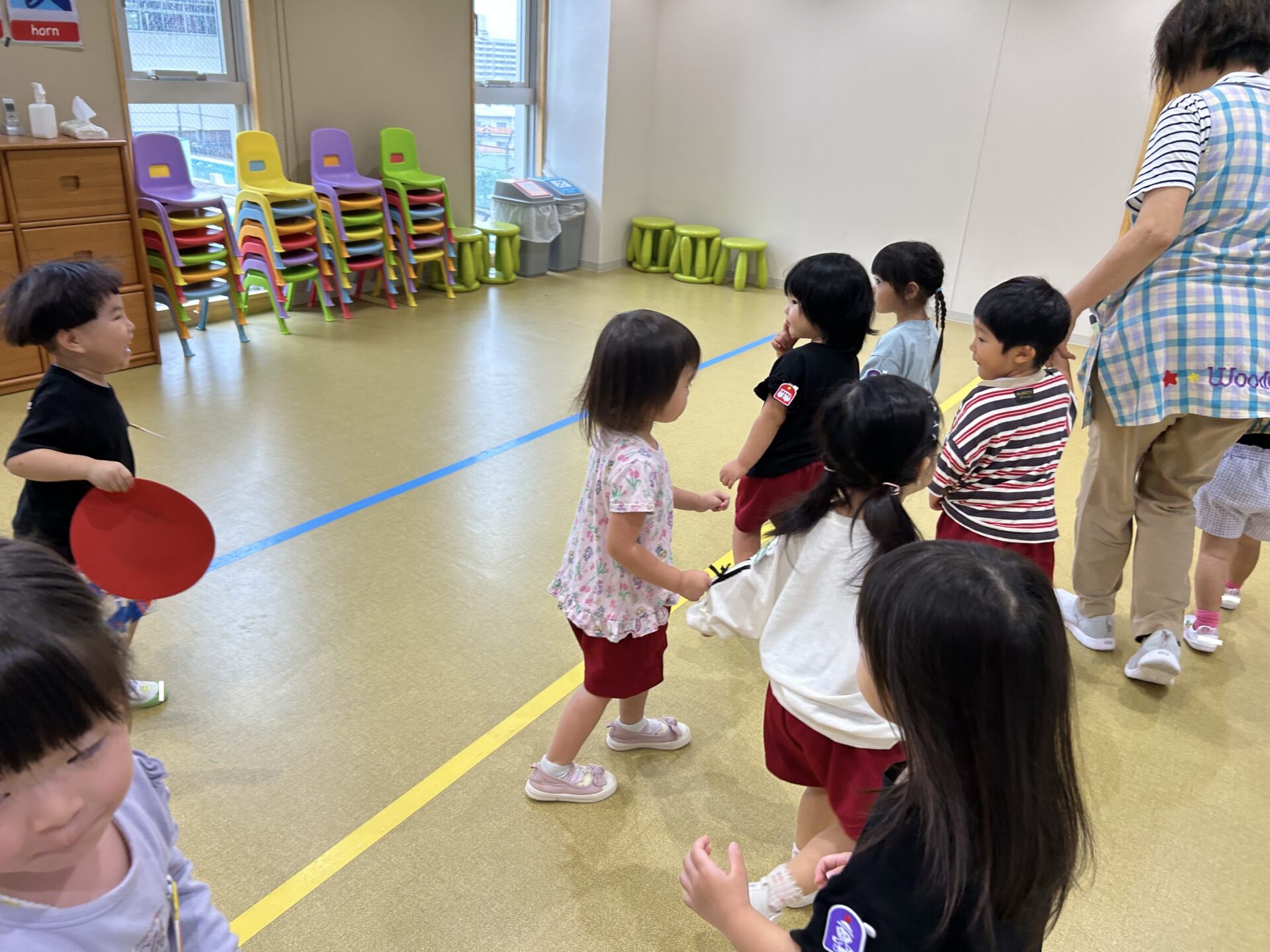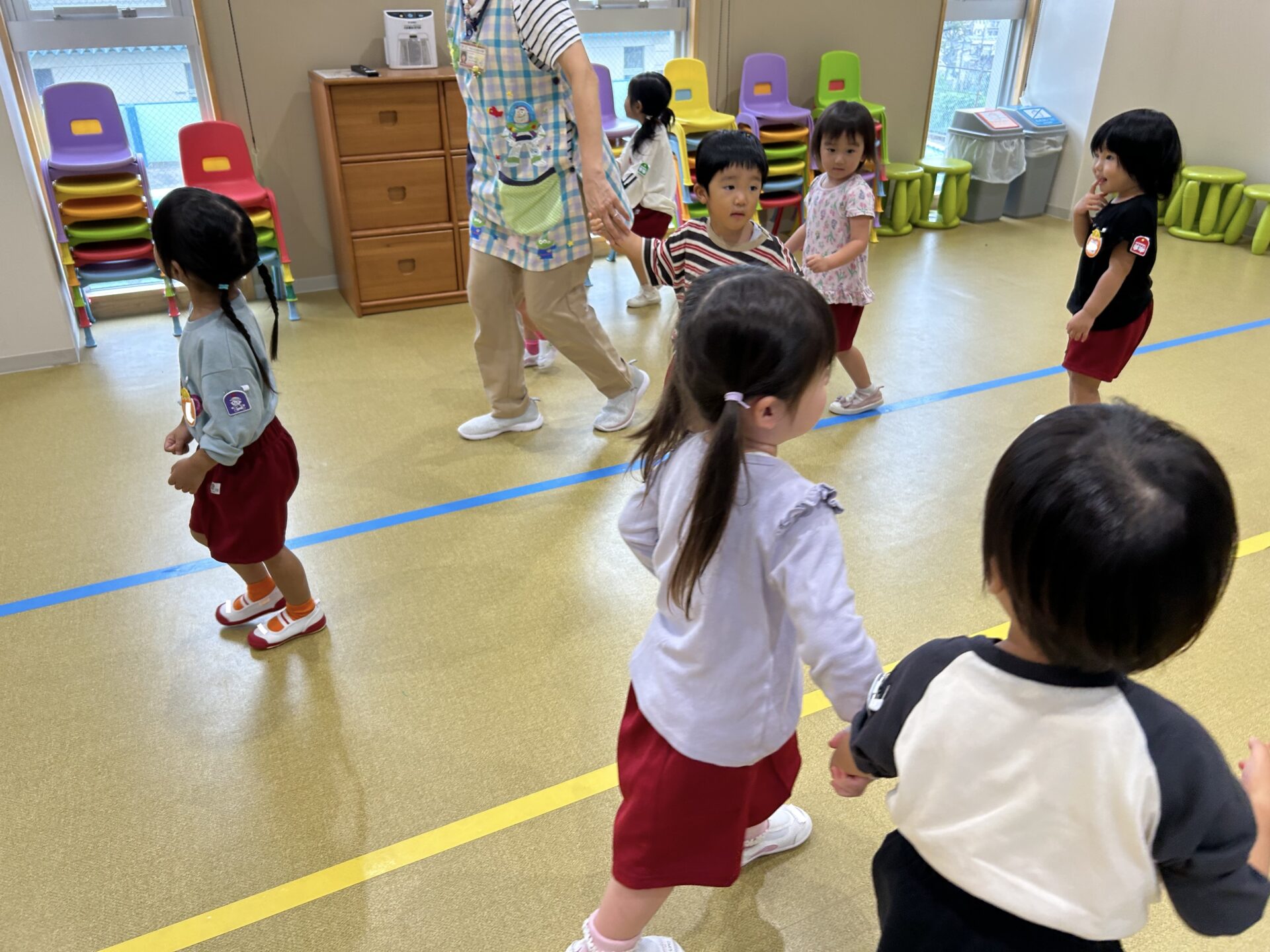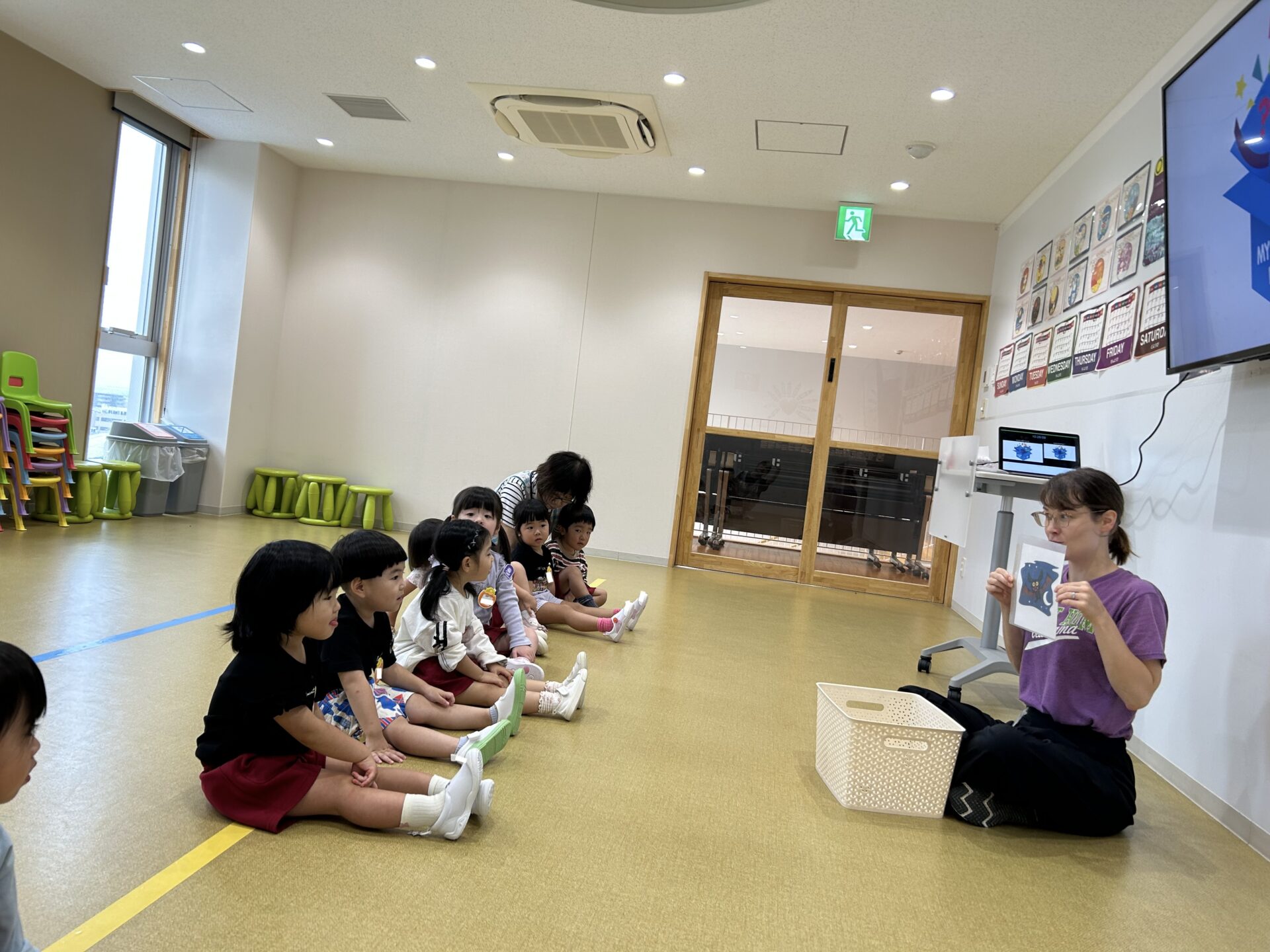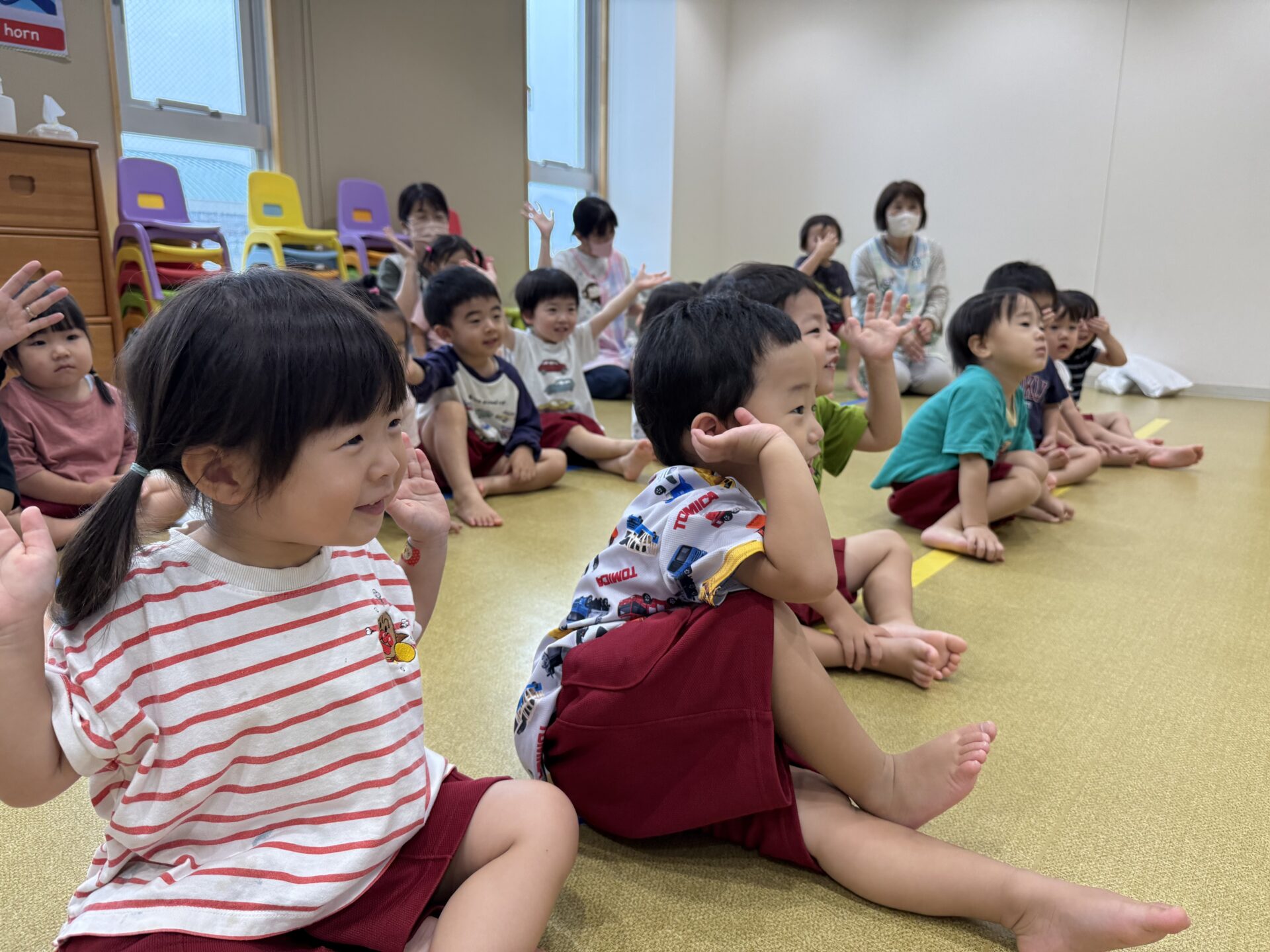 イナイイナイバア!見えるね!小さなお友達がコウモリとゴーストを使ってハロウィンのいないいないばあで遊びに来てくれました。お菓子も用意されていました!音楽が流れてみんな立ち上がって歩き回りましたが、音楽が止まるとゴーストが現れました!みんなゴーストが来る前にお菓子を取りに行っていました。本当に元気いっぱいの時間でした。また遊びに来てね!英語あそびはいつも楽しいですよ。
