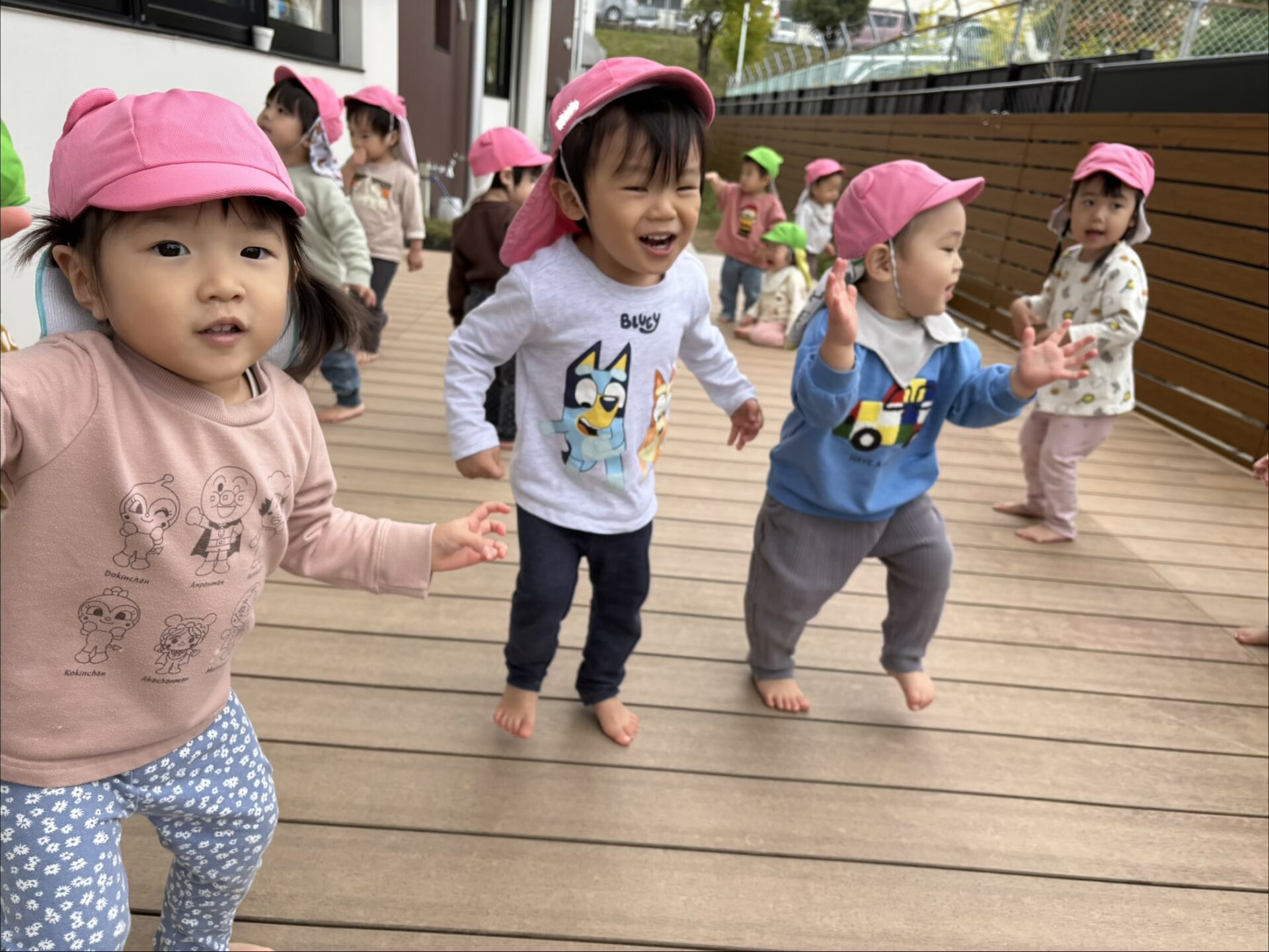 ウッドデッキでは、運動遊びや体操をして身体をたくさん使って遊びました☆また…明日も遊ぼうね🩷💚