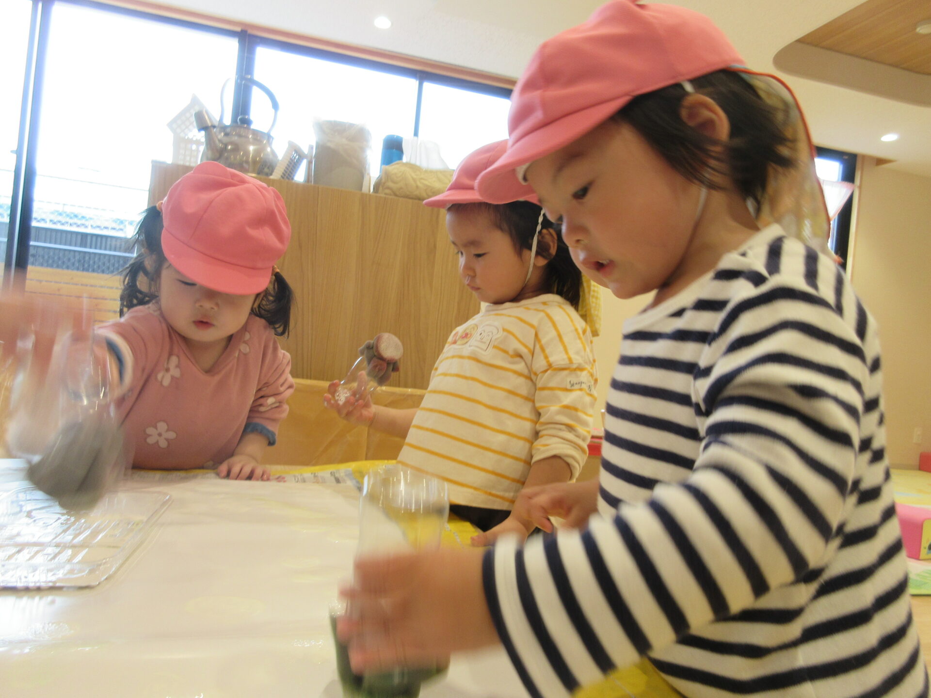「わぁ~上手だね👏」保育教諭の声が響きます👂絵の具をたんぽに付けて「とんとんとん」と画用紙の上に乗せていきます🖌何度かやったことがあるので今回は、再チャレンジです✨Squirrel組も“やりたい~”アピール全開です🐿♡