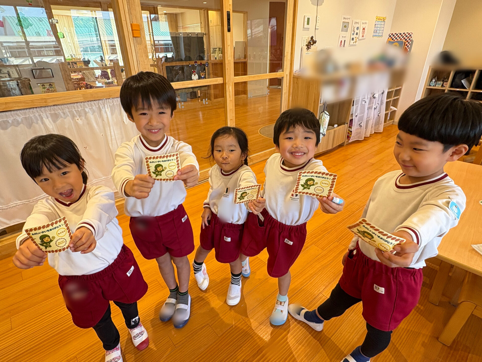 グリーンレンジャー💚から「誕生日会」を開催してくれた年中さんへ「もぐもぐカード」 のプレゼントがありました。