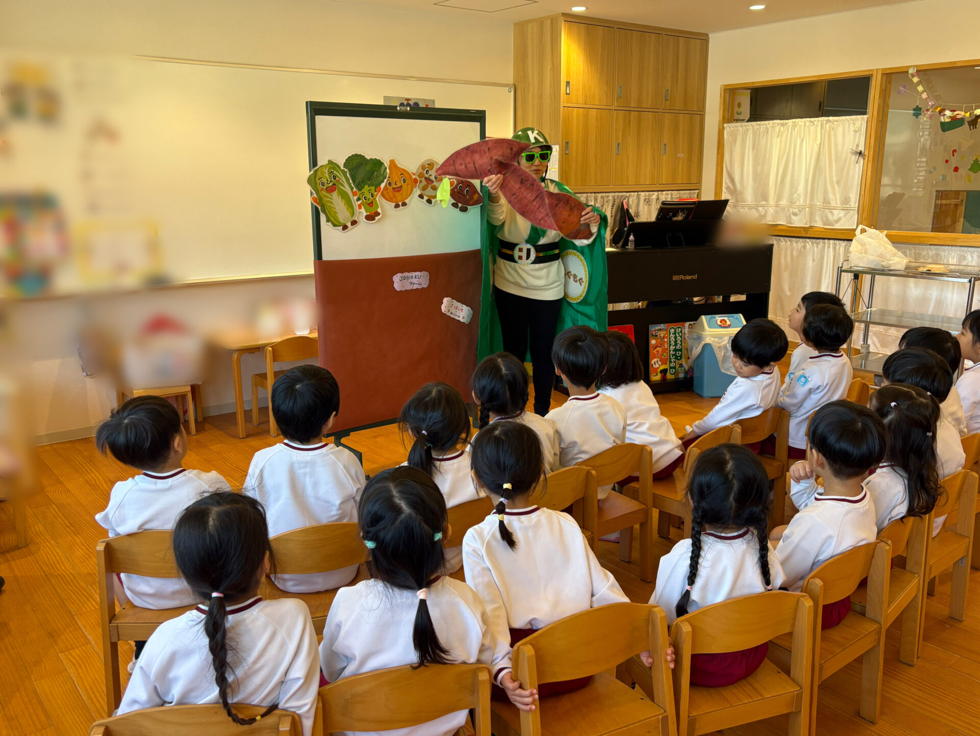 食育戦隊!グリーンレンジャーが登場すると園児は大喜び!