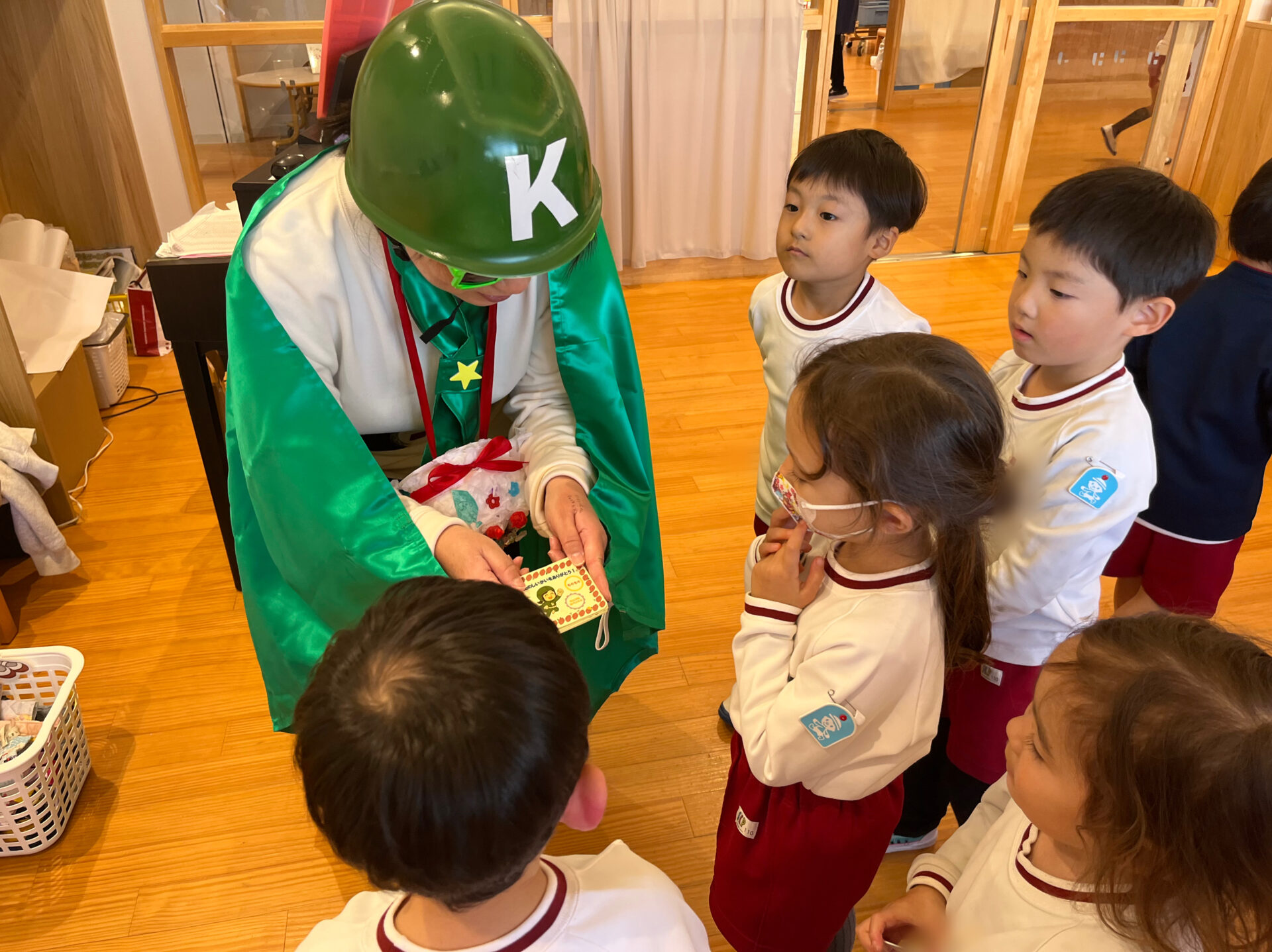 グリーンレンジャー💚から「誕生日会」を開催してくれた年中さんへ「もぐもぐカード」 のプレゼントがありました。