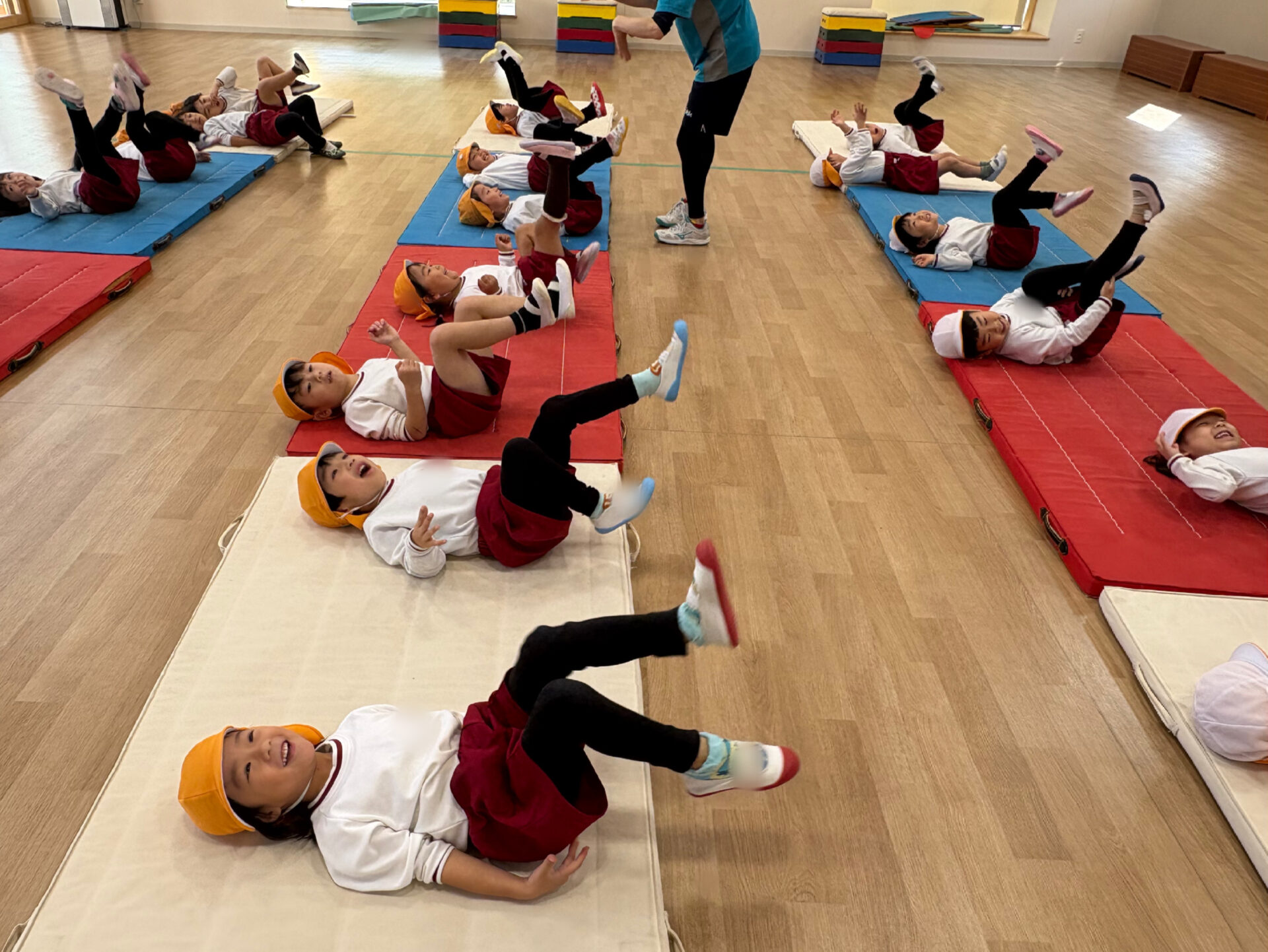 元気な挨拶と音楽に合わせた楽しい柔軟からスタートです。先生の話をよく聞いて、体を動かすことが出来ていました💪