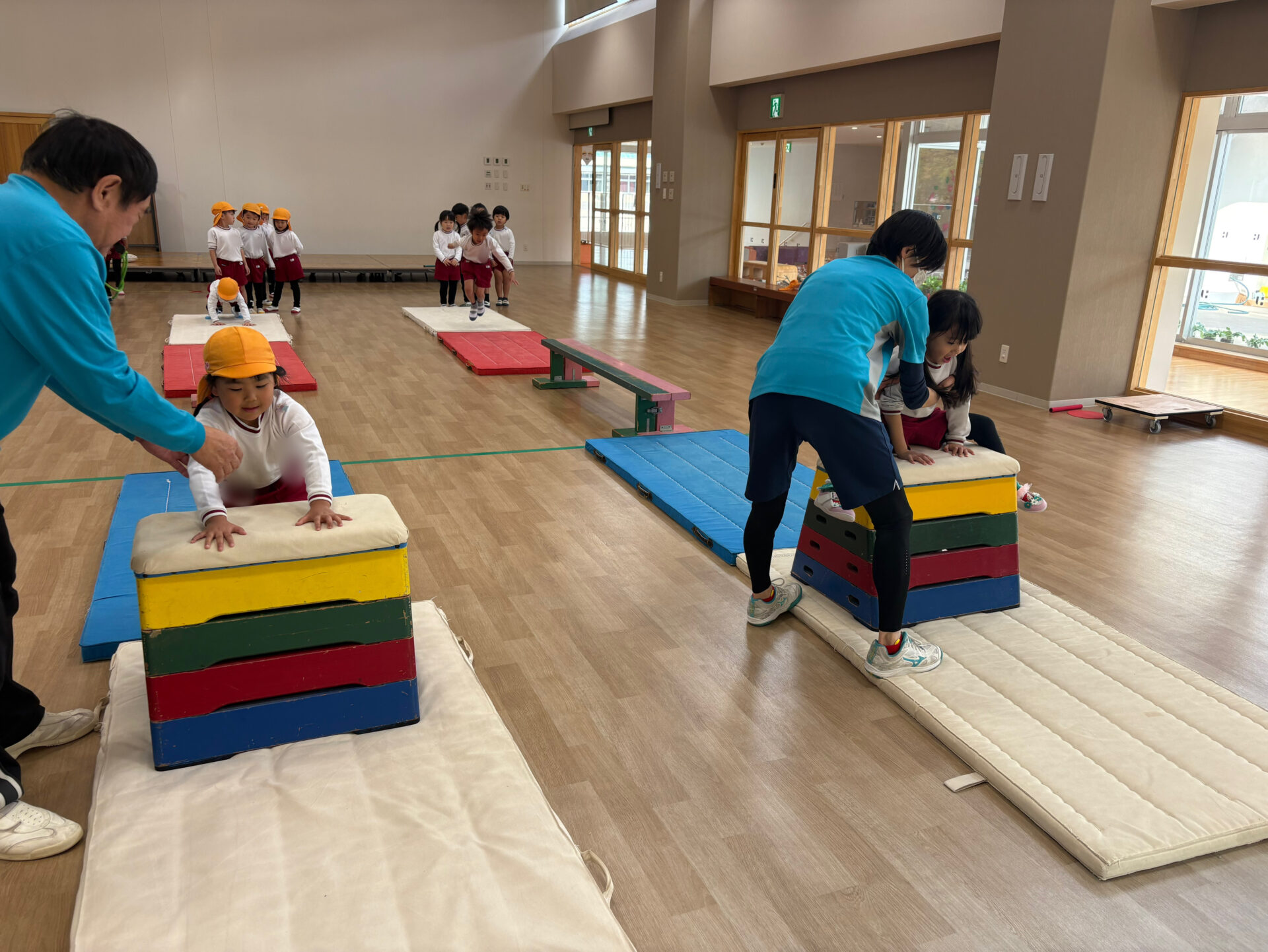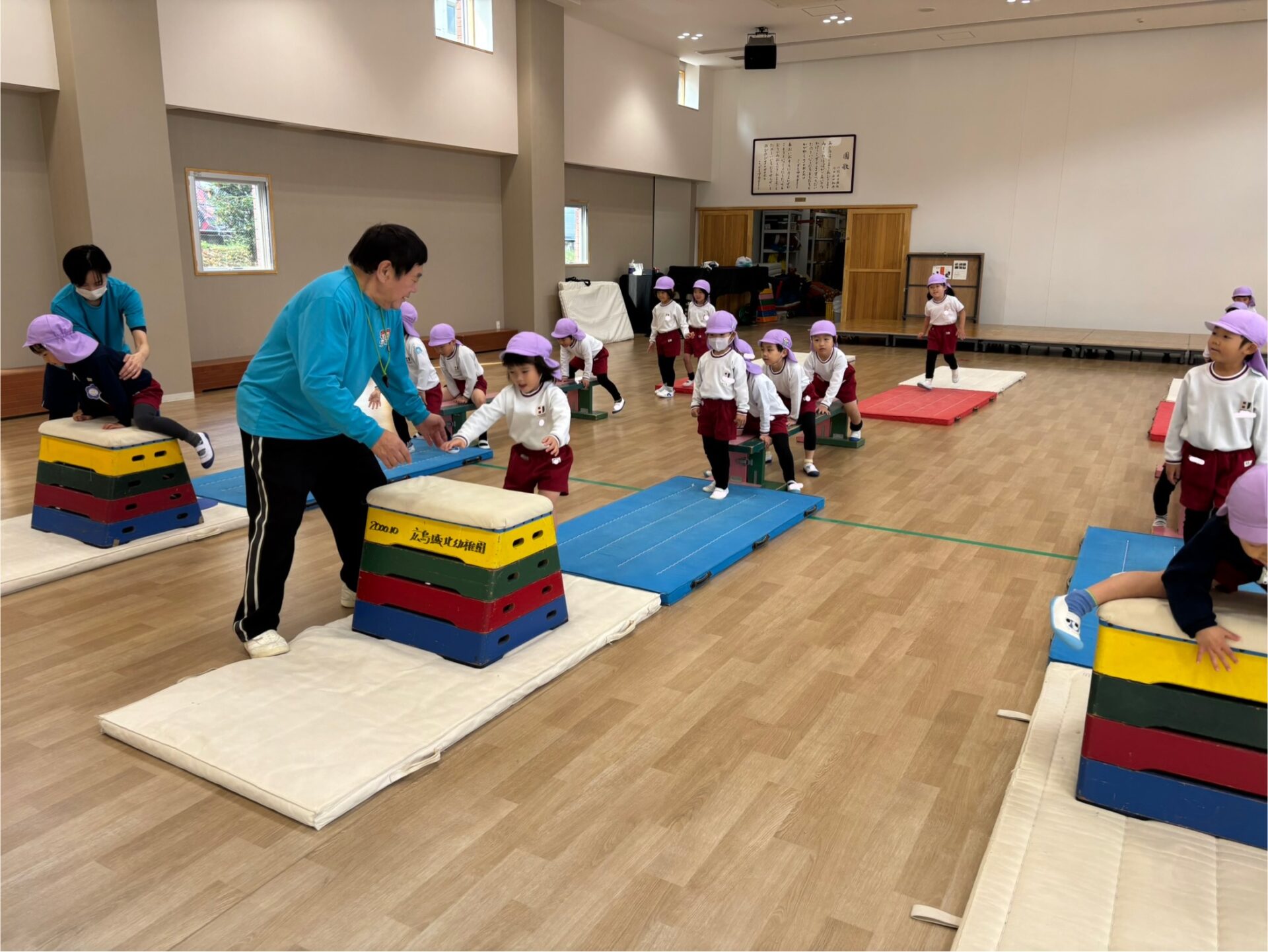 実際に跳び箱を前にすると少し緊張気味でしたが、ポイントをおさえながら楽しく跳ぶことが出来ました。