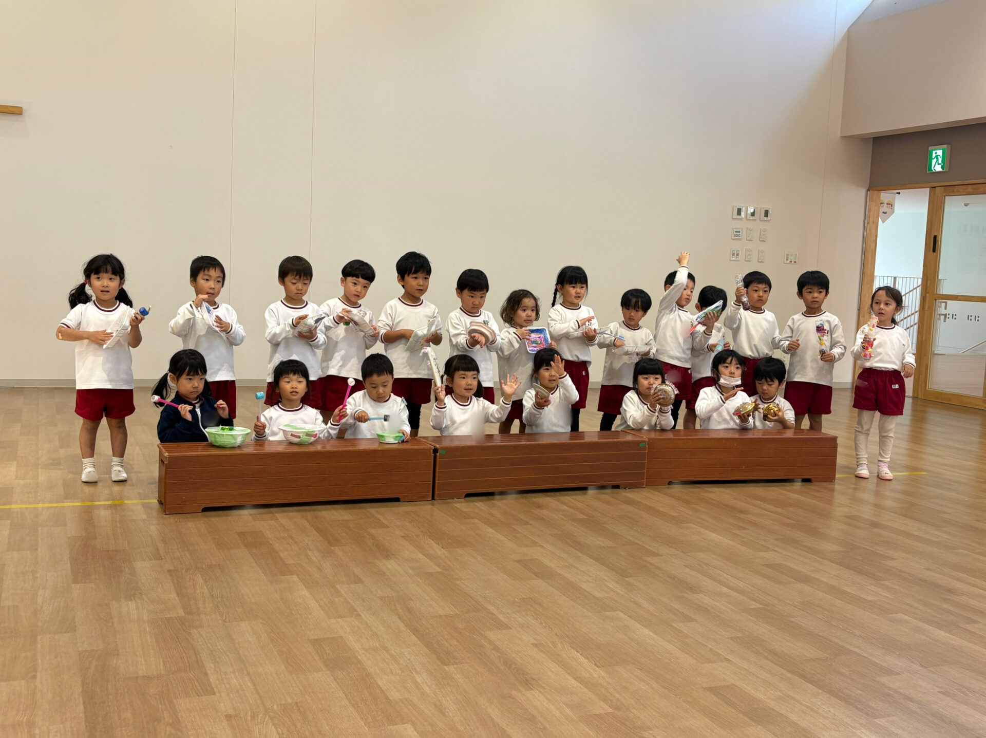 世界にひとつだけの素敵な楽器での演奏でした!次はいよいよ✨園の楽器を使って演奏してみましょう😊🎵
