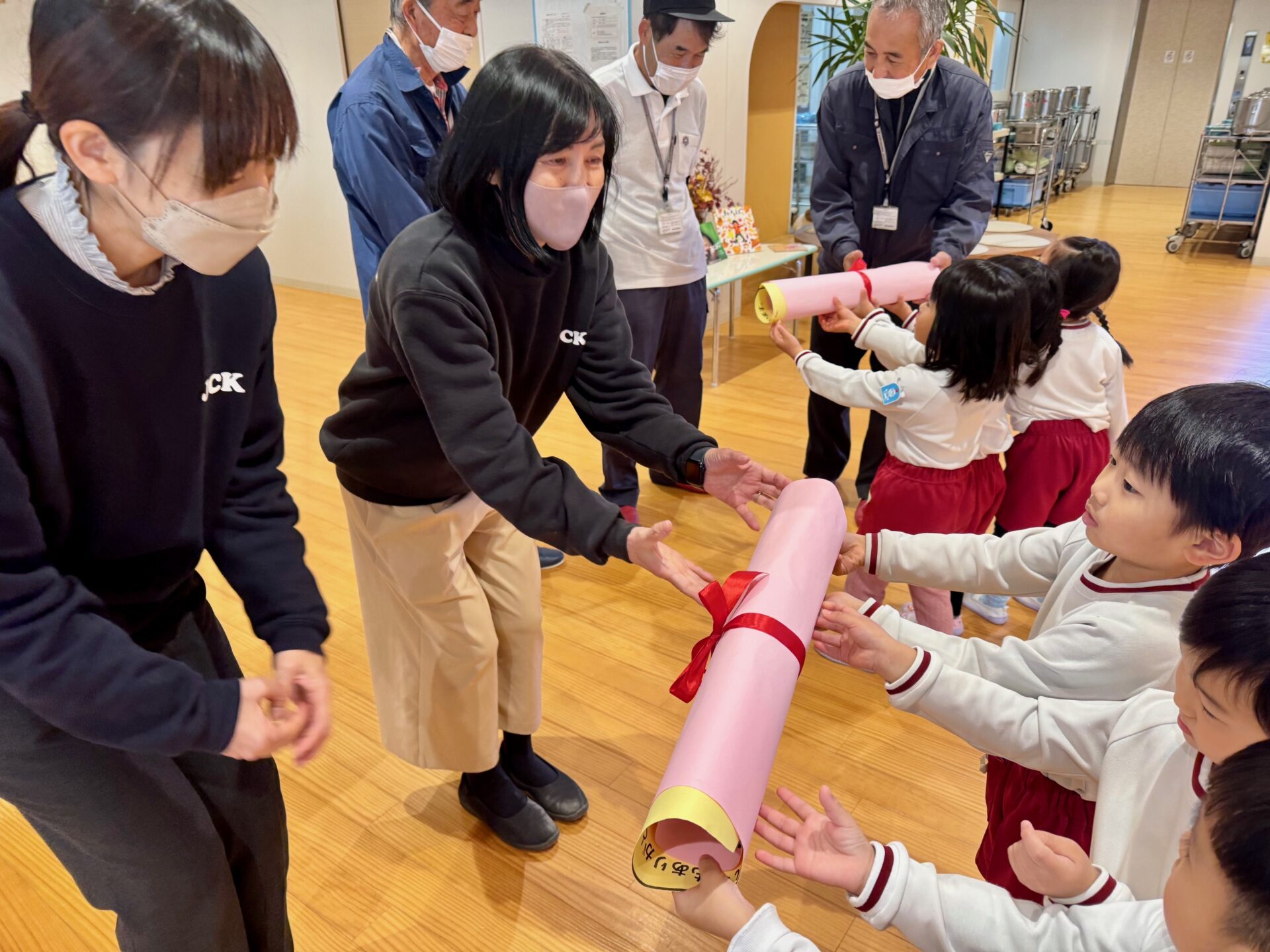 地域の方のところには、年長組の代表の園児がプレゼントを届けにいきました🎁。