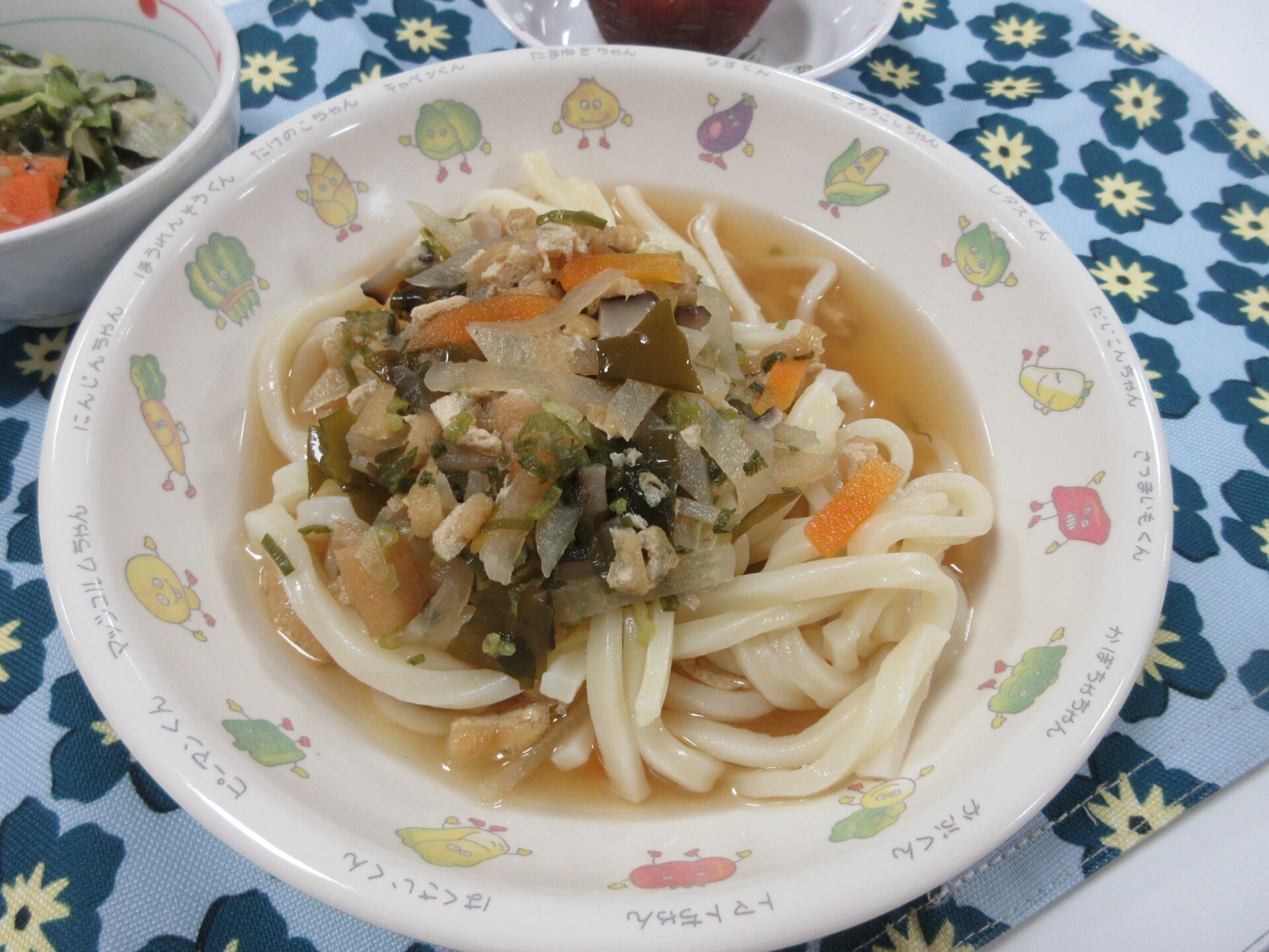 【🦊きつねうどん チョレギサラダ 🍠ふかしさつま芋 食べる煮干し】