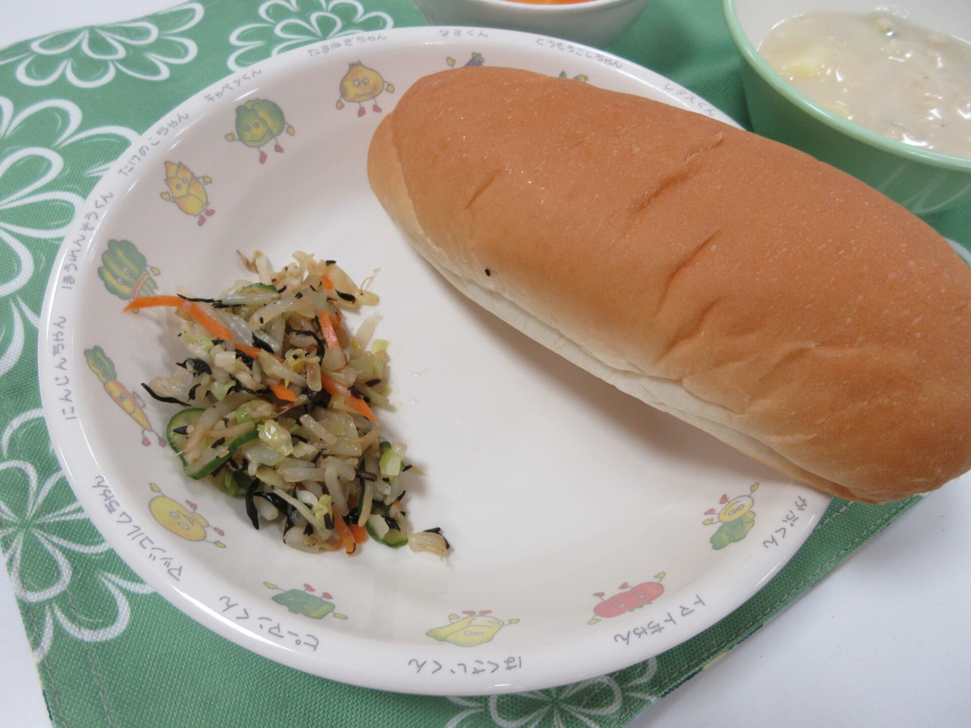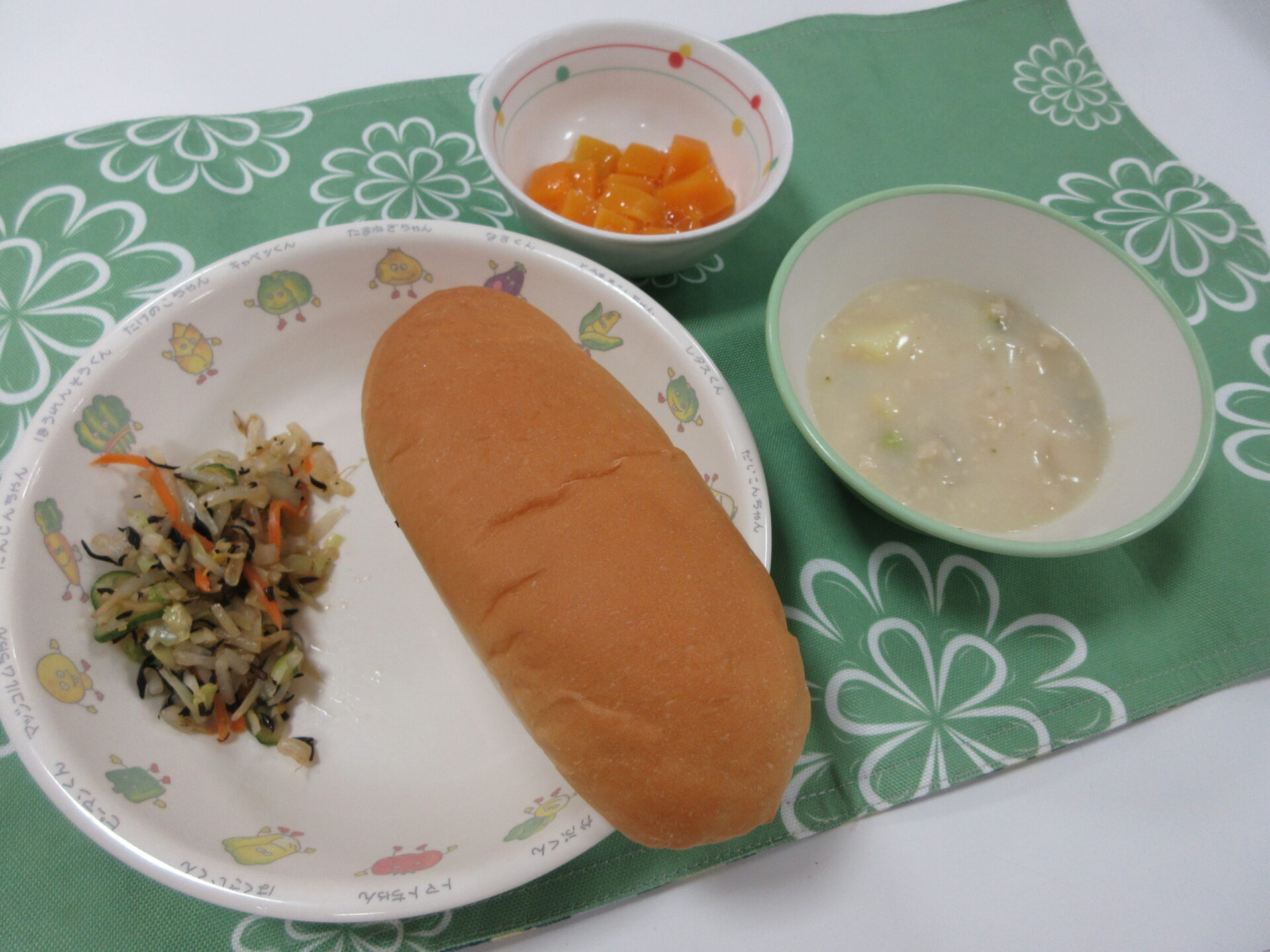 【コッペパン🥖 豆乳シチュー ひじきサラダ 果物(黄桃)🍑】