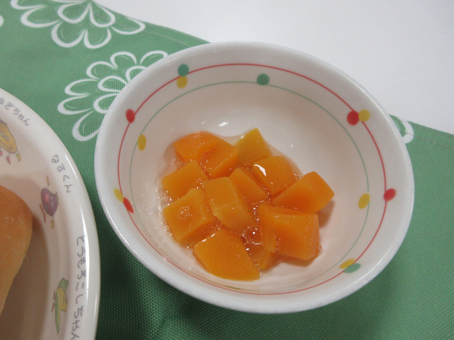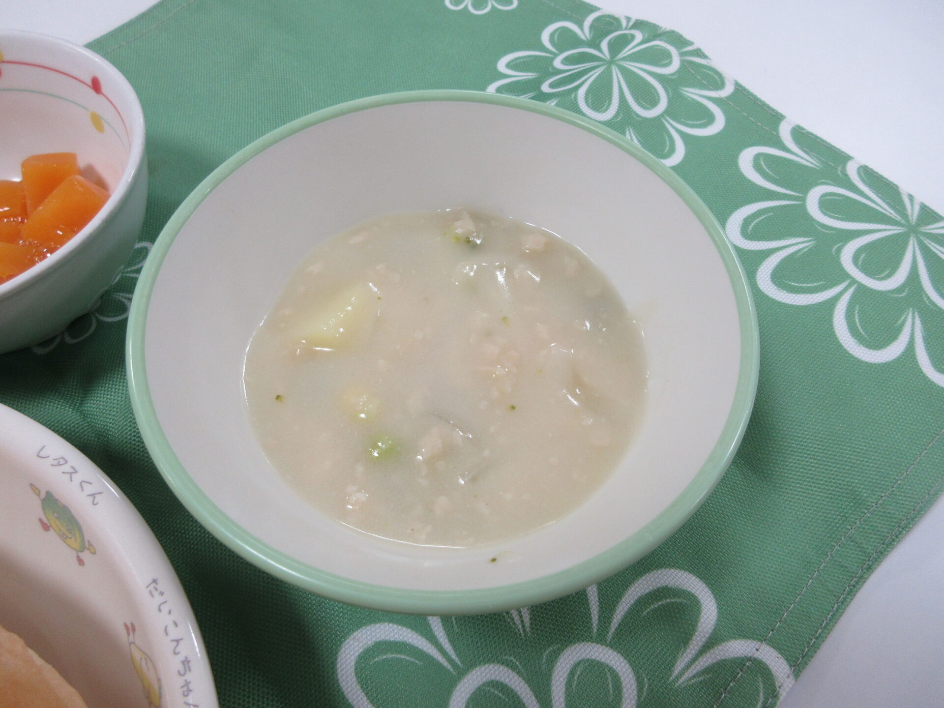 とろ~りなめらかで、やさしい豆乳の味のシチュー、ひじきサラダはシャキッとさっぱり!!黄桃はつるんとあまくてジューシー🍑でした😊。