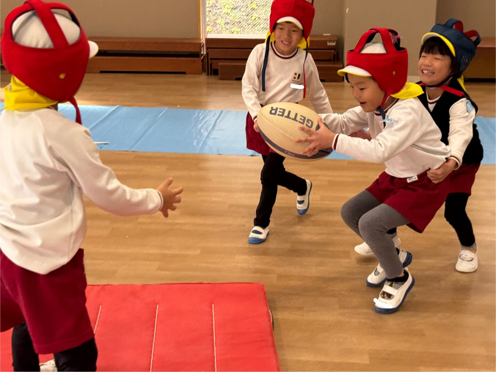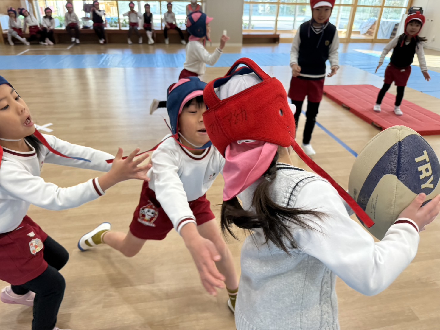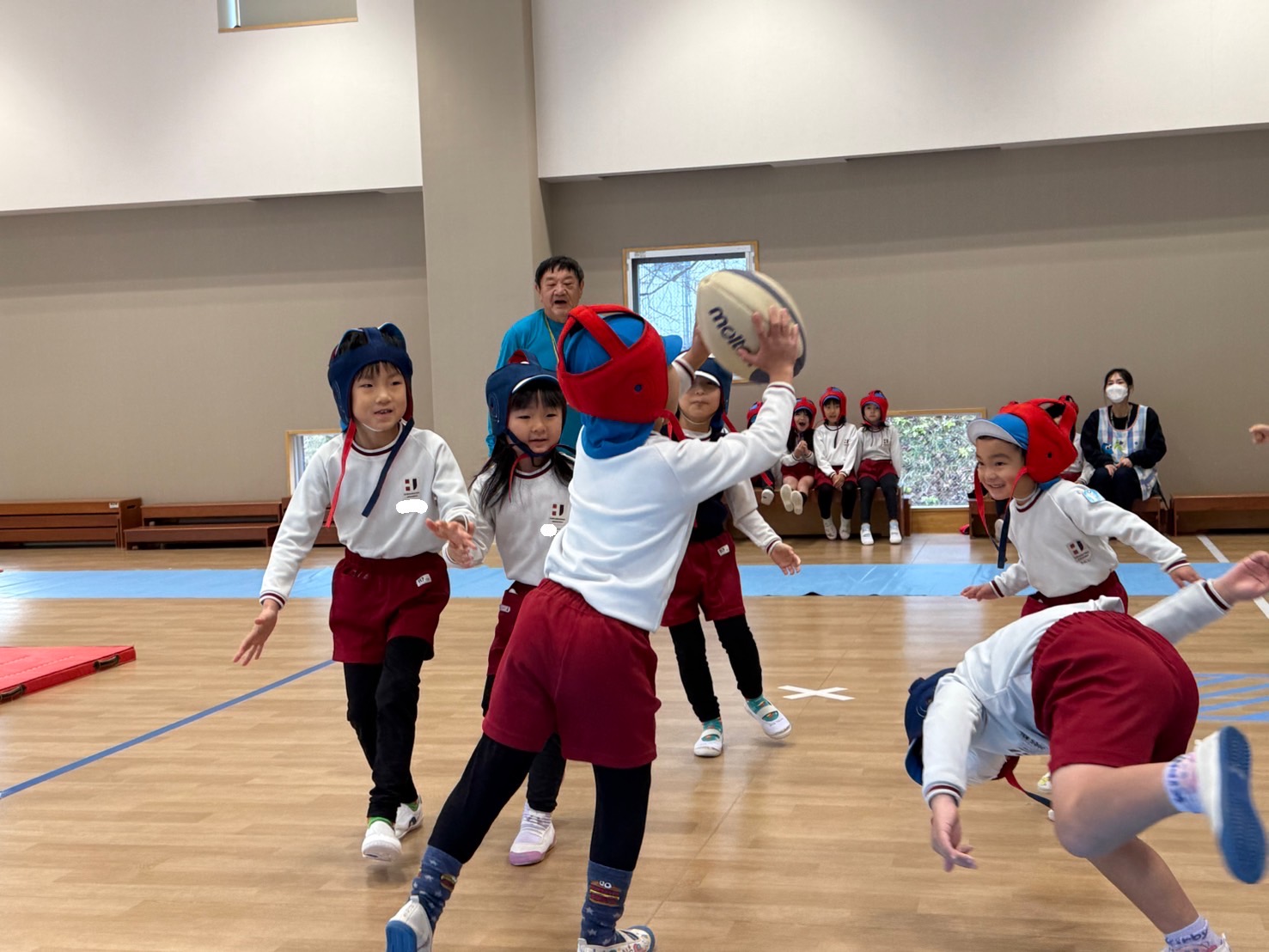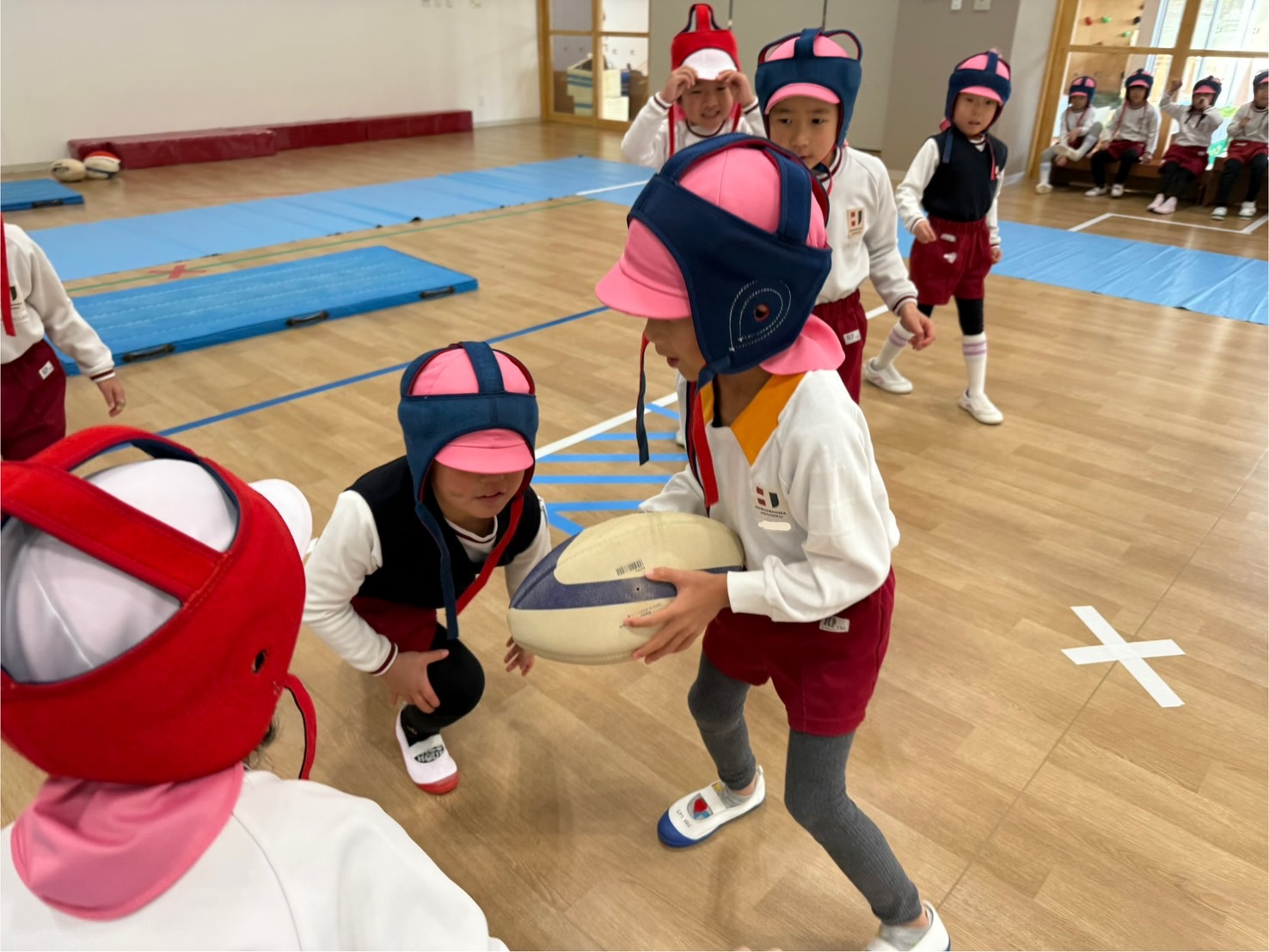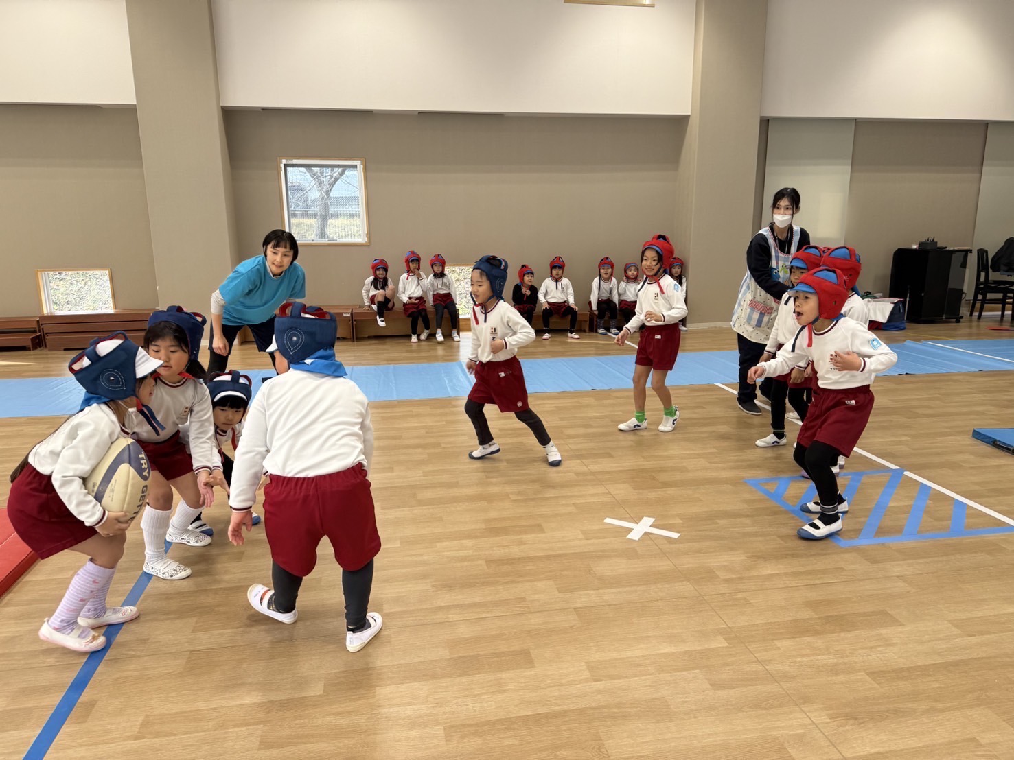 いつものラグビーの基礎練習のあと、クラスごとに試合を行いました。