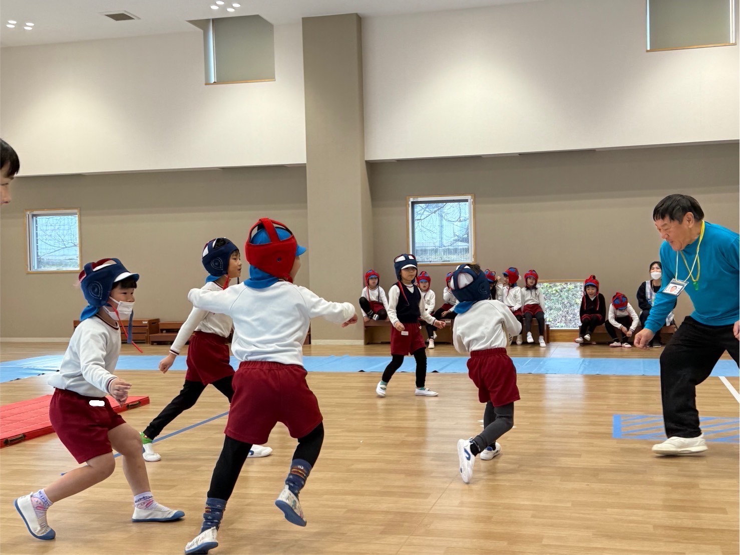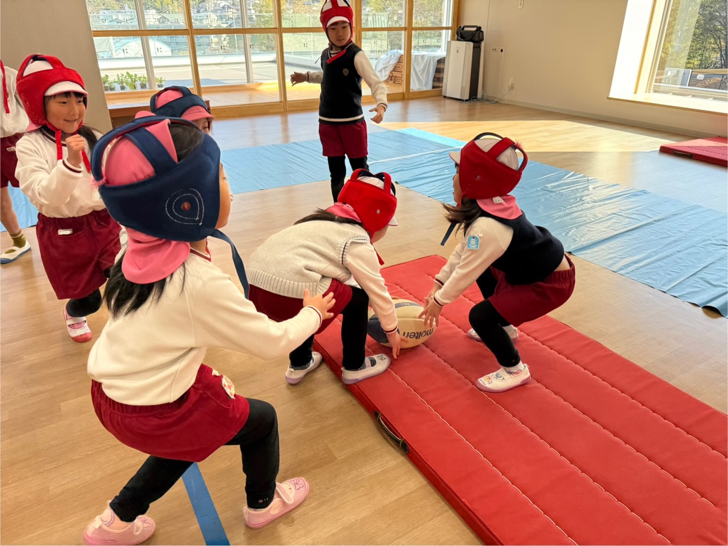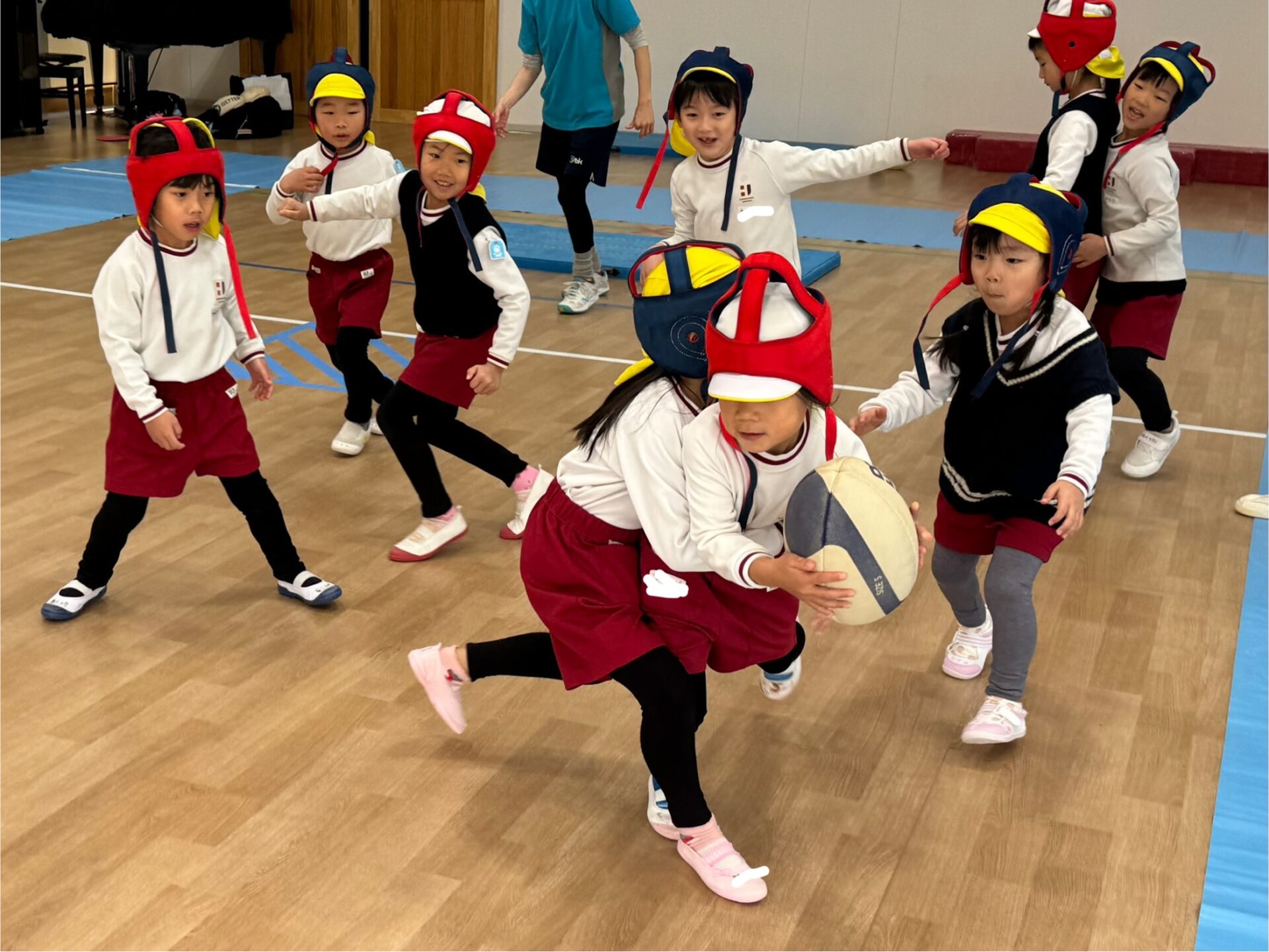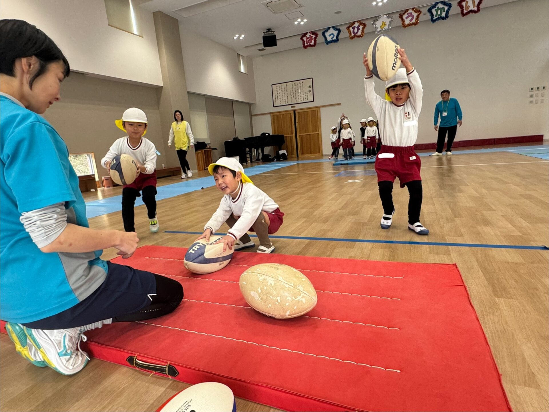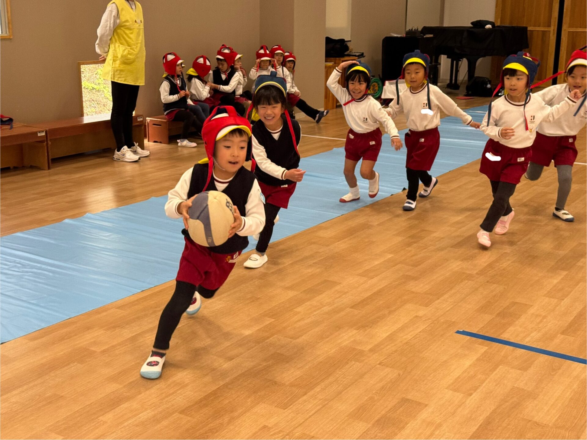 いつものラグビーの基礎練習のあと、クラスごとに試合を行いました。