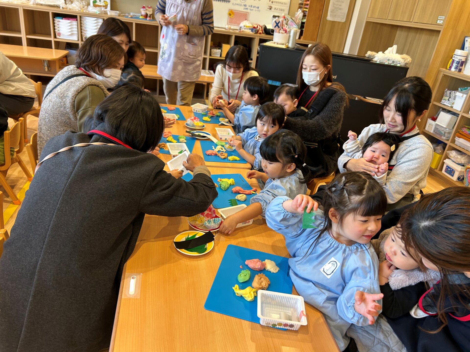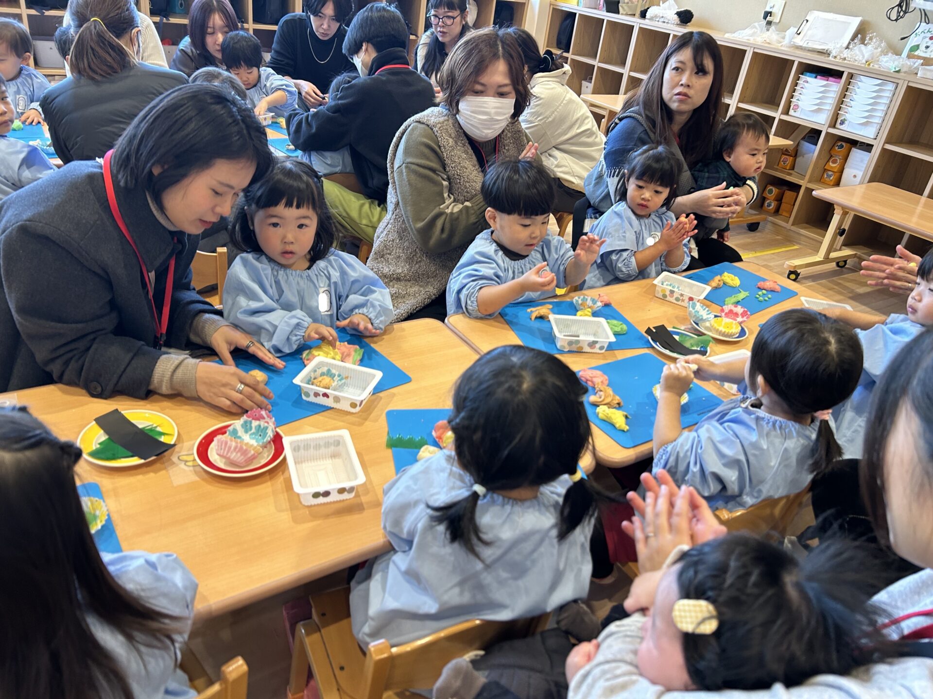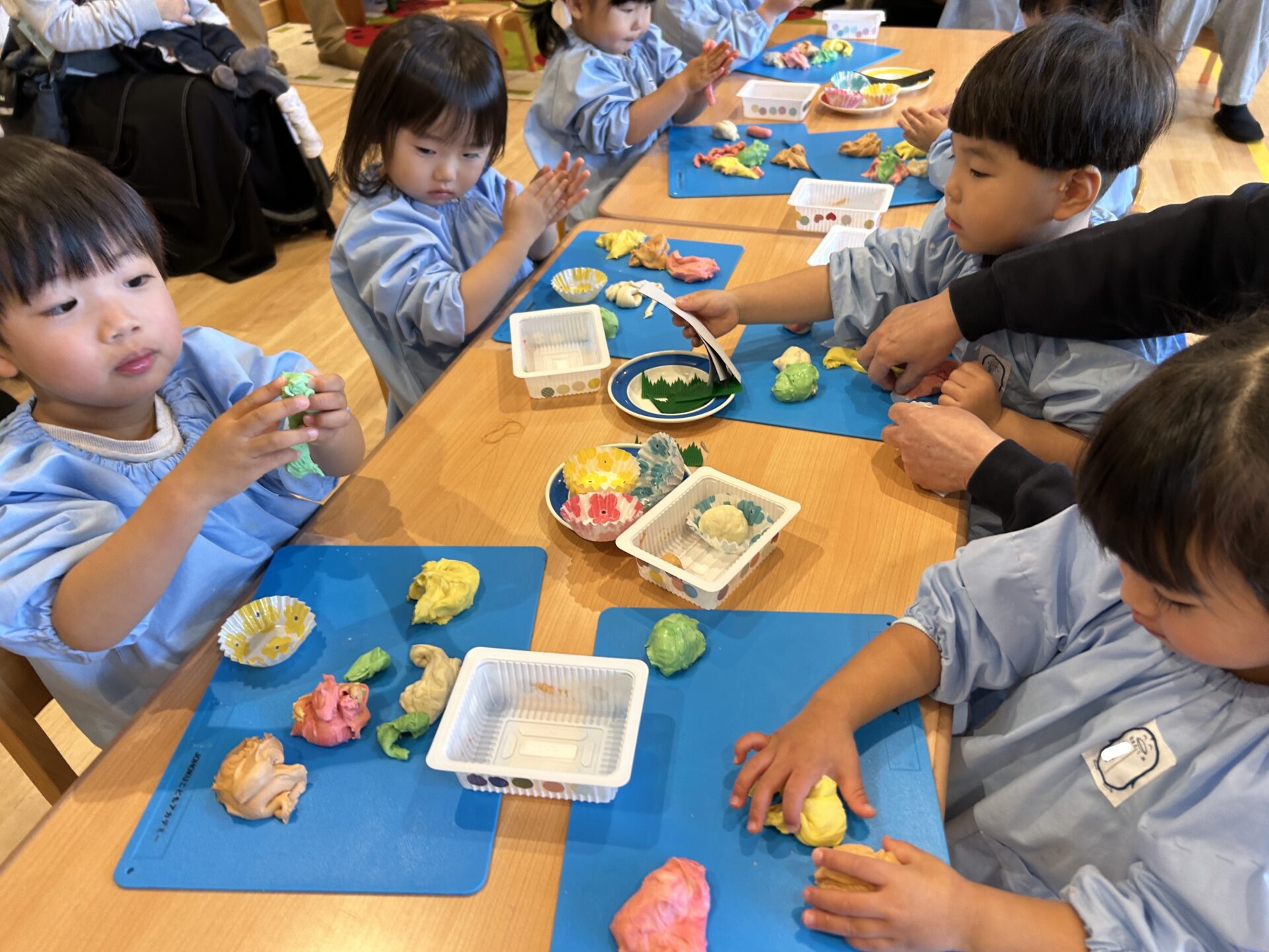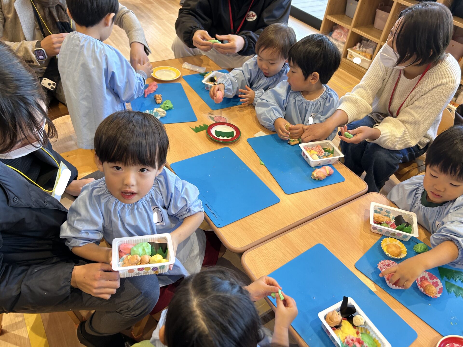 粘土をもらうと早速お弁当作りスタート🚩まずは自分の力で頑張ってみよう!丸めたりこねたりちぎったり...できるかな?