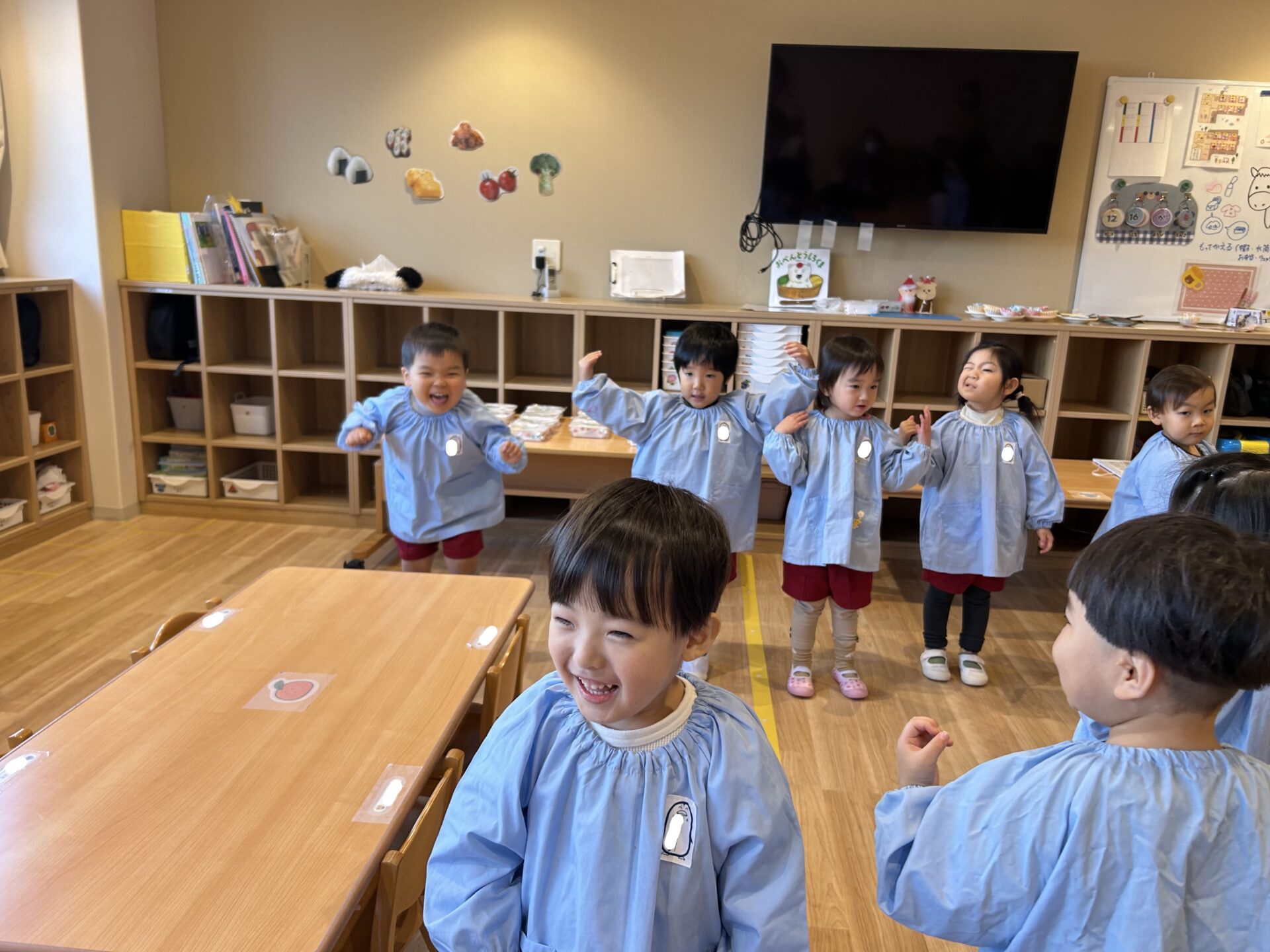 おうちの方を前にすると、緊張していたり少し涙が出たりする姿が見られましたが、まずは元気よく歌の披露をしました。